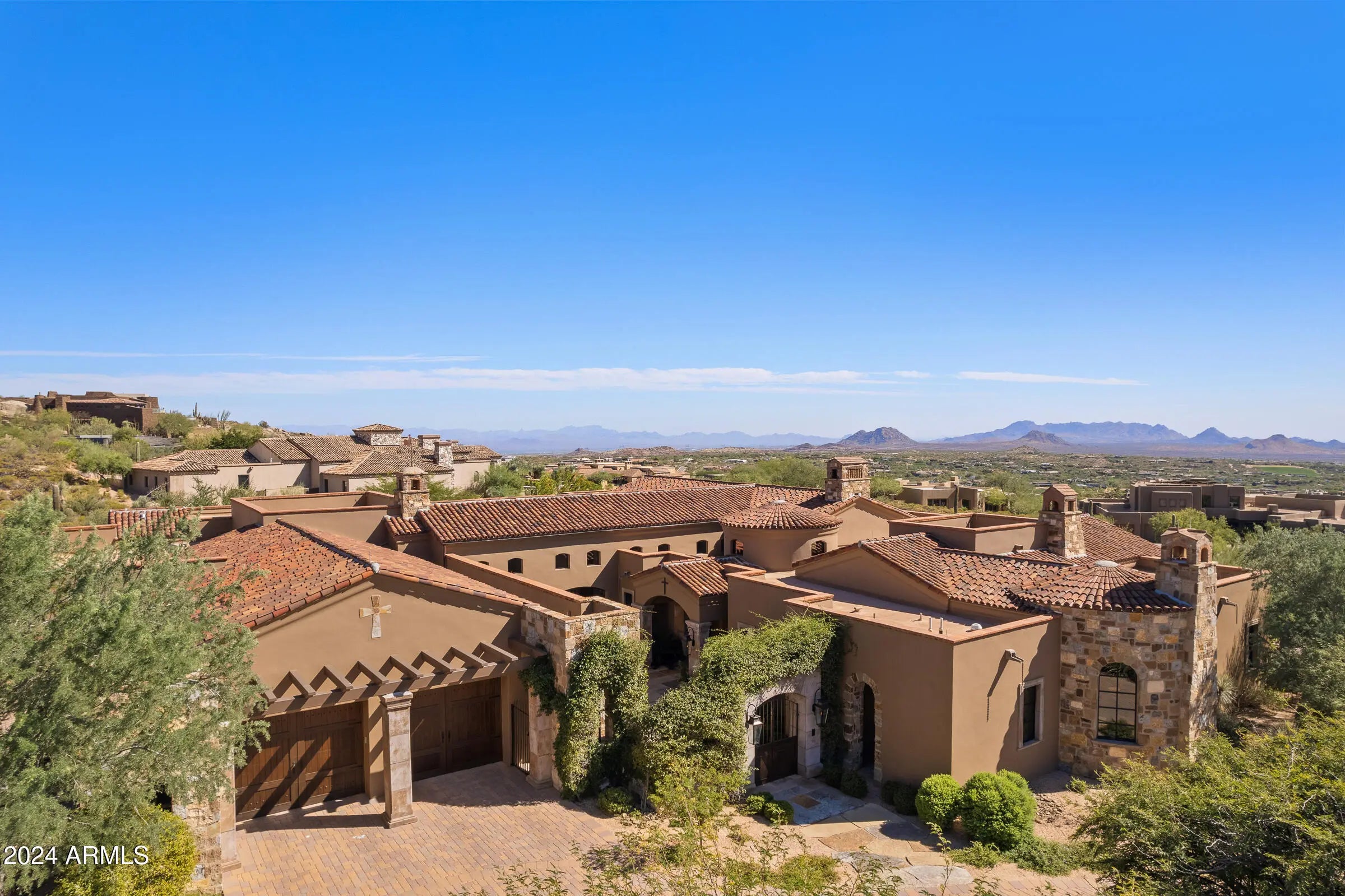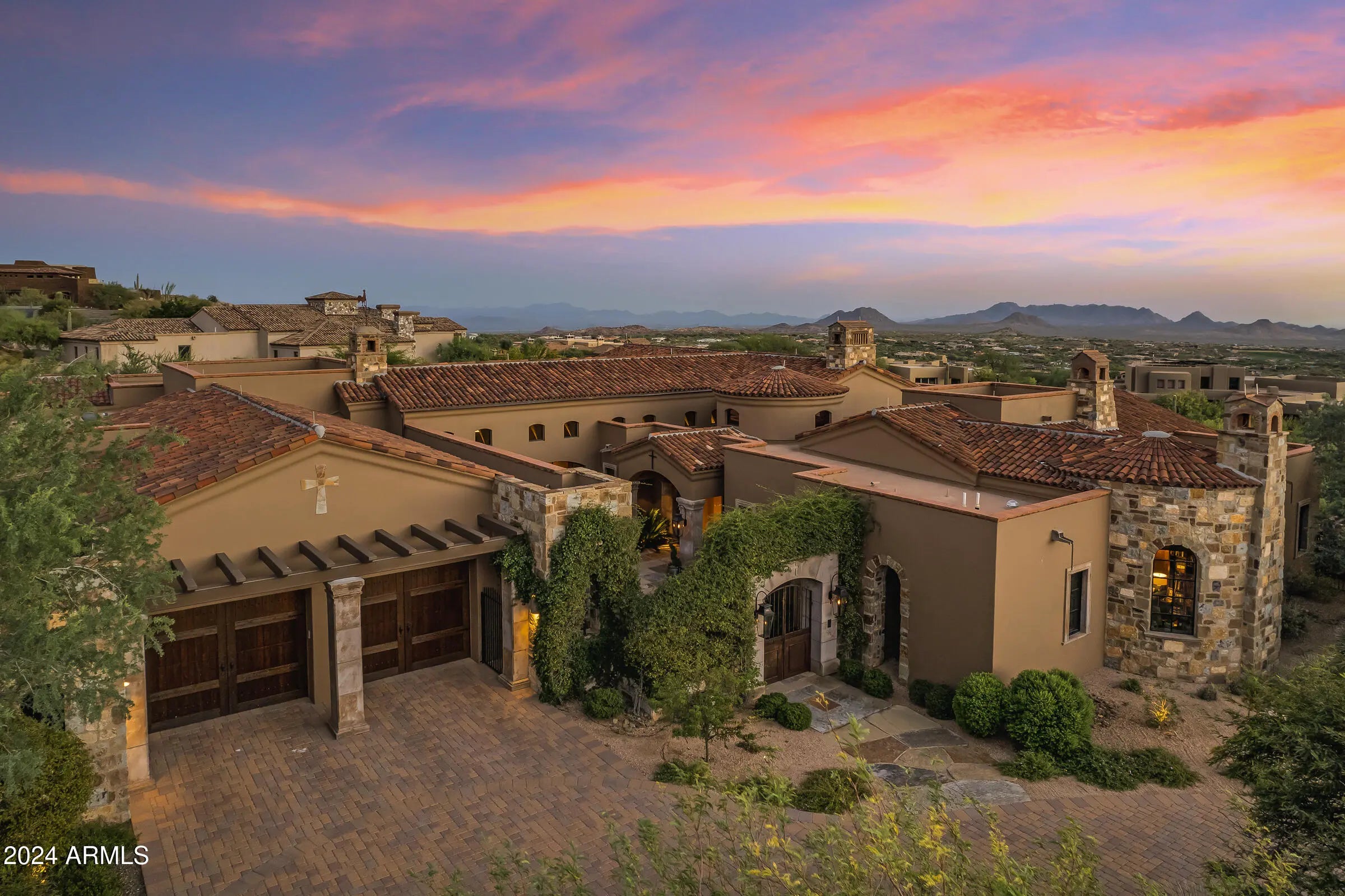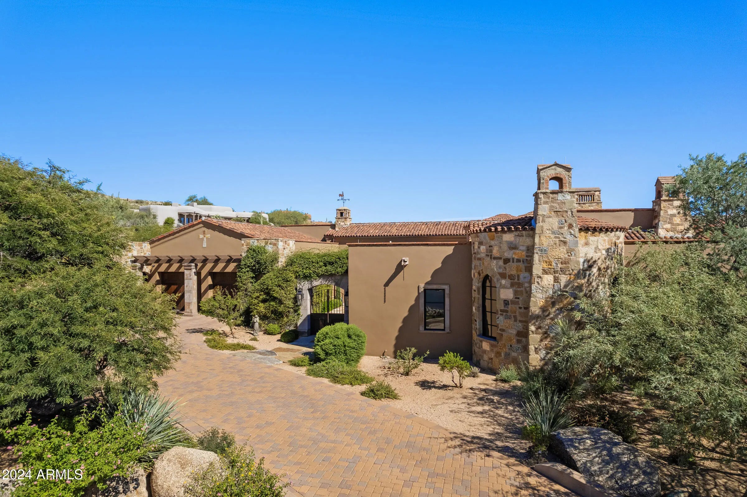 Desert Mountain GOLF MEMBERSHIP available from Seller with Club approval. Welcome to Bella Vita, a breathtaking estate nestled within the prestigious Desert Mountain community of North Scottsdale. Inspired by the timeless elegance of an ancient Italian manor house, this remarkable property offers an unparalleled blend of rustic Italian charm and modern-day luxury. Designed by renowned architect Ron Brissette, every corner of this residence tells a story of thoughtful craftsmanship, offering both comfort and sophistication for those seeking the best in desert living. Bella Vita is a sprawling estate that spans over 9,500 square feet, offering five generously sized ensuite bedrooms, each thoughtfully designed for privacy and comfort. As you enter through the grand front doors, you are greeted by the rich textures and finishes that evoke a sense of history, balanced perfectly with contemporary amenities. High ceilings, dramatic beams, and warm stone floors transport you to an era where elegance was the standard, yet every detail has been modernized to meet the demands of today's lifestyle. The formal living and dining rooms are nothing short of spectacular, offering the perfect space for entertaining or simply enjoying the beauty of the desert surroundings. Picture-perfect windows and French doors allow natural light to flood the interior, while offering views that frame the rugged mountains and desert beyond. Whether hosting intimate dinner parties or large-scale gatherings, these spaces offer both grandeur and intimacy, providing the perfect setting for making memories. For the culinary enthusiast, the Bella Vita kitchen is a dream come true. This professional-grade kitchen features Meile appliances throughout, including a six-burner gas range, dual ovens, and a Sub-Zero refrigerator. The expansive granite countertops, custom cabinetry, and oversized island are designed for both functionality and style. Whether you're preparing a casual meal for family or a gourmet feast for guests, this kitchen will exceed every expectation. Adjacent to the kitchen is a stunning, fully equipped outdoor living space. Here, the spirit of Italian hospitality truly comes to life with a professional gourmet BBQ, a classic wood fire pizza oven, and an expansive dining area that invites you to enjoy the beauty of Arizona's stunning sunsets. The outdoor living area is a true extension of the home, perfect for alfresco dining, casual entertaining, or simply unwinding as you take in the view. Beyond the luxurious interiors, Bella Vita offers a wealth of amenities designed to elevate your lifestyle. A true highlight is the negative-edge pool, which appears to spill into the desert landscape below, offering sweeping views of the surrounding mountains and the lush desert flora. The pool area is complemented by a thoughtfully designed splash pad for the younger members of the family, ensuring everyone can enjoy the outdoors in comfort and style. For those seeking more active pursuits, the bocce ball court provides an idyllic setting for friendly competition, while the Lookout Balcony Living Room offers a quiet retreat with panoramic vistas. Whether you're enjoying a morning coffee as the sun rises over the desert or savoring a glass of wine in the evening, this unique space invites you to slow down and take in the beauty of your surroundings. The home also features a grand library, perfect for those who enjoy reading, working, or simply escaping to a quiet sanctuary. Rich wood paneling, custom built-ins, and expansive windows make this room feel both regal and comfortablea place where one can unwind with a good book or conduct business in an inspiring environment. The home's design expertly integrates both luxury and practicality. The four-car garage offers ample space for vehicle storage and ensures that every element of your lifestyle is seamlessly accommodated. Whether you're an avid collector of fine automobiles or need extra storage for recreational gear, this garage meets all your needs with style. As with any home of this caliber, Bella Vita offers multiple fireplaces throughout the home, providing warmth and ambiance in every room, from the cozy library to the spacious formal living areas. These fireplaces, combined with the rich textures and materials used throughout the home, create an atmosphere that is both welcoming and timeless. Bella Vita is more than just a residence; it is a lifestyle. The estate offers a level of privacy and tranquility that is unparalleled, while also being within easy reach of the world-class amenities that Desert Mountain has to offer. Whether you're spending your days on the golf course, hiking the miles of trails, or enjoying the resort-style amenities, this home allows you to experience the best of Scottsdale living. Designed with meticulous attention to detail by Architect Ron Brissette, Bella Vita is an exquisite home that captures the heart of both old-world elegance and modern luxury. From the moment you step through the front doors, you are enveloped in a sense of placeone that is both grounded in history and yet completely of the present. Every inch of this home has been crafted to provide a sanctuary of peace, beauty, and comfort, while offering an exceptional setting for entertaining and enjoying life's most cherished moments. Come discover the extraordinary balance between rustic Italian character and contemporary comfort at Bella Vita. This home is not just a place to liveit's a place to experience the good life, to create memories, and to live the lifestyle you've always dreamed of.