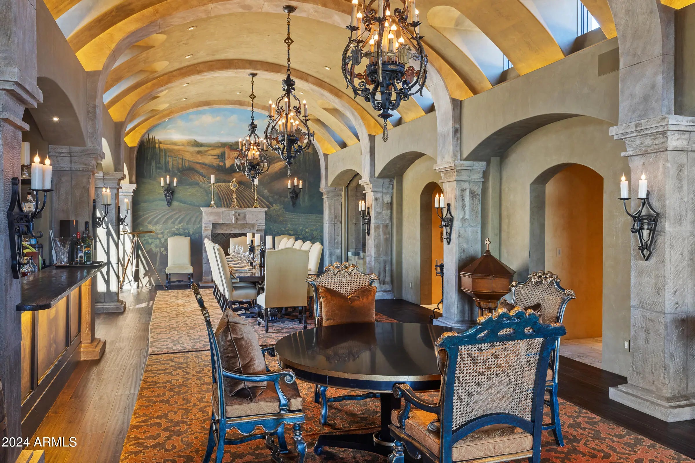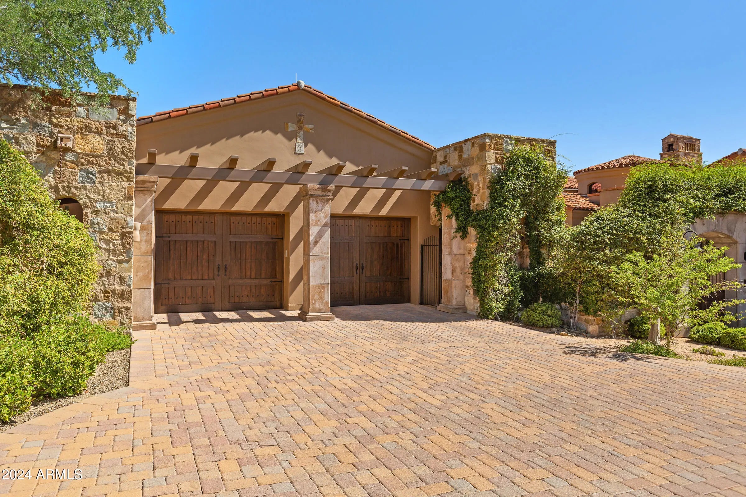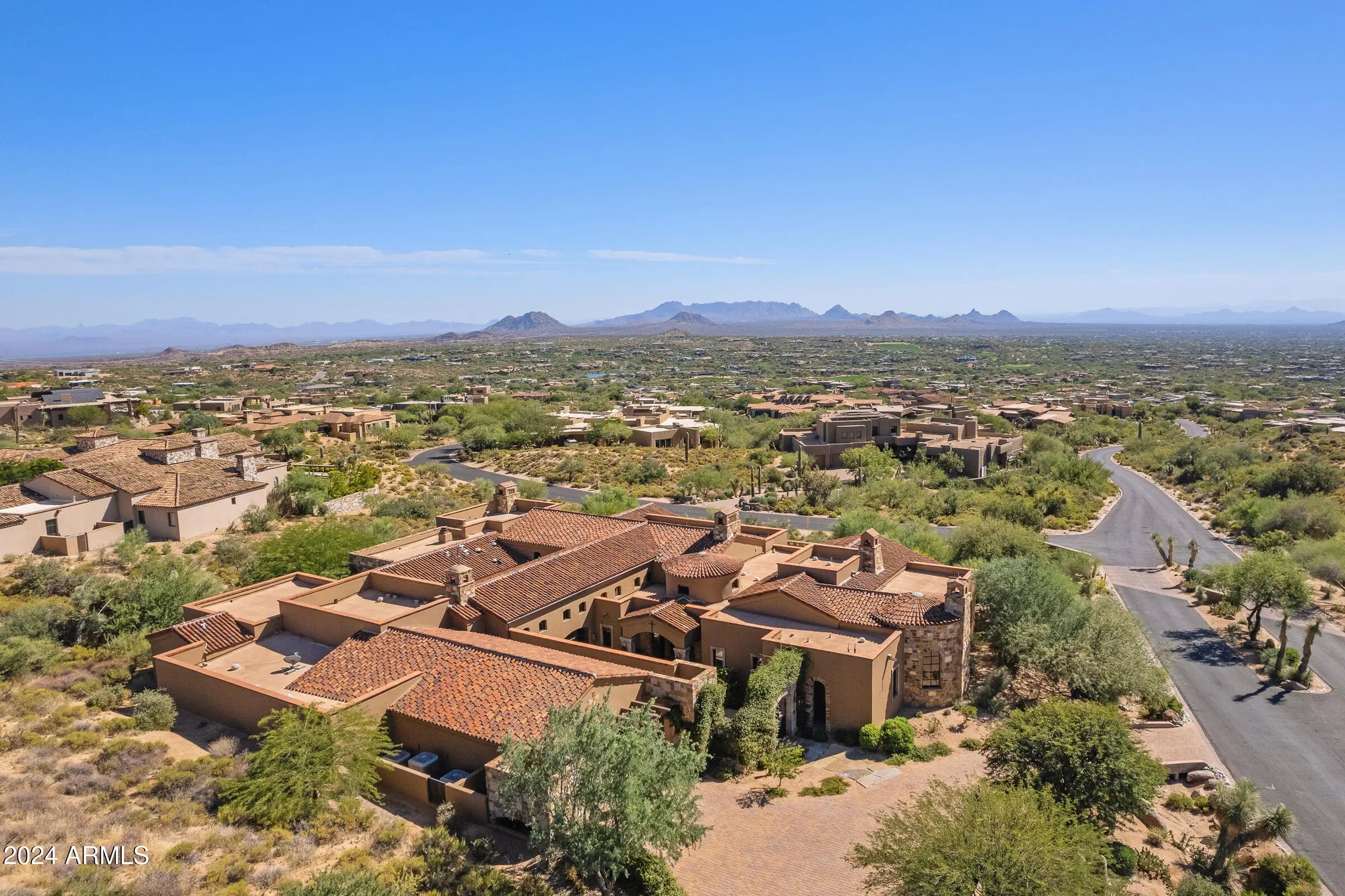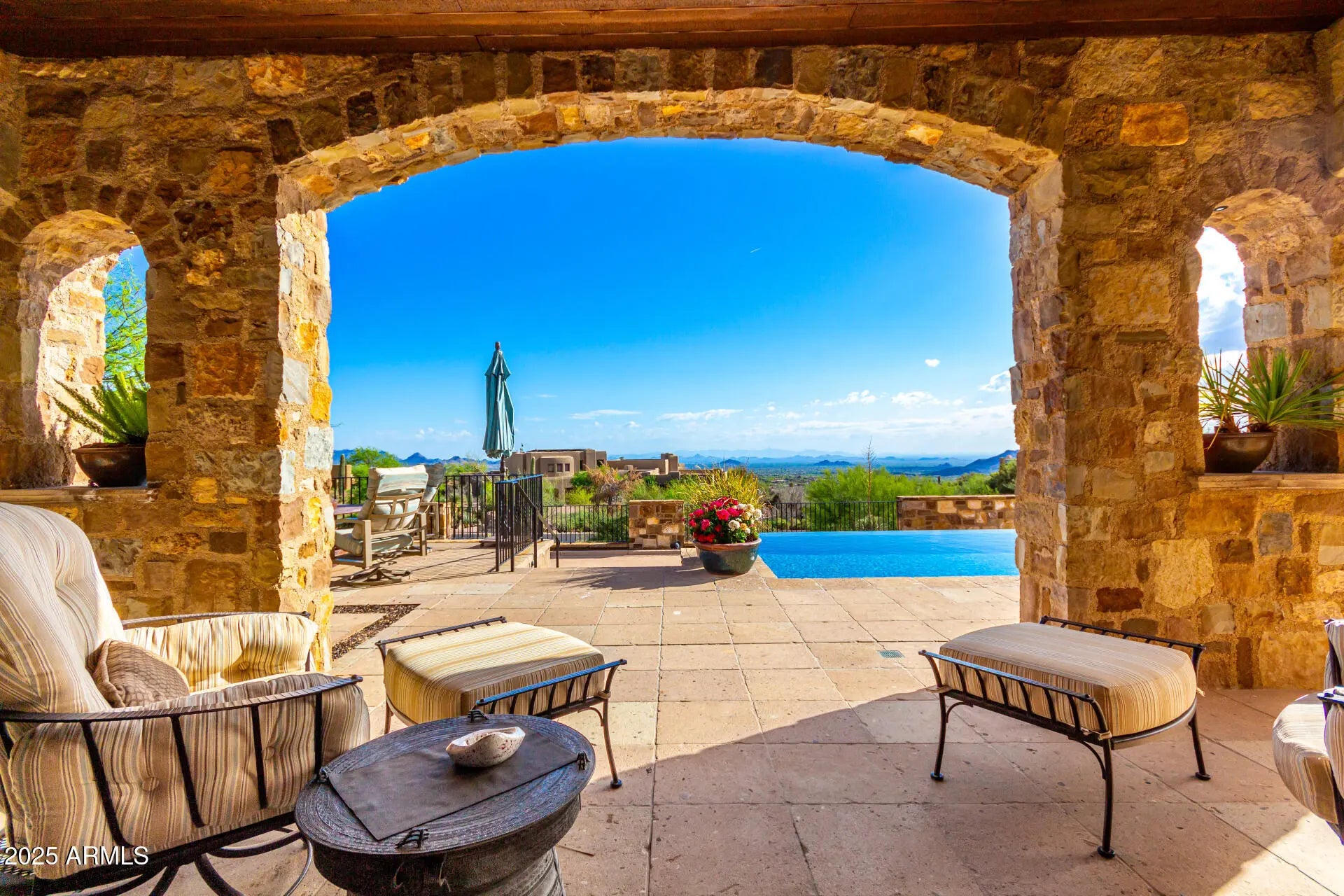Desert Mountain GOLF MEMBERSHIP available from Seller with Club approval. Welcome to Bella Vita, a breathtaking estate nestled within the prestigious Desert Mountain community of North Scottsdale. Inspired by the timeless elegance of an ancient Italian manor house, this remarkable property offers an unparalleled blend of rustic Italian charm and modern-day luxury. Designed by renowned architect Ron Brissette, every corner of this residence tells a story of thoughtful craftsmanship, offering both comfort and sophistication for those seeking the best in desert living. Bella Vita is a sprawling estate that spans over 9,500 square feet, offering five generously sized ensuite bedrooms, each thoughtfully designed for privacy and comfort. As you enter through the grand front doors, you are greeted by the rich textures and finishes that evoke a sense of history, balanced perfectly with contemporary amenities. High ceilings, dramatic beams, and warm stone floors transport you to an era where elegance was the standard, yet every detail has been modernized to meet the demands of today's lifestyle. The formal living and dining rooms are nothing short of spectacular, offering the perfect space for entertaining or simply enjoying the beauty of the desert surroundings. Picture-perfect windows and French doors allow natural light to flood the interior, while offering views that frame the rugged mountains and desert beyond. Whether hosting intimate dinner parties or large-scale gatherings, these spaces offer both grandeur and intimacy, providing the perfect setting for making memories. For the culinary enthusiast, the Bella Vita kitchen is a dream come true. This professional-grade kitchen features Meile appliances throughout, including a six-burner gas range, dual ovens, and a Sub-Zero refrigerator. The expansive granite countertops, custom cabinetry, and oversized island are designed for both functionality and style. Whether you're preparing a casual meal for family or a gourmet feast for guests, this kitchen will exceed every expectation. Adjacent to the kitchen is a stunning, fully equipped outdoor living space. Here, the spirit of Italian hospitality truly comes to life with a professional gourmet BBQ, a classic wood fire pizza oven, and an expansive dining area that invites you to enjoy the beauty of Arizona's stunning sunsets. The outdoor living area is a true extension of the home, perfect for alfresco dining, casual entertaining, or simply unwinding as you take in the view. Beyond the luxurious interiors, Bella Vita offers a wealth of amenities designed to elevate your lifestyle. A true highlight is the negative-edge pool, which appears to spill into the desert landscape below, offering sweeping views of the surrounding mountains and the lush desert flora. The pool area is complemented by a thoughtfully designed splash pad for the younger members of the family, ensuring everyone can enjoy the outdoors in comfort and style. For those seeking more active pursuits, the bocce ball court provides an idyllic setting for friendly competition, while the Lookout Balcony Living Room offers a quiet retreat with panoramic vistas. Whether you're enjoying a morning coffee as the sun rises over the desert or savoring a glass of wine in the evening, this unique space invites you to slow down and take in the beauty of your surroundings. The home also features a grand library, perfect for those who enjoy reading, working, or simply escaping to a quiet sanctuary. Rich wood paneling, custom built-ins, and expansive windows make this room feel both regal and comfortablea place where one can unwind with a good book or conduct business in an inspiring environment. The home's design expertly integrates both luxury and practicality. The four-car garage offers ample space for vehicle storage and ensures that every element of your lifestyle is seamlessly accommodated. Whether you're an avid collector of fine automobiles or need extra storage for recreational gear, this garage meets all your needs with style. As with any home of this caliber, Bella Vita offers multiple fireplaces throughout the home, providing warmth and ambiance in every room, from the cozy library to the spacious formal living areas. These fireplaces, combined with the rich textures and materials used throughout the home, create an atmosphere that is both welcoming and timeless. Bella Vita is more than just a residence; it is a lifestyle. The estate offers a level of privacy and tranquility that is unparalleled, while also being within easy reach of the world-class amenities that Desert Mountain has to offer. Whether you're spending your days on the golf course, hiking the miles of trails, or enjoying the resort-style amenities, this home allows you to experience the best of Scottsdale living. Designed with meticulous attention to detail by Architect Ron Brissette, Bella Vita is an exquisite home that captures the heart of both old-world elegance and modern luxury. From the moment you step through the front doors, you are enveloped in a sense of placeone that is both grounded in history and yet completely of the present. Every inch of this home has been crafted to provide a sanctuary of peace, beauty, and comfort, while offering an exceptional setting for entertaining and enjoying life's most cherished moments. Come discover the extraordinary balance between rustic Italian character and contemporary comfort at Bella Vita. This home is not just a place to liveit's a place to experience the good life, to create memories, and to live the lifestyle you've always dreamed of.