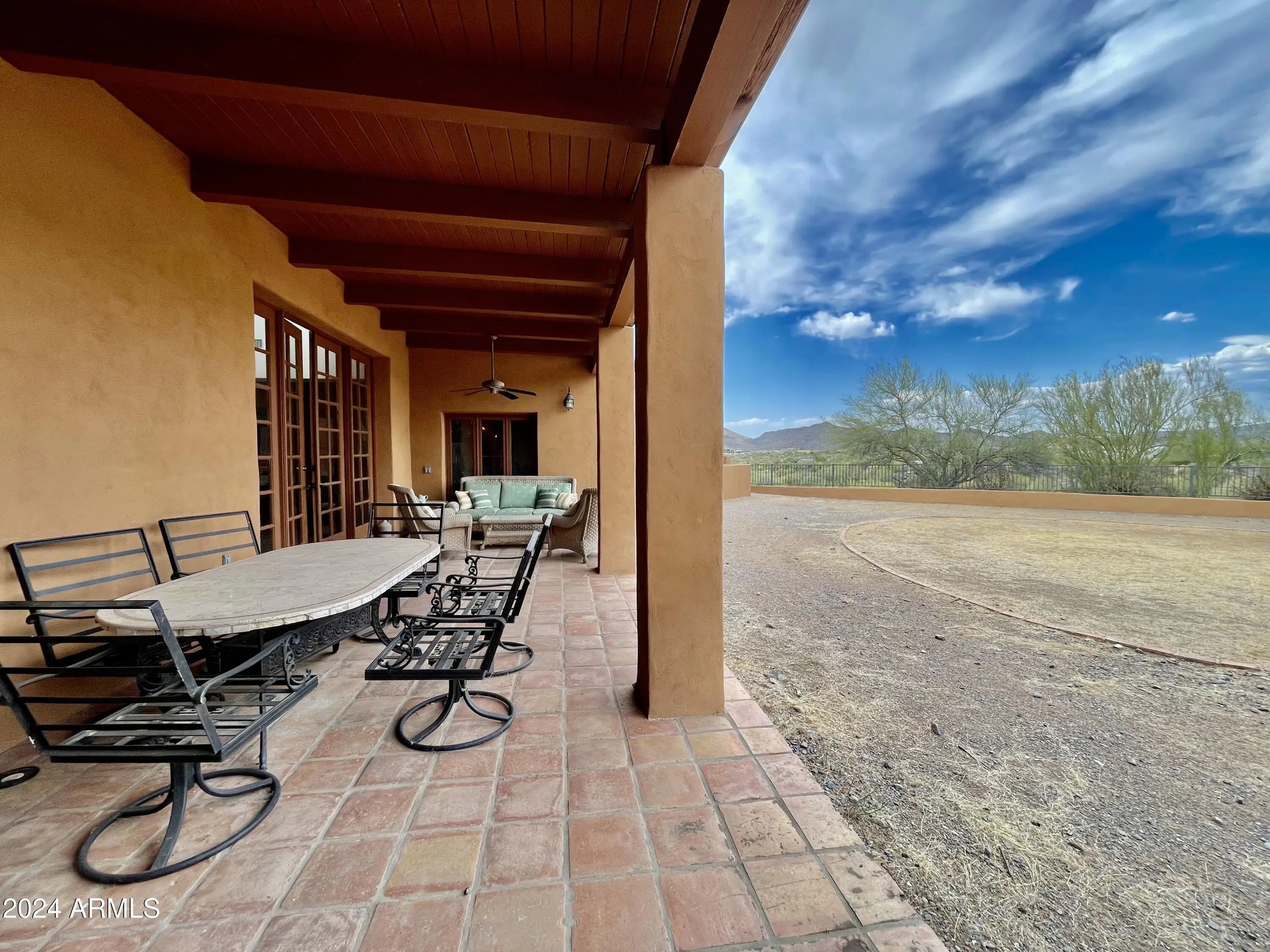 Stunning Custom Built Home with Panoramic Views, within a few miles from the town of Cave Creek. Gourmet Kitchen with a Fireplace that opens up to Dining room and sunken Family room with a custom fireplace. This home was built with views in mind, each area of the house you will see amazing mountain views, enjoy your evenings sitting on the balcony with endless mountain views. 3 Bedrooms with a jack and Jill bathroom. Home sits on over 2 Acres and is in a very private area. Outdoor space has a huge patio with a custom sitting area around the fireplace. You will love everything this home has to offer, one of kind custom home with Panoramic views. Arizona sunsets at its finest.