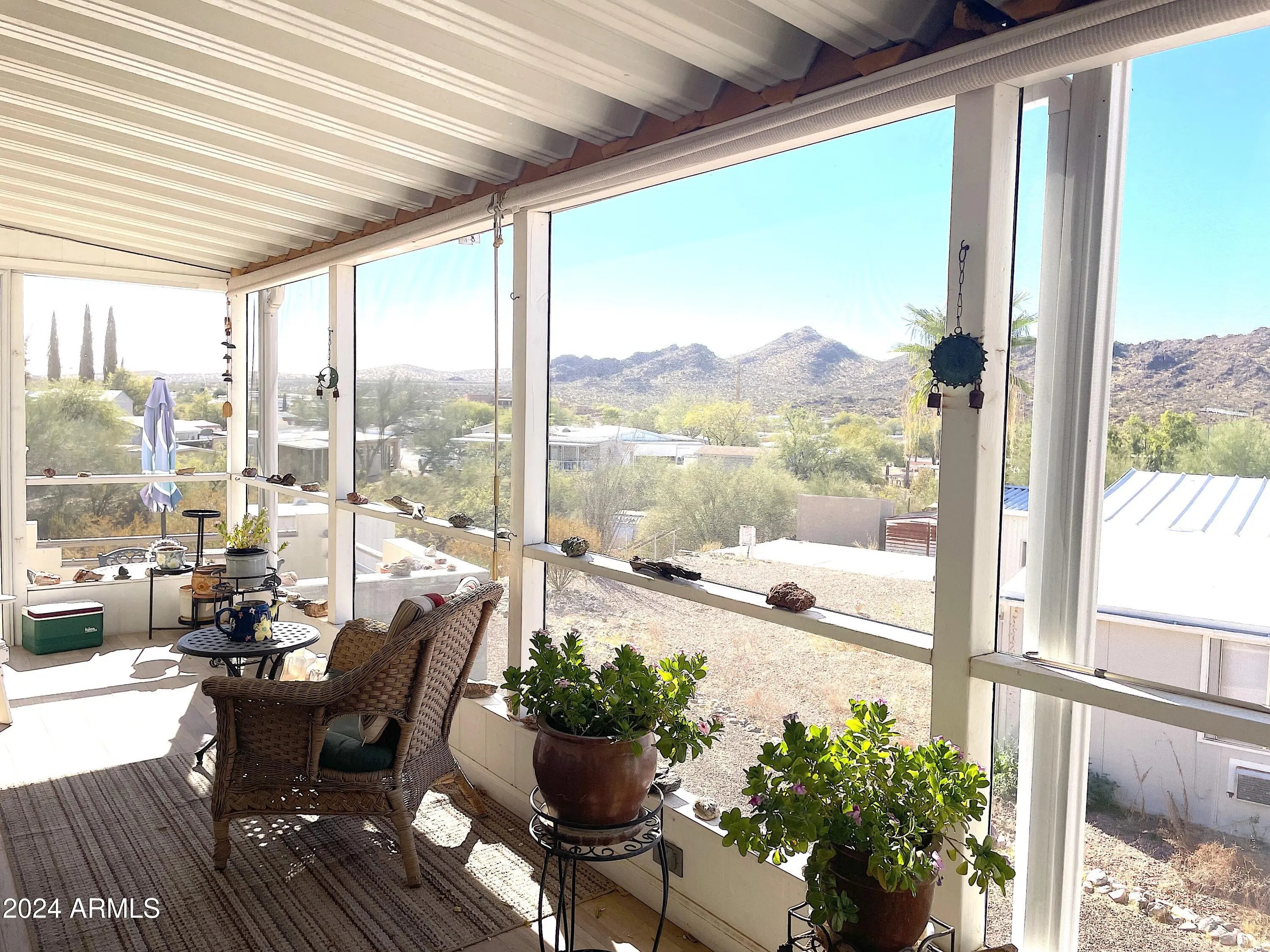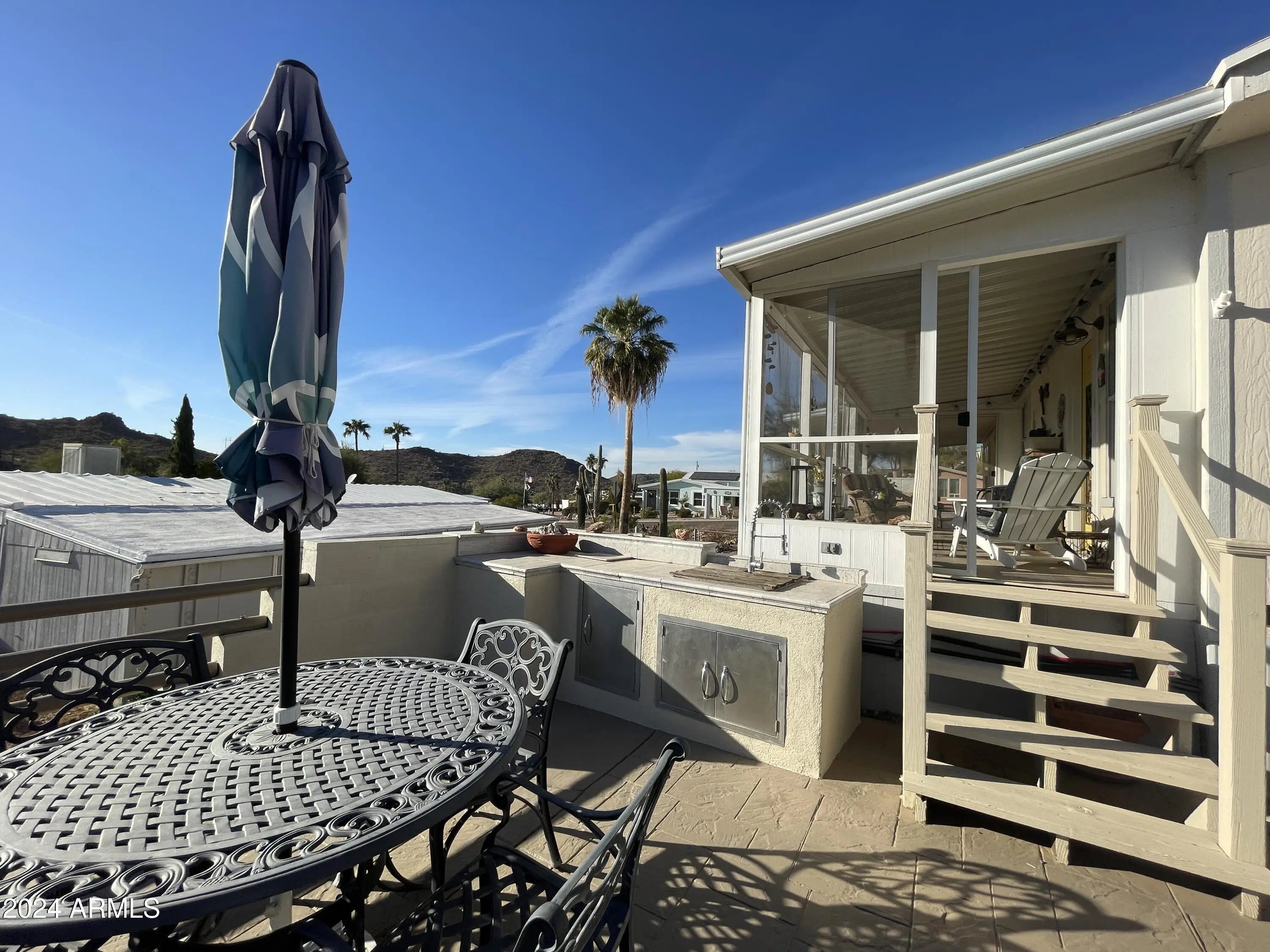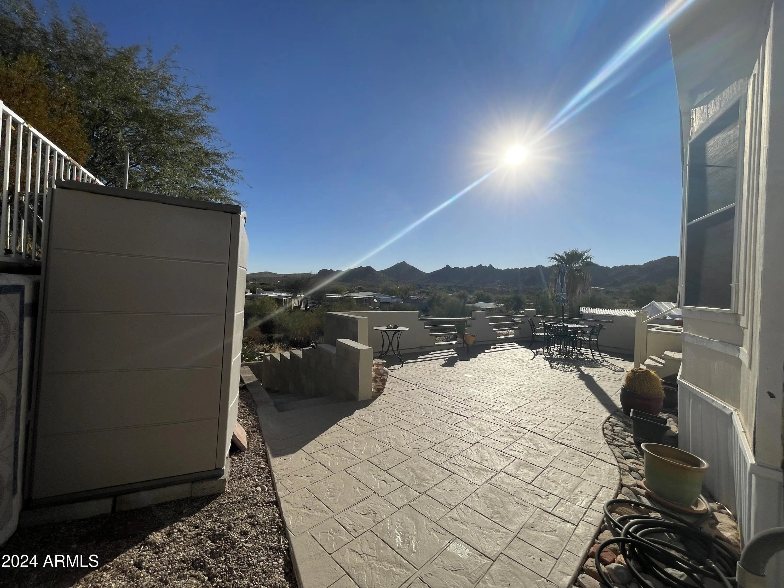 Ready to enjoy out door entertaining with amazing views? This 2 bedroom one bath home is just as roomy inside with several up grades from granite countertops, updated bathroom, new heat, and laminate flooring. The outdoor patio has a sink and bbq offering a perfect space to enjoy the sunset sky. There are more bonuses with this home. There is the screened in tile floor porch with pull down sun shades to enjoy the views all year round. Another bonus is the lower level parking and storage shed, there is room to build here. Bring your camper, ATV's and other vehicles and have plenty of room to park. Queen Valley has no HOA, it is close to State Forest land, the Tonto National Forest, offers a public play golf course, and minutes from grocery shopping and other services.