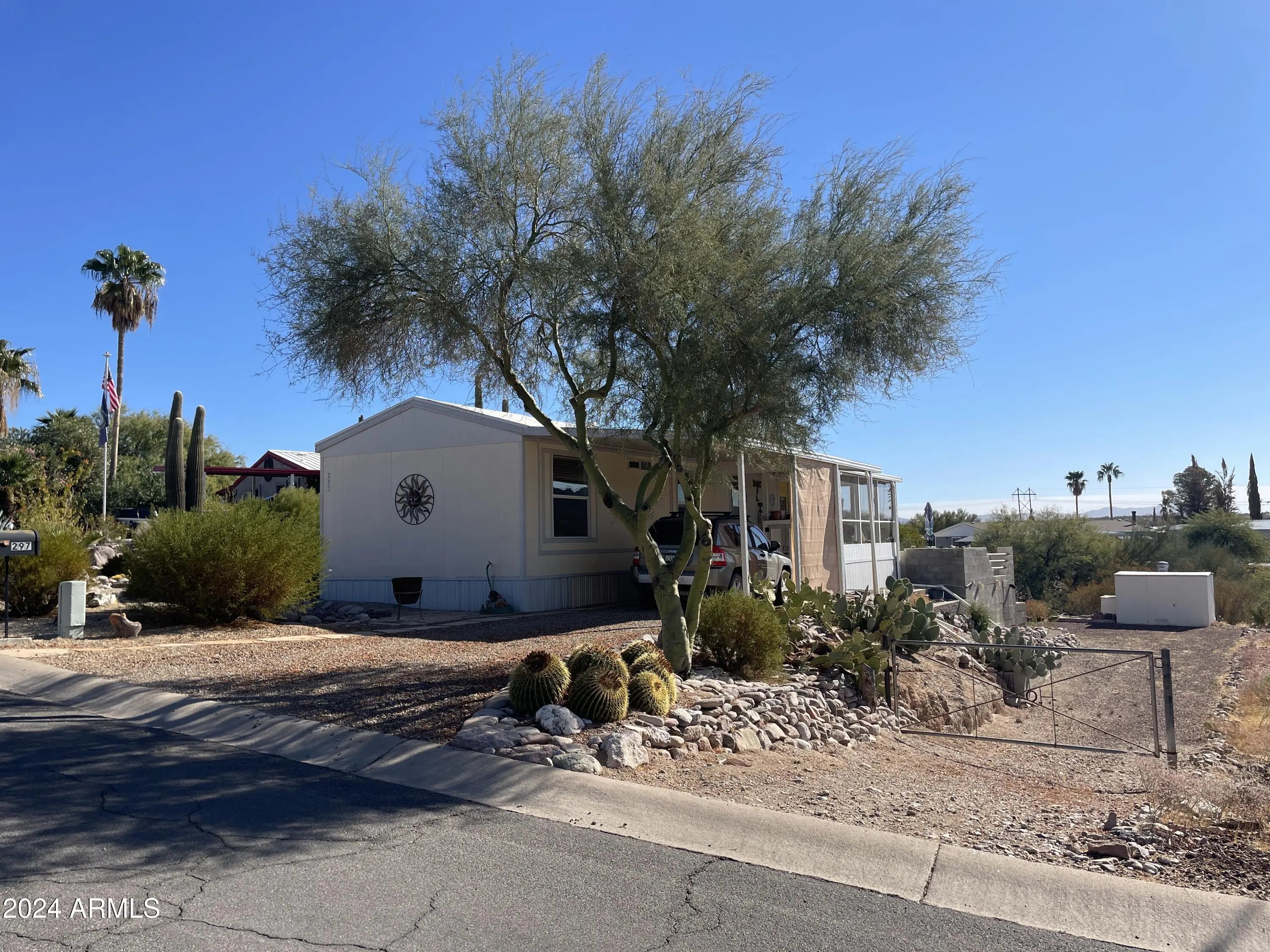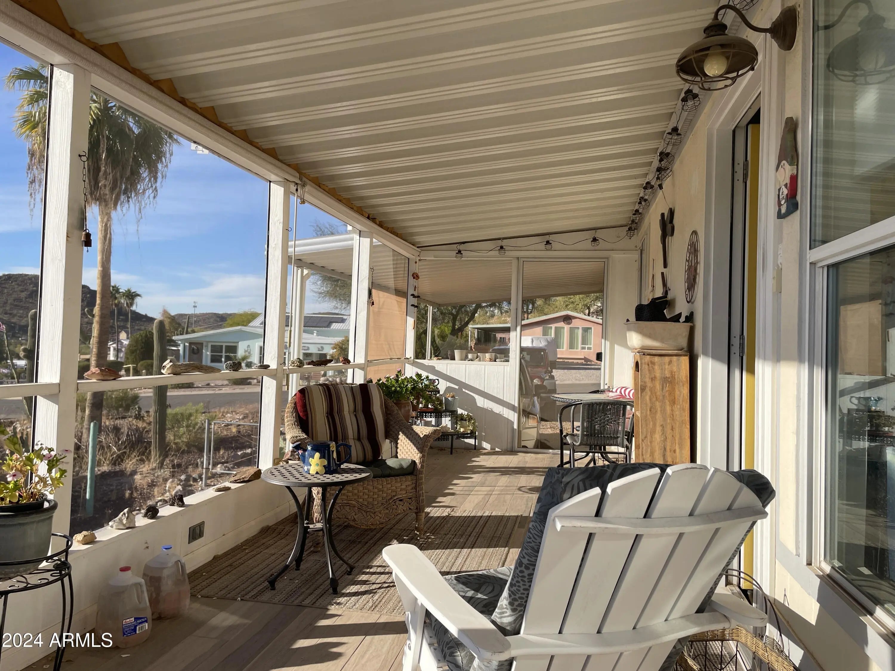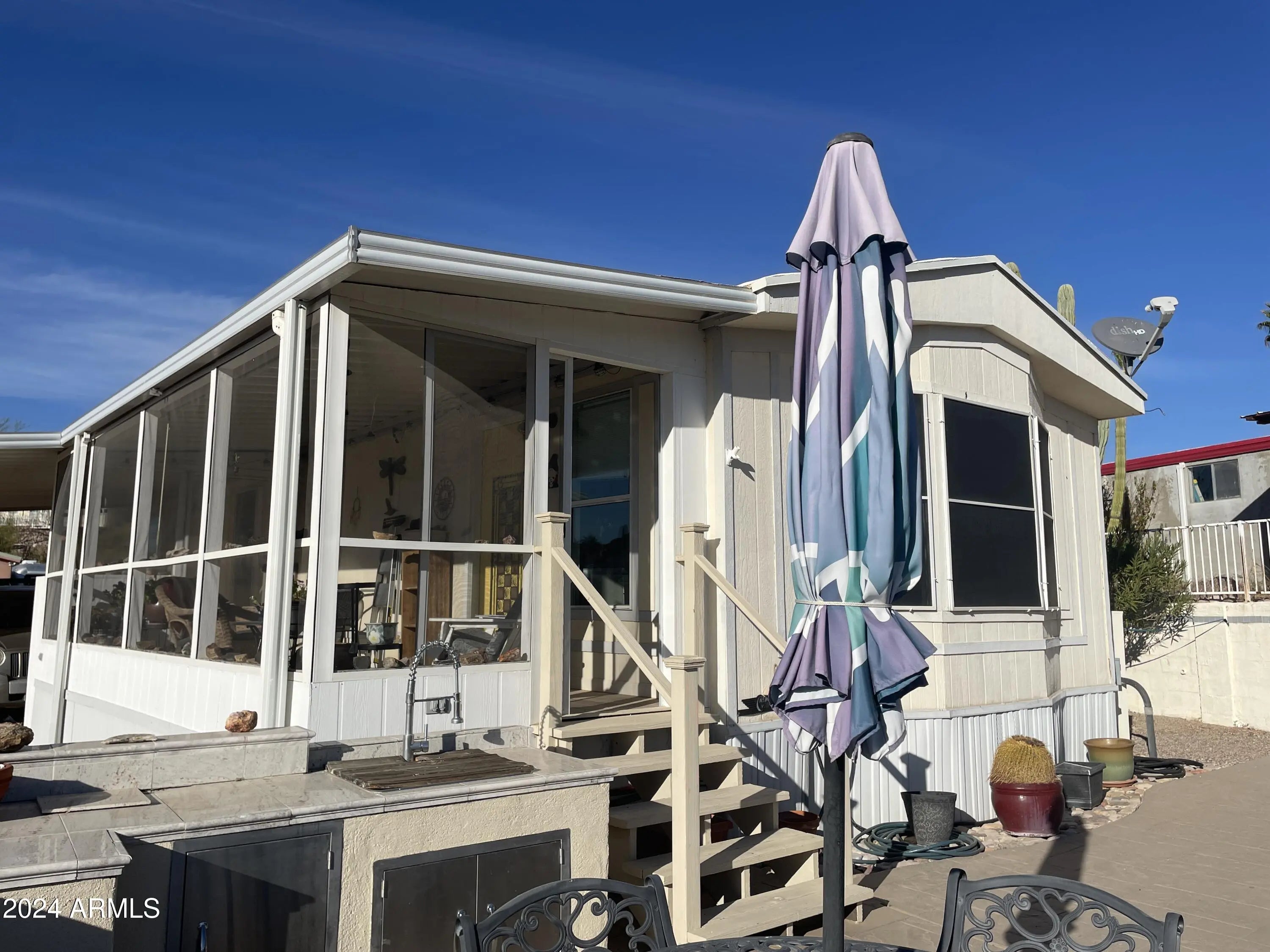 Ready to enjoy out door entertaining with amazing views? This 2 bedroom one bath home is just as roomy inside with several up grades from granite countertops, updated bathroom, new heat, and laminate flooring. The outdoor patio has a sink and bbq offering a perfect space to enjoy the sunset sky. There are more bonuses with this home. There is the screened in tile floor porch with pull down sun shades to enjoy the views all year round. Another bonus is the lower level parking and storage shed, there is room to build here. Bring your camper, ATV's and other vehicles and have plenty of room to park. Queen Valley has no HOA, it is close to State Forest land, the Tonto National Forest, offers a public play golf course, and minutes from grocery shopping and other services.