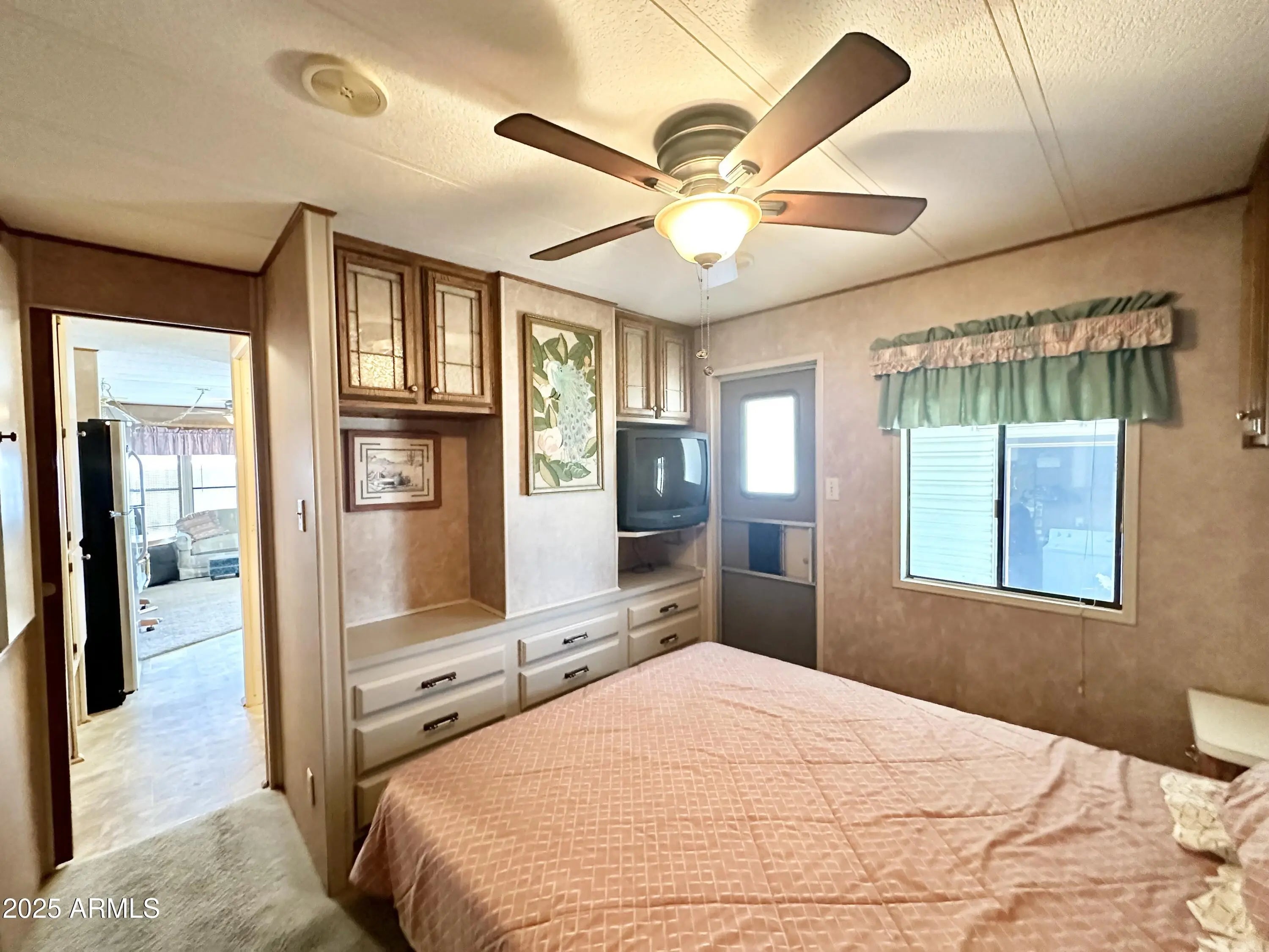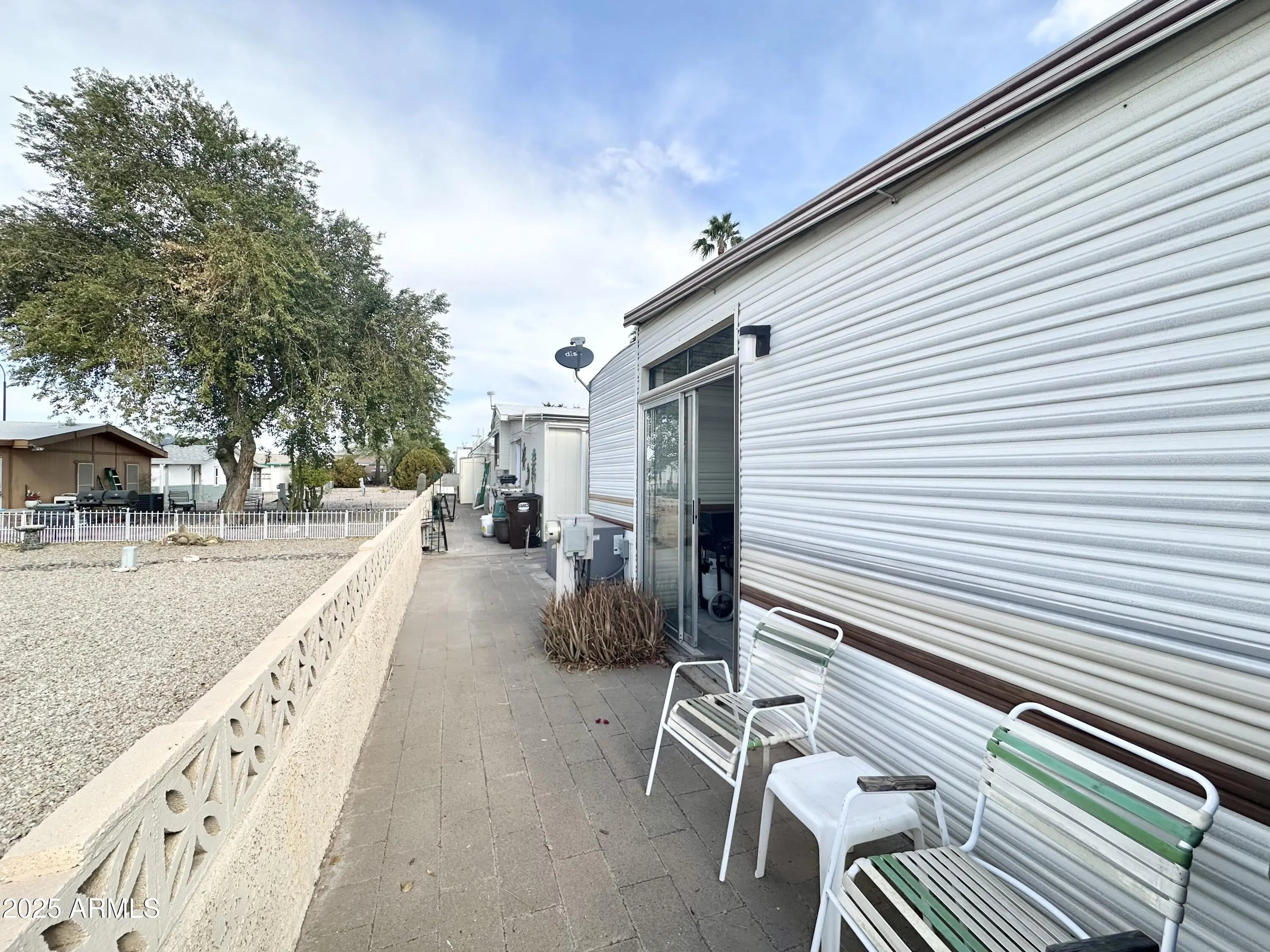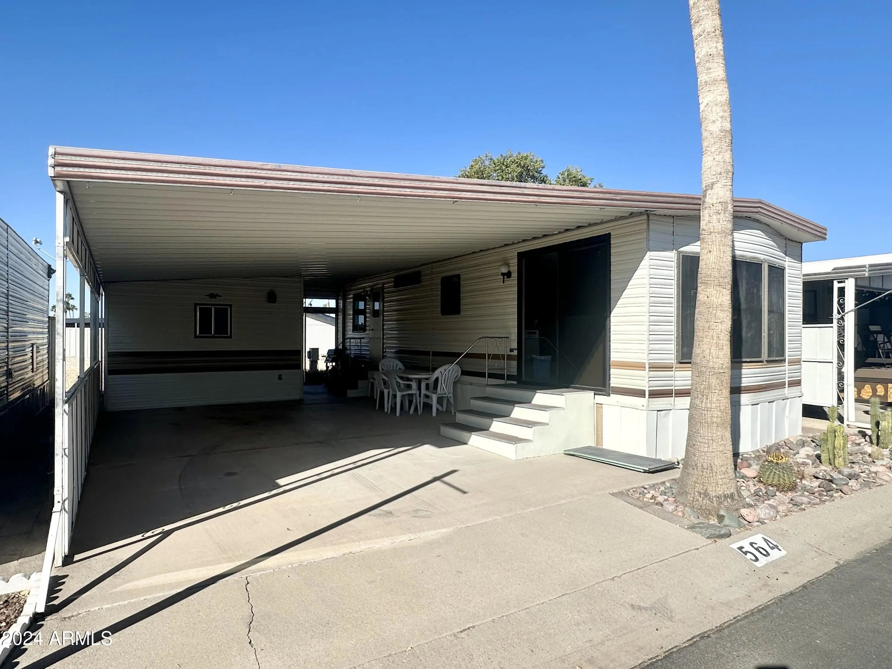 CHARMING 1985 park model in a FANTASTIC 55 PLUS RESORT! OWN YOUR LAND! This cozy and well loved 400sq ft home is PERFECTLY SITUATED IN A HIGHLY DESIRABLE location within walking distance to the Clubhouse. Enjoy Mountain peak VIEWS and the privacy of OPEN SPACE BEHIND-no neighboring units at the rear in close proximity, The U-shaped kitchen features a STAINLESS STEEL REFRIDGERATOR, a FULL SIZE STOVE, ample counter and cabinet space, and an RO drinking water system for fresh, clean water. The SPACIOUS front living area boasts large windows with mountain views, creating a bright and welcoming atmosphere. The bedroom offers a cozy retreat with plenty of built in storage, while the bathroom features a TUB/SHOWER combo for added convenience. Additional highlights include a NEWER A/C UNIT, ROOF SEALED in 2023 and a GRAND storage shed equipped with a WASHER & DRYER, providing ample space for your extras or make it a hobby area. You will enjoy all the outdoor space this lot has to offer & LOVE YOUR MOUNTAIN VIEWS! The GRAND BACK PATIO offers additional outdoor space & perfect for lounging & barbequing up your favorites. If you need storage room this one has it all. It can't get any better than this! With tons of activities to enjoy in this VIBRANT COMMUNITY, this park model is the PERFECT place to relax and make our own. DON'T MISS this opportunity! COME LIVE THE LIFESTYLE YOU DESERVE!