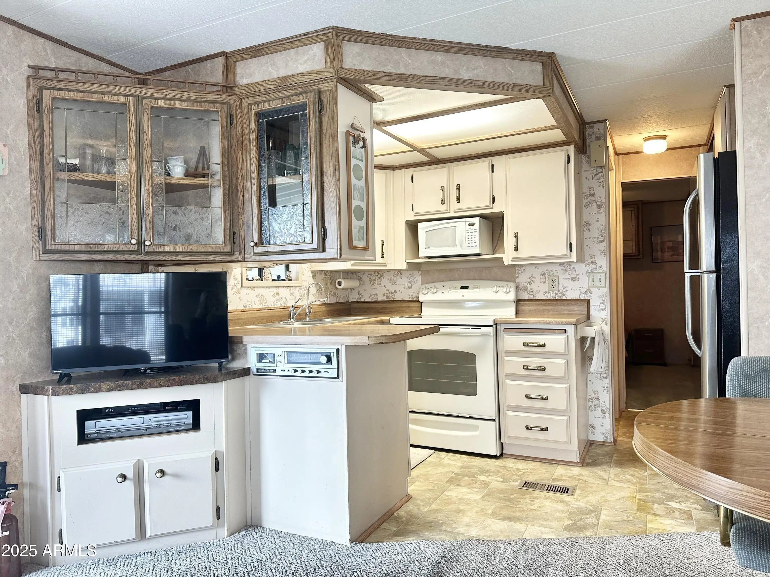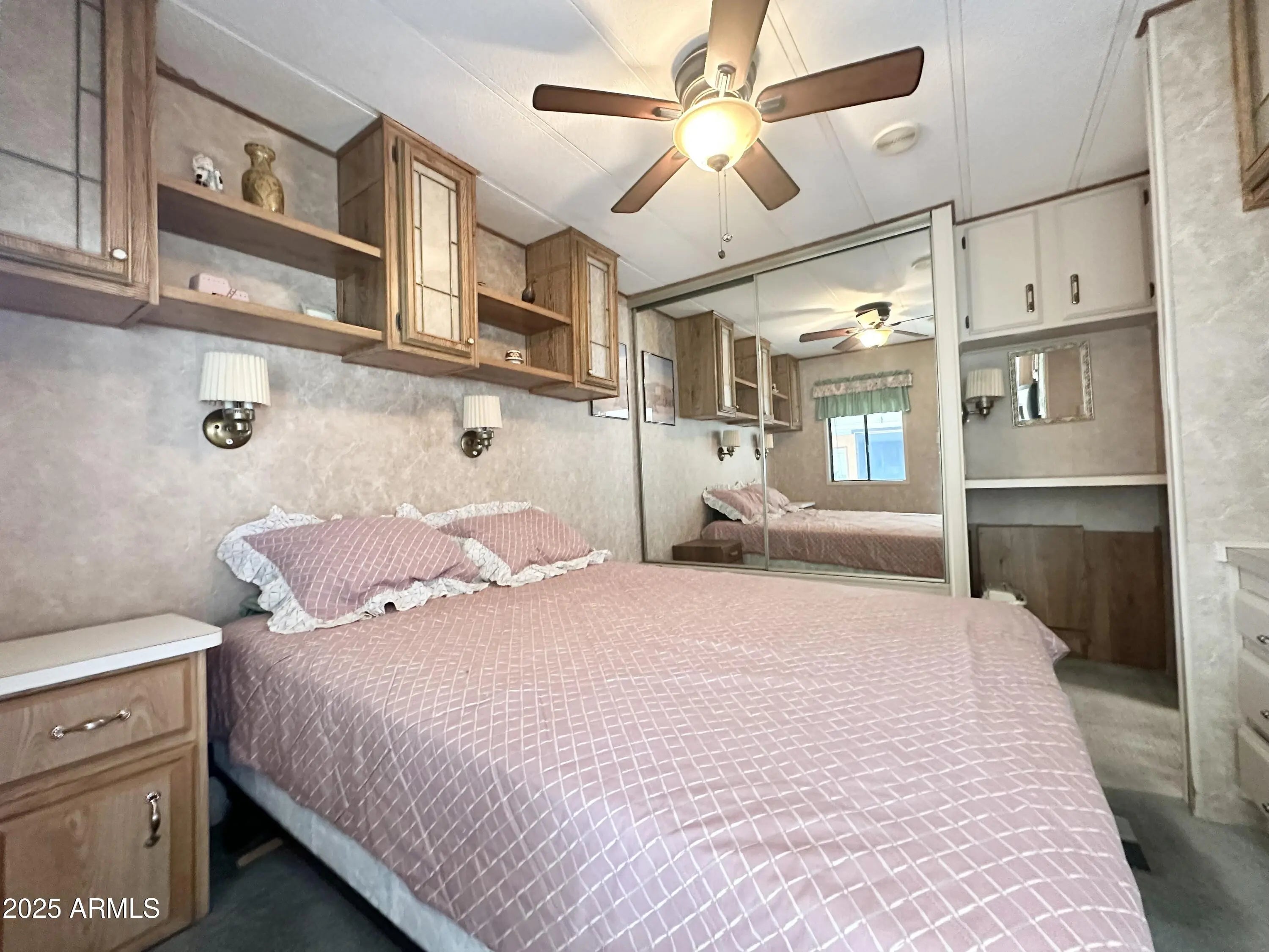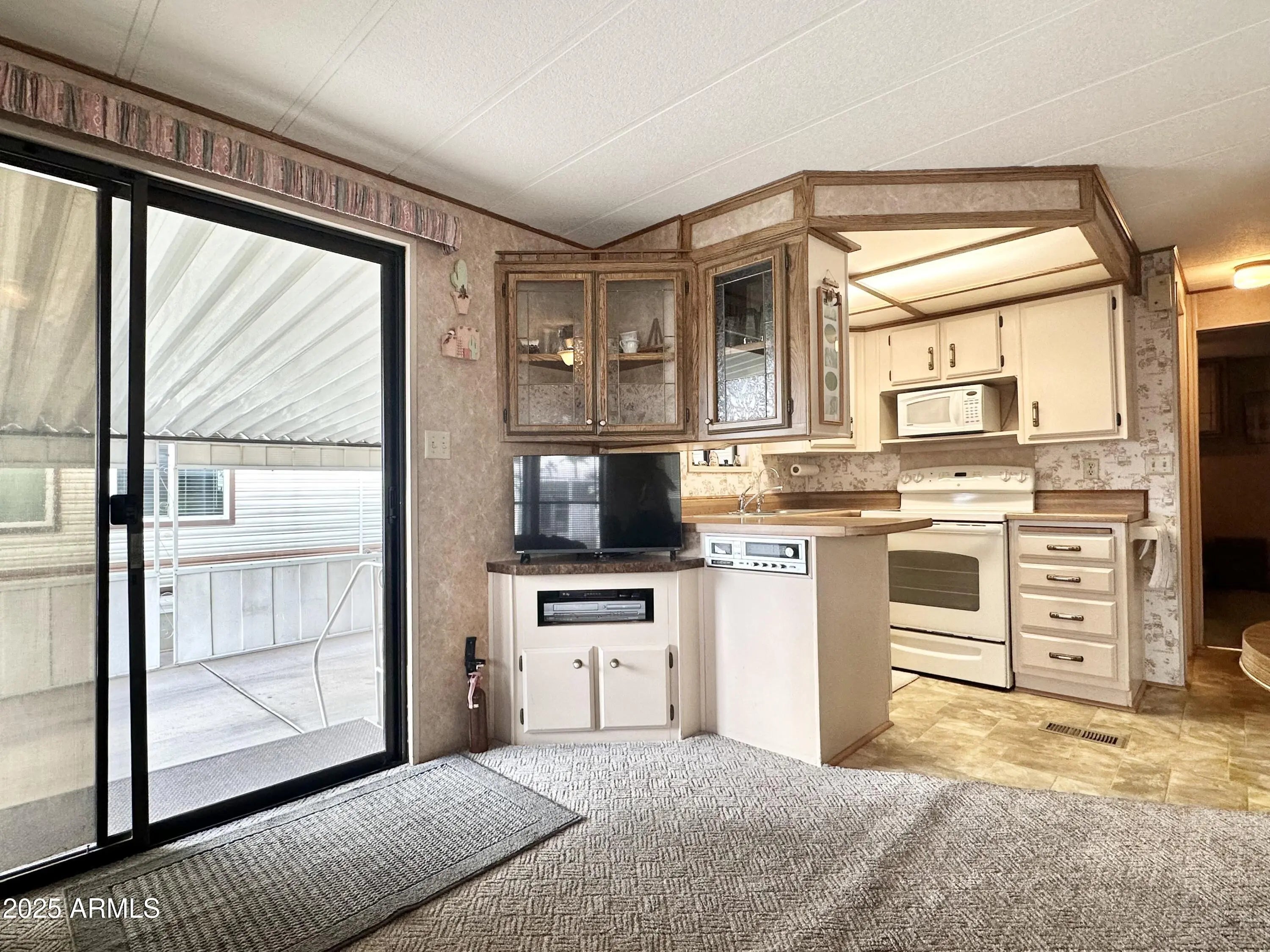 CHARMING 1985 park model in a FANTASTIC 55 PLUS RESORT! OWN YOUR LAND! This cozy and well loved 400sq ft home is PERFECTLY SITUATED IN A HIGHLY DESIRABLE location within walking distance to the Clubhouse. Enjoy Mountain peak VIEWS and the privacy of OPEN SPACE BEHIND-no neighboring units at the rear in close proximity, The U-shaped kitchen features a STAINLESS STEEL REFRIDGERATOR, a FULL SIZE STOVE, ample counter and cabinet space, and an RO drinking water system for fresh, clean water. The SPACIOUS front living area boasts large windows with mountain views, creating a bright and welcoming atmosphere. The bedroom offers a cozy retreat with plenty of built in storage, while the bathroom features a TUB/SHOWER combo for added convenience. Additional highlights include a NEWER A/C UNIT, ROOF SEALED in 2023 and a GRAND storage shed equipped with a WASHER & DRYER, providing ample space for your extras or make it a hobby area. You will enjoy all the outdoor space this lot has to offer & LOVE YOUR MOUNTAIN VIEWS! The GRAND BACK PATIO offers additional outdoor space & perfect for lounging & barbequing up your favorites. If you need storage room this one has it all. It can't get any better than this! With tons of activities to enjoy in this VIBRANT COMMUNITY, this park model is the PERFECT place to relax and make our own. DON'T MISS this opportunity! COME LIVE THE LIFESTYLE YOU DESERVE!