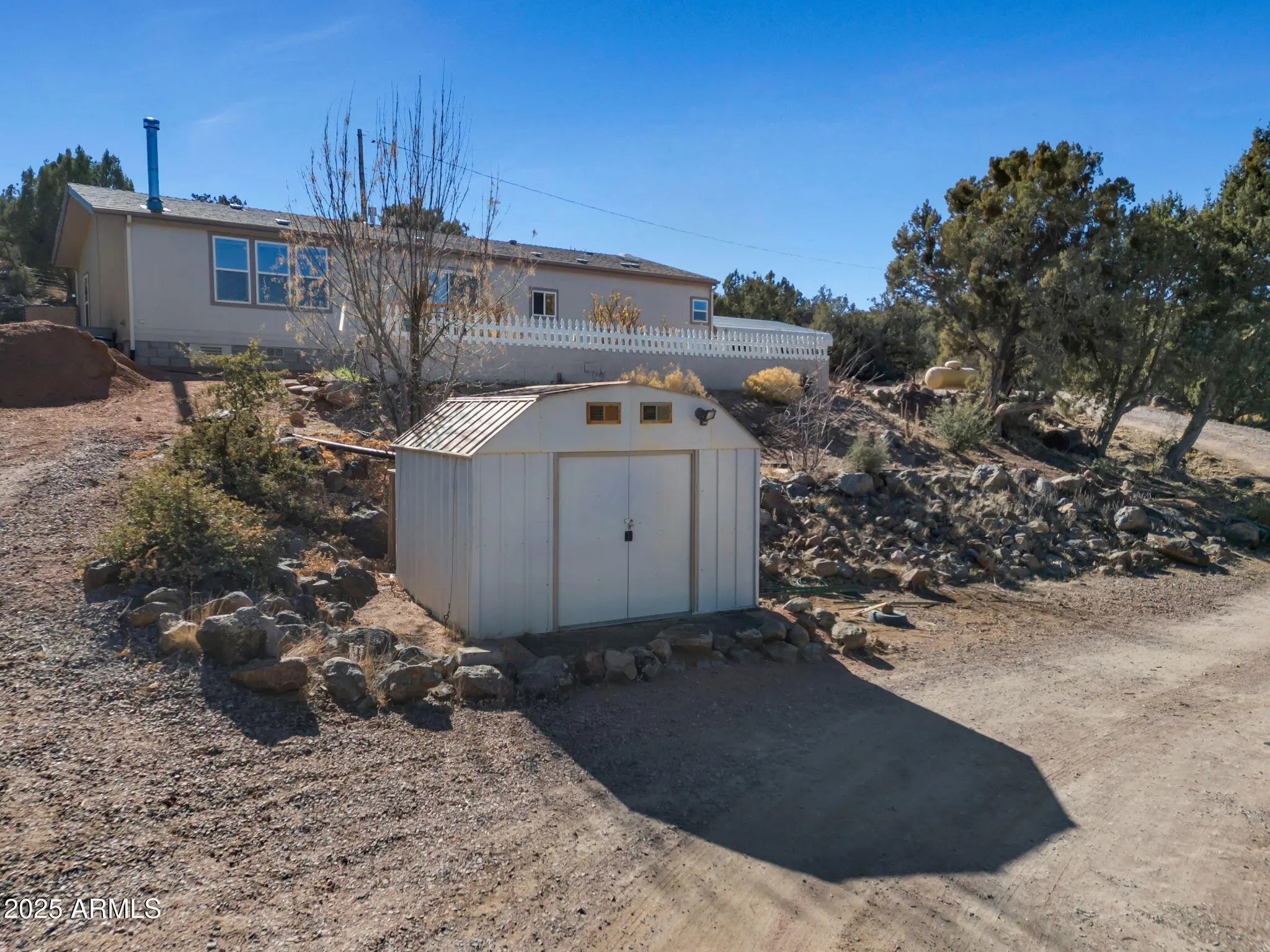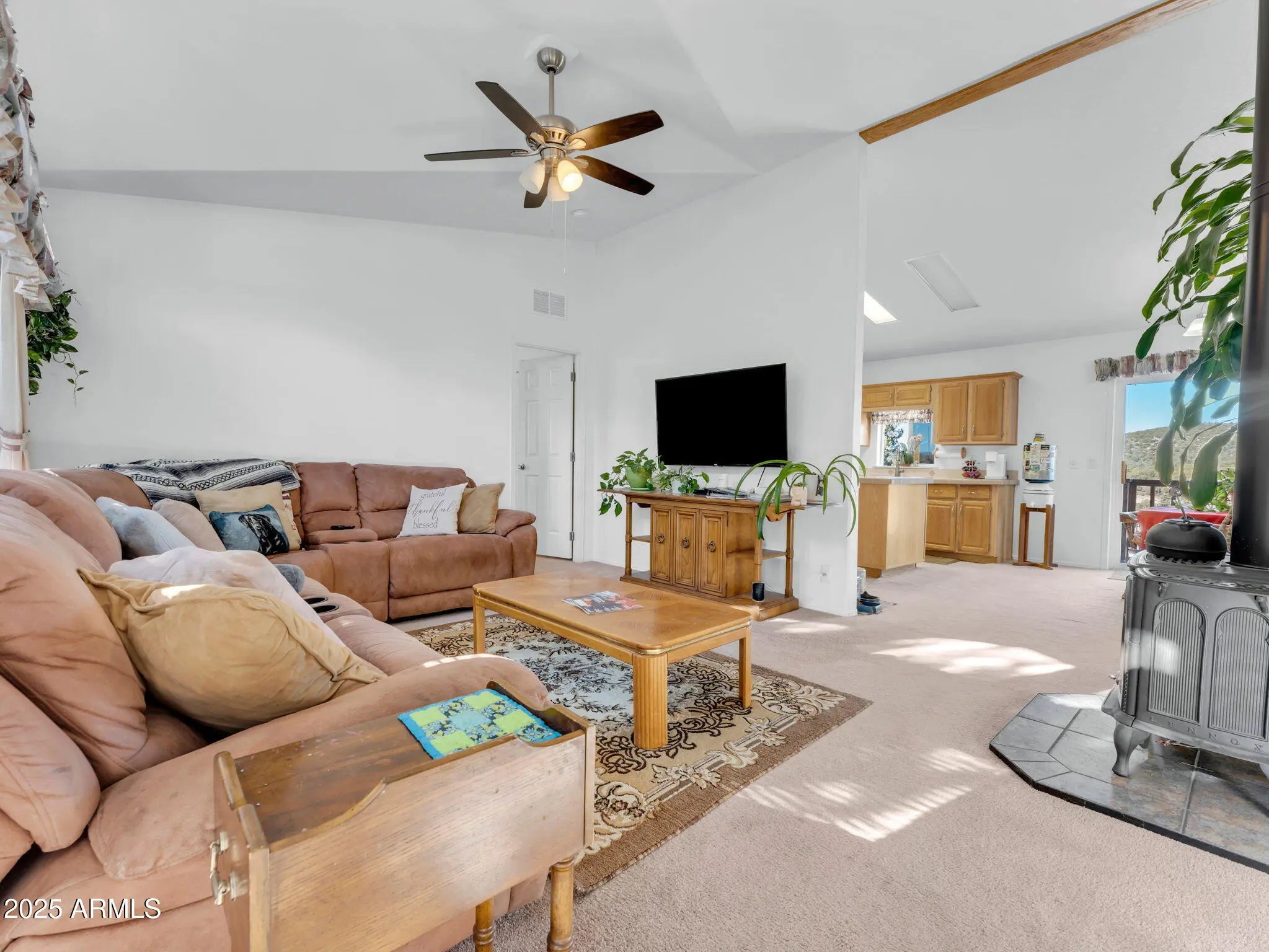 This beautiful 3-bedroom 2, 2-bath home on 1.37 acres is move-in ready. Equipped with a wood and gas stove, you won't have to worry about those chilly nights. There is a family room and a great room. It has a very private back-covered patio. Separate 20X20 garage with power, AC, wood stove, and cable TV. Fenced garden area. Private well. Rainwater catchment. 2 car carport. 2 sheds for extra storage. Chicken pen. Let me tell you about the views. WOW, the mountain views are amazing. The wildlife is seen often, and the trails are endless. Come enjoy the peace and quiet just minutes from Payson.