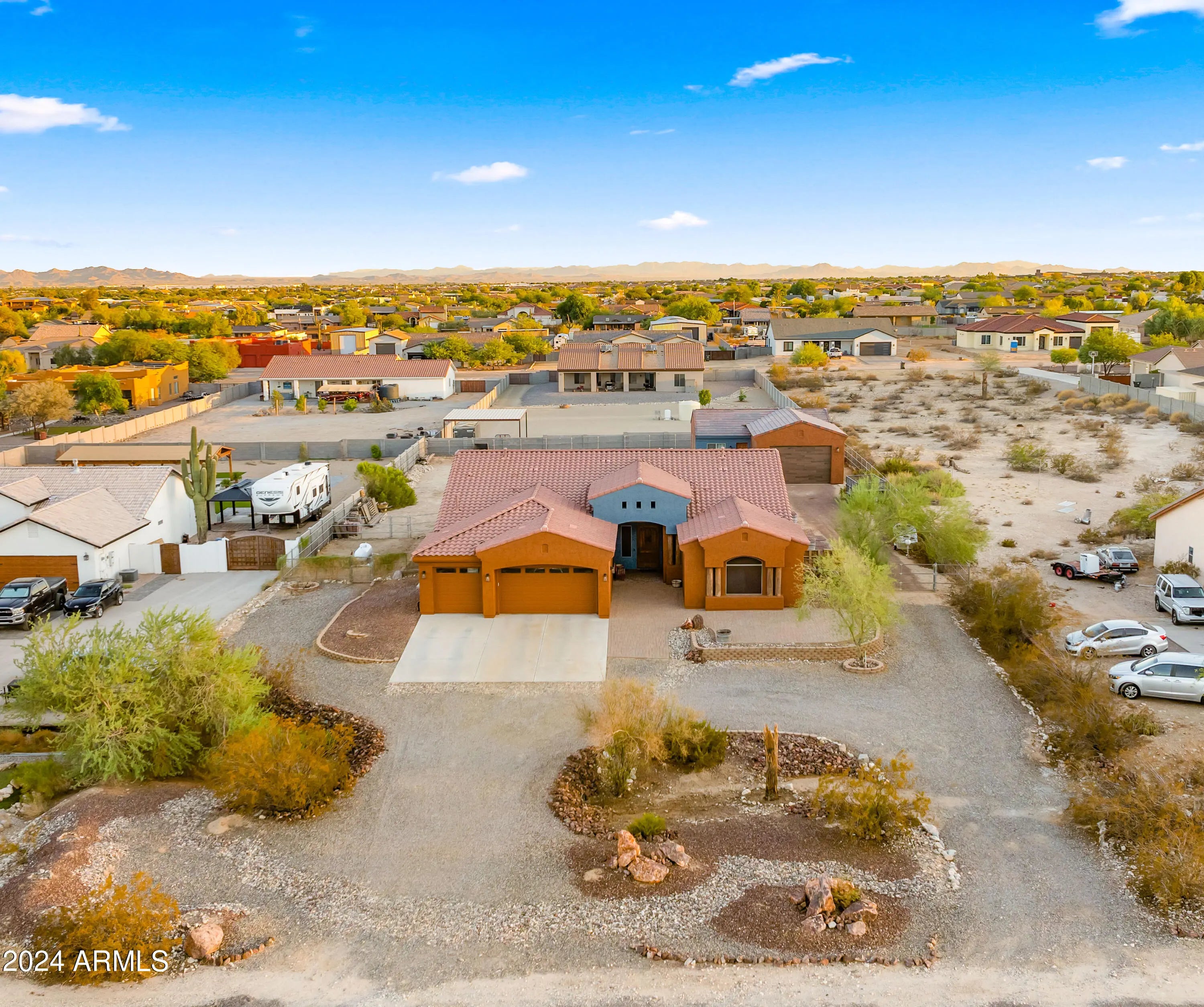 ***ATTN: ADU*** MULTI-GENERATIONAL living at its finest! NO HOA! 4-Bed, 2.5-Bath main CUSTOM HOME (3051 SF) on nearly an ACRE. New 2024 Two Bed, 1 Bath House (920 SF) w/full kitchen & laundry. Ample space for RVs & trailers, plus 5 GARAGE SPACES. The ADU/guest house offers endless possibilities: multi-gen living, office, studio, rental income, entertaining, or a pool house. Both homes boast 10-ft ceilings (plus a 14-ft vault in the main living space) and high-end finishes. The main house includes an open split floor plan, add'l den/office & luxury upgrades. Outdoors, enjoy a sparkling pool w/ waterfall, spa, Baja step & in-pool table. Relax under the grand gazebo or oversized covered patio. ADU garage is 12 ft high—perfect for a lift. You can't build this for the price!!