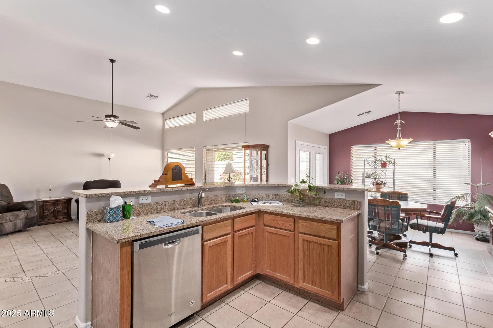 Welcome to this charming 3-bed, 2-bath home with great curb appeal, low-maintenance front yard, 2-car garage with built-in cabinets, and RV gate. Inside, enjoy a spacious great room with vaulted ceilings, tile flooring, and a custom color palette. The eat-in kitchen features wood cabinetry, granite counters, stainless steel appliances, pantry, recessed lighting, and a two-tiered island. The primary suite offers a bay window, walk-in closet, dual sinks, and private patio access. Plus, a cozy open den, covered patio, paver seating area, storage shed, and extra parking slab make this home a must-see!