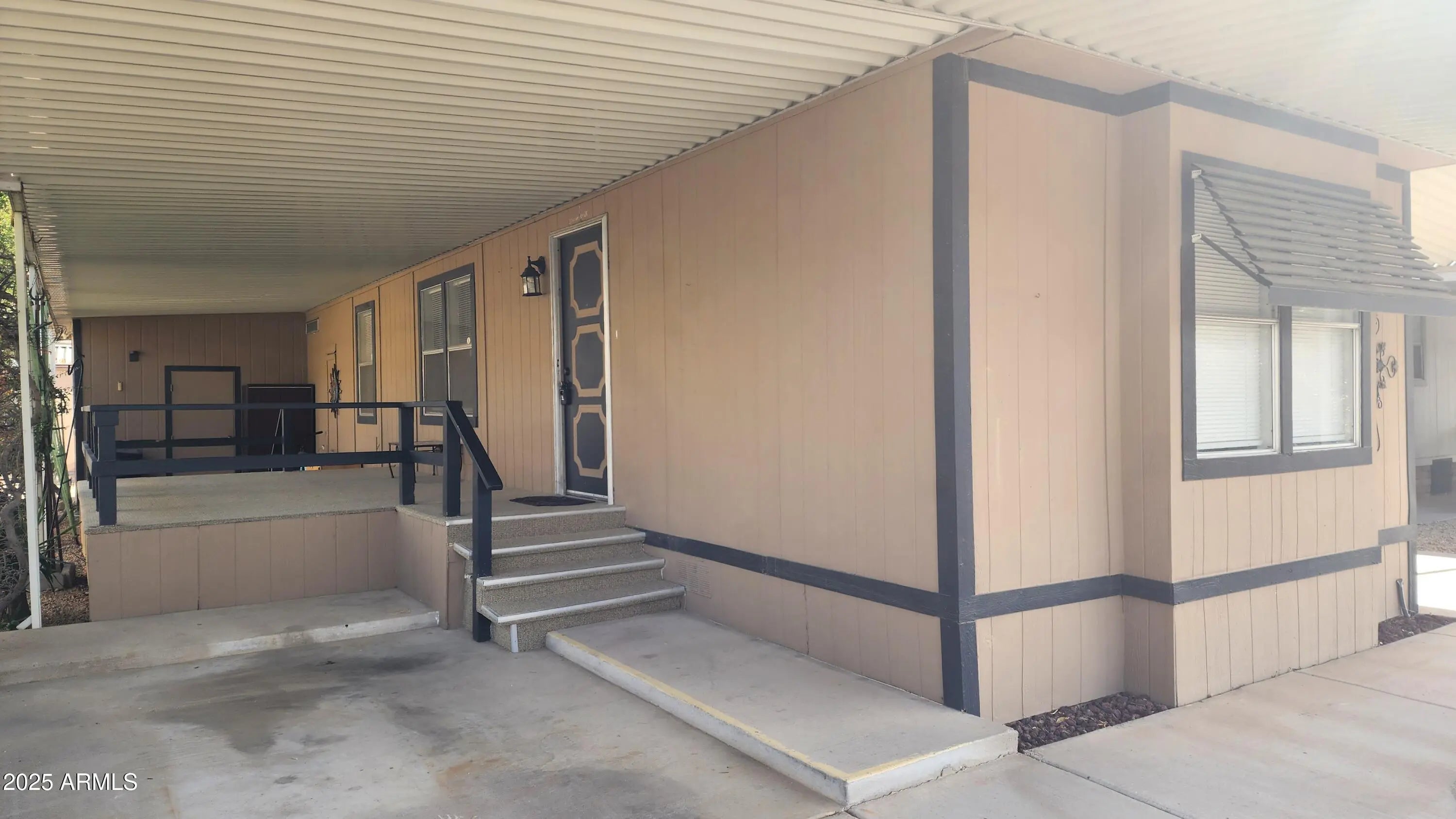 Cozy yet spacious! Single-wide offers 2 bedrooms and 1 bath, perfect for downsizing without sacrificing comfort. Features include vaulted ceilings, a large kitchen with granite countertops, a breakfast bar, and a separate pantry. All appliances are included. Fresh interior paint brightens the space, with tile flooring in main areas and new carpet in the bedrooms. Enjoy a custom walk-in tiled shower and a newly carpeted deck. The AC was replaced in 2022 (coils in 2021). The full canopy on three sides adds efficiency, plus two carports for convenience. Close to the clubhouse, pool, and spa—don't miss this opportunity! This is a 55+ Community and must be park-approved prior to offers, 750+ credit score (no exceptions). Lot rent: $915/month. Seller May Carry.