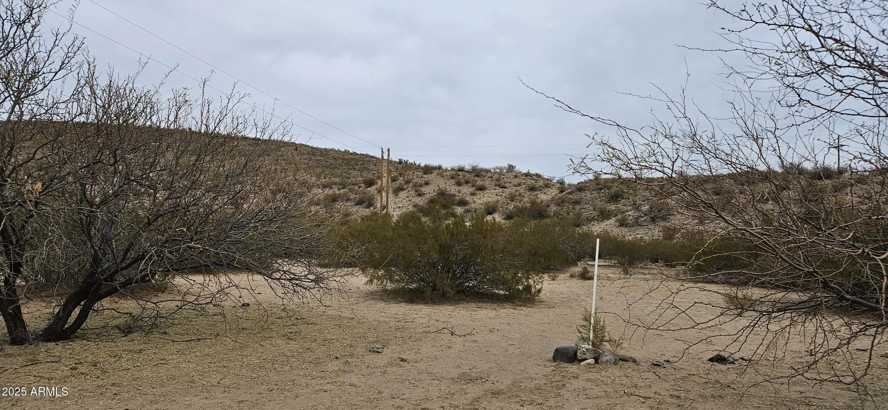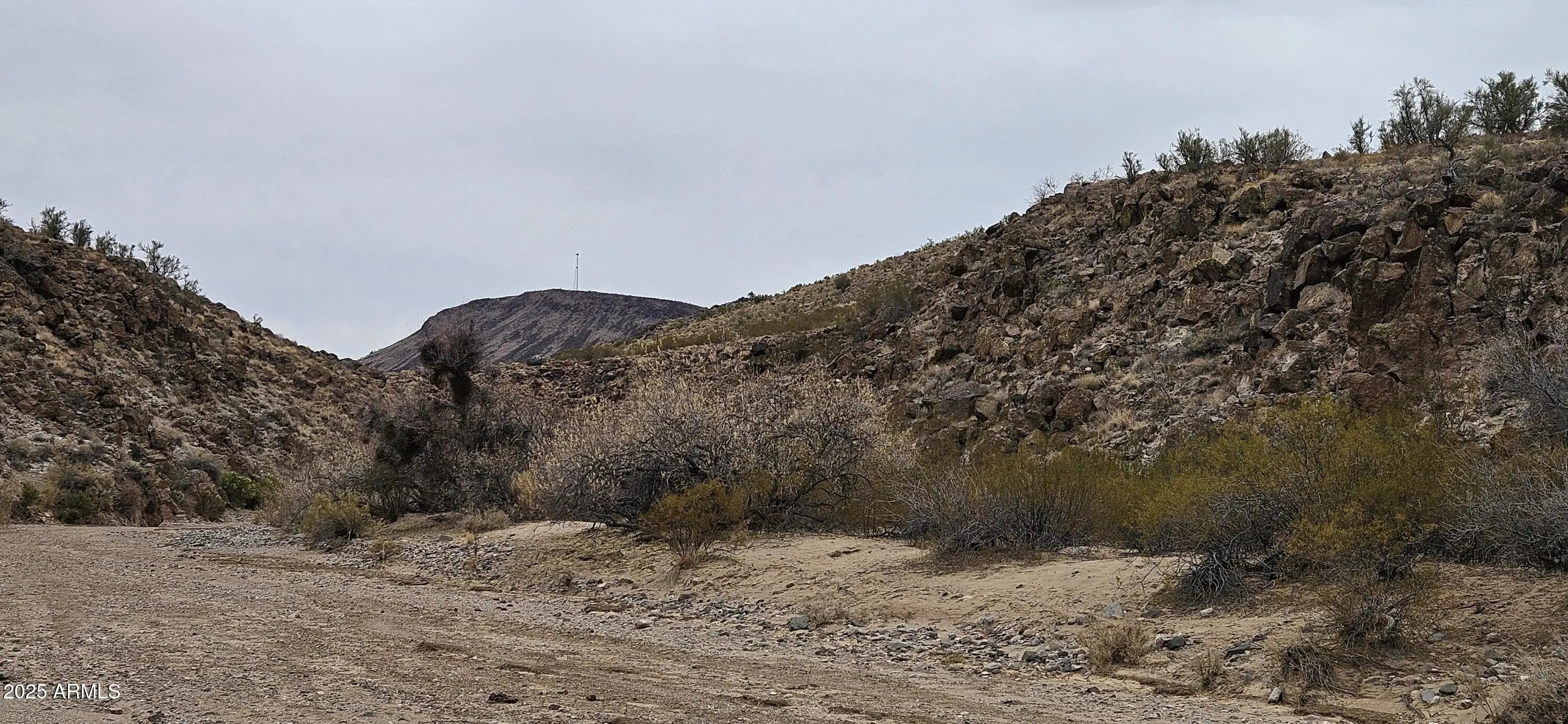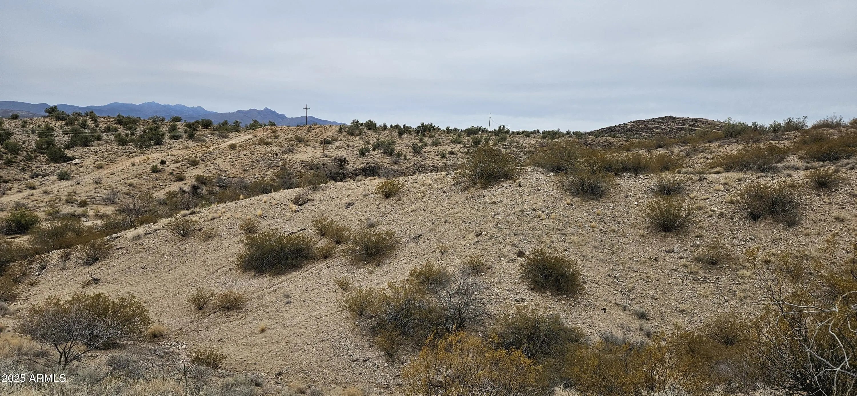 This mountain has your back! Forty two point three one (42.31) acres has a great area for a pad and rises to the top of the hill where you can see I -40 south east to Aquarius Mountains and north east to the Cottonwood Mountains. There are two access roads, only Tin Mountain Road is passable and passes through a wash. Marble road must be graded to make it passable. There are beautiful rocks on the top of the hill facing the Hualapai Mountains. 3400 to 3740 foot elevation. Power lines at the corner of the parcel. No HOA, no CCR's. This is rough and ready. Broker will assist with locating.
