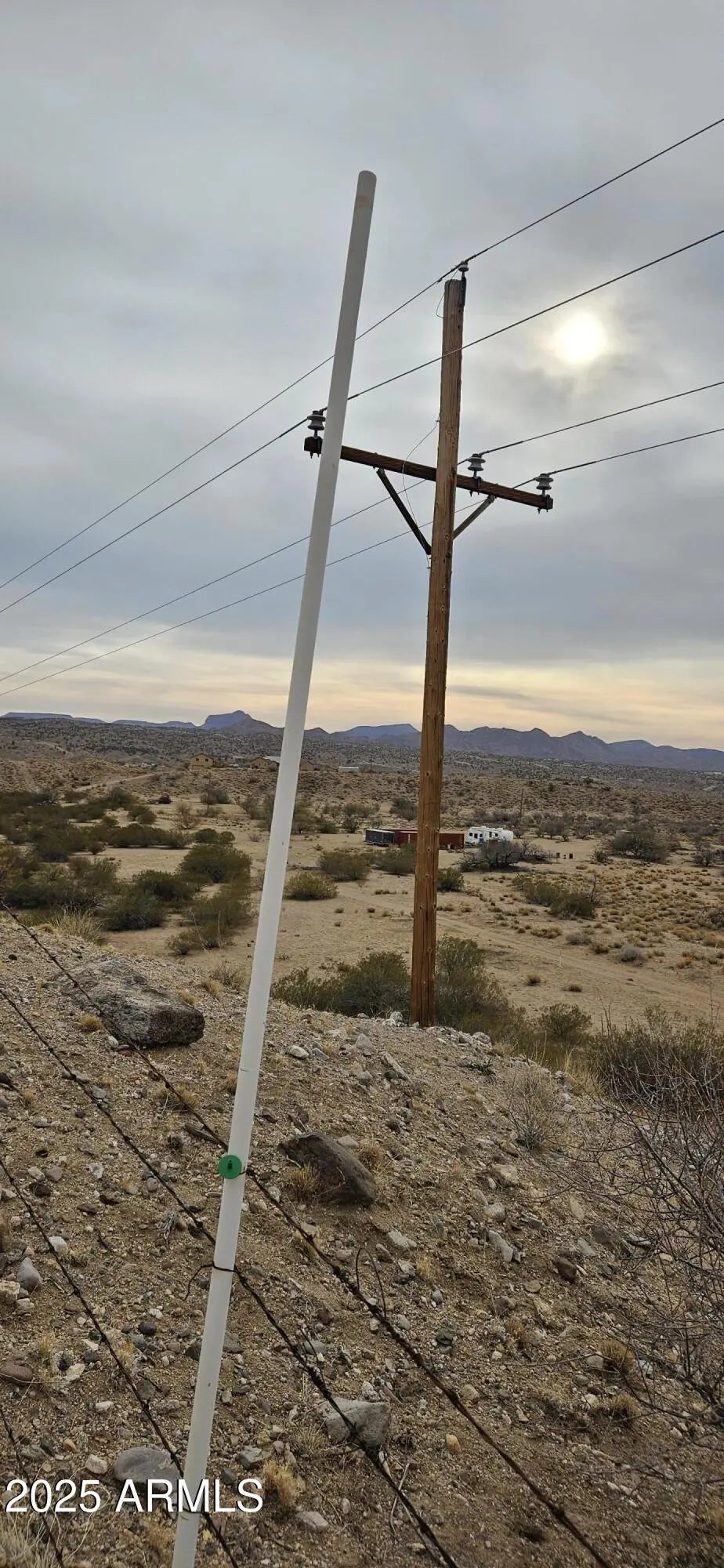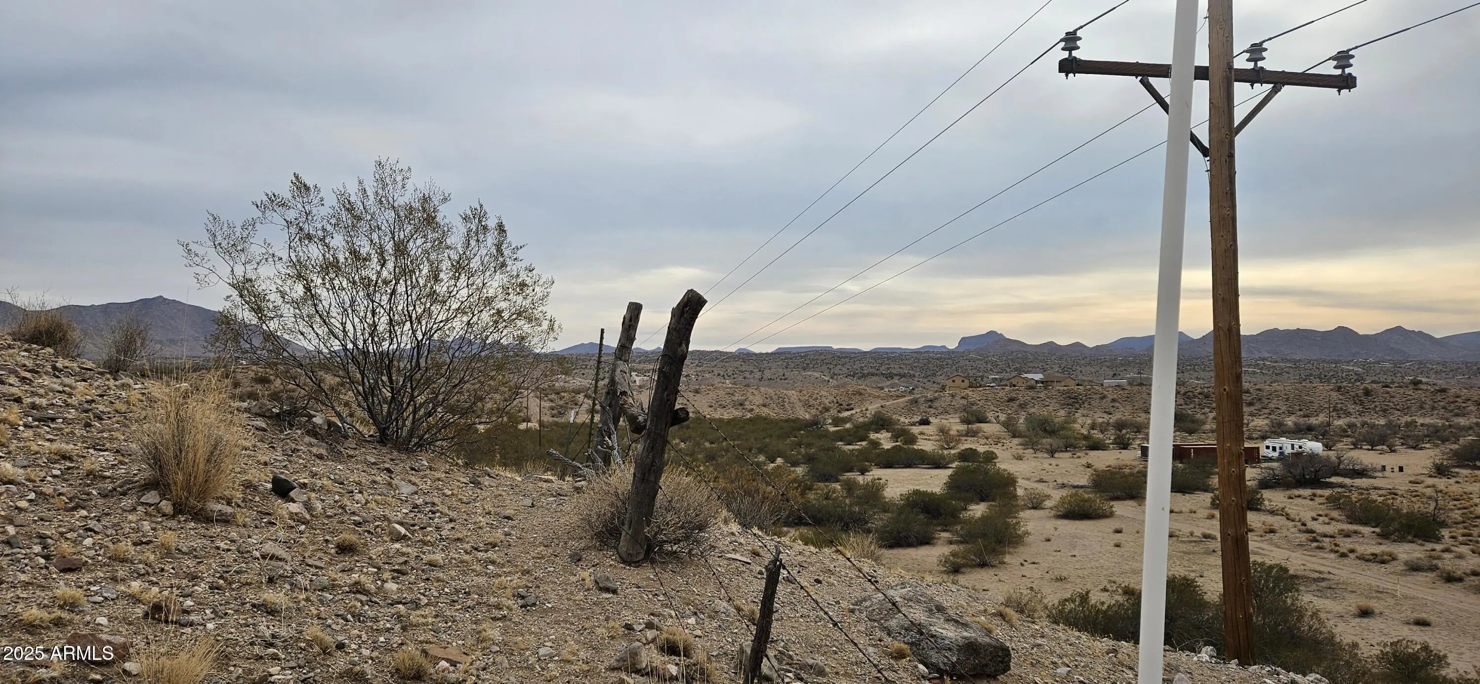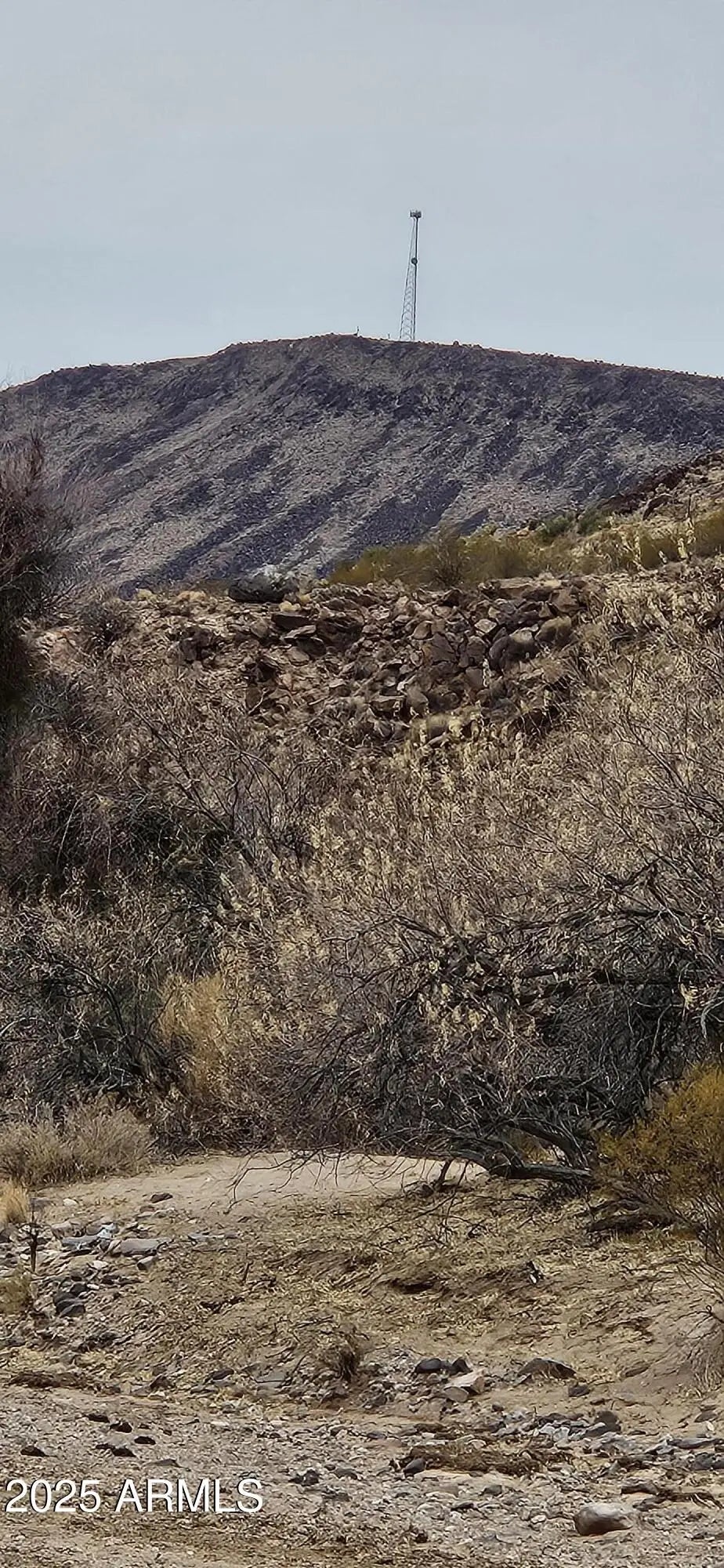 This mountain has your back! Forty two point three one (42.31) acres has a great area for a pad and rises to the top of the hill where you can see I -40 south east to Aquarius Mountains and north east to the Cottonwood Mountains. There are two access roads, only Tin Mountain Road is passable and passes through a wash. Marble road must be graded to make it passable. There are beautiful rocks on the top of the hill facing the Hualapai Mountains. 3400 to 3740 foot elevation. Power lines at the corner of the parcel. No HOA, no CCR's. This is rough and ready. Broker will assist with locating.