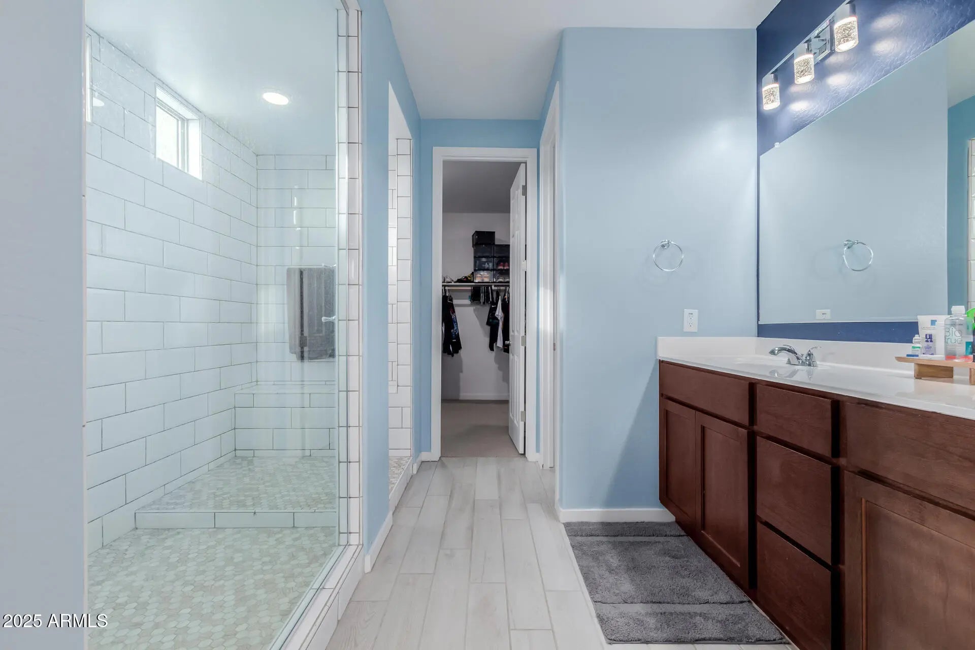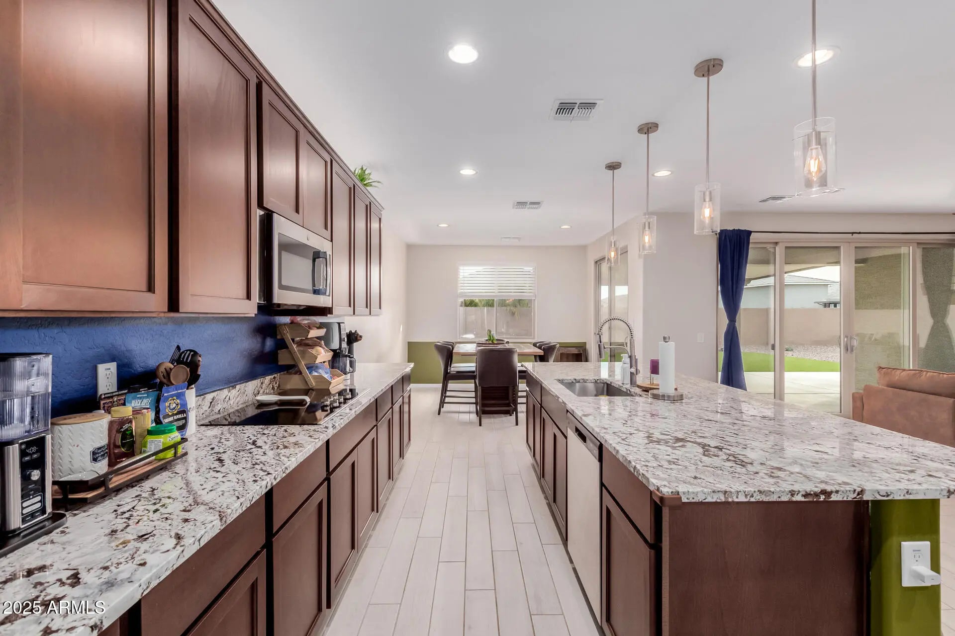 Motivated seller! Gorgeous home with a 3-car garage and an attached 44ft RV garage with NEW AC (seller can remove or relocate to fit RV). Enter through a grand foyer with tray ceilings into an open layout featuring tile wood plank floors, recessed lighting, and multi-sliders that blend indoor and outdoor living. The gourmet kitchen offers wood cabinets, granite counters, SS appliances, double wall ovens, a walk-in pantry, and a large island with a breakfast bar. The main retreat features luxury carpet, tray ceilings, and a private bath with dual sinks and a walk-in rain shower. Enjoy the vast backyard with a covered patio and easy-care landscaping. RV-friendly community with ample parking for toys. This is the ONE!