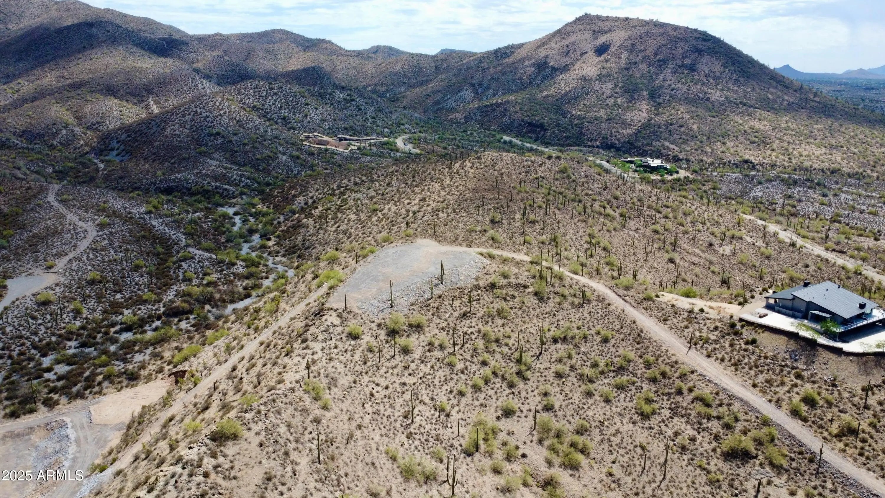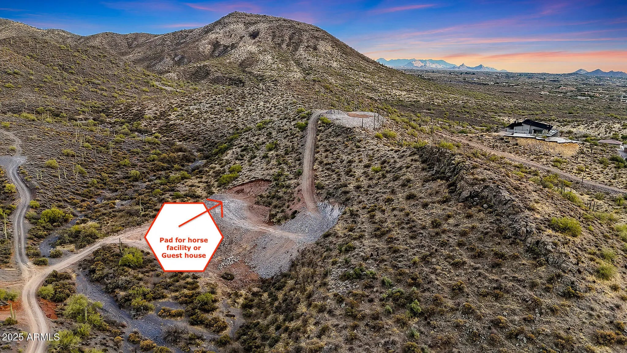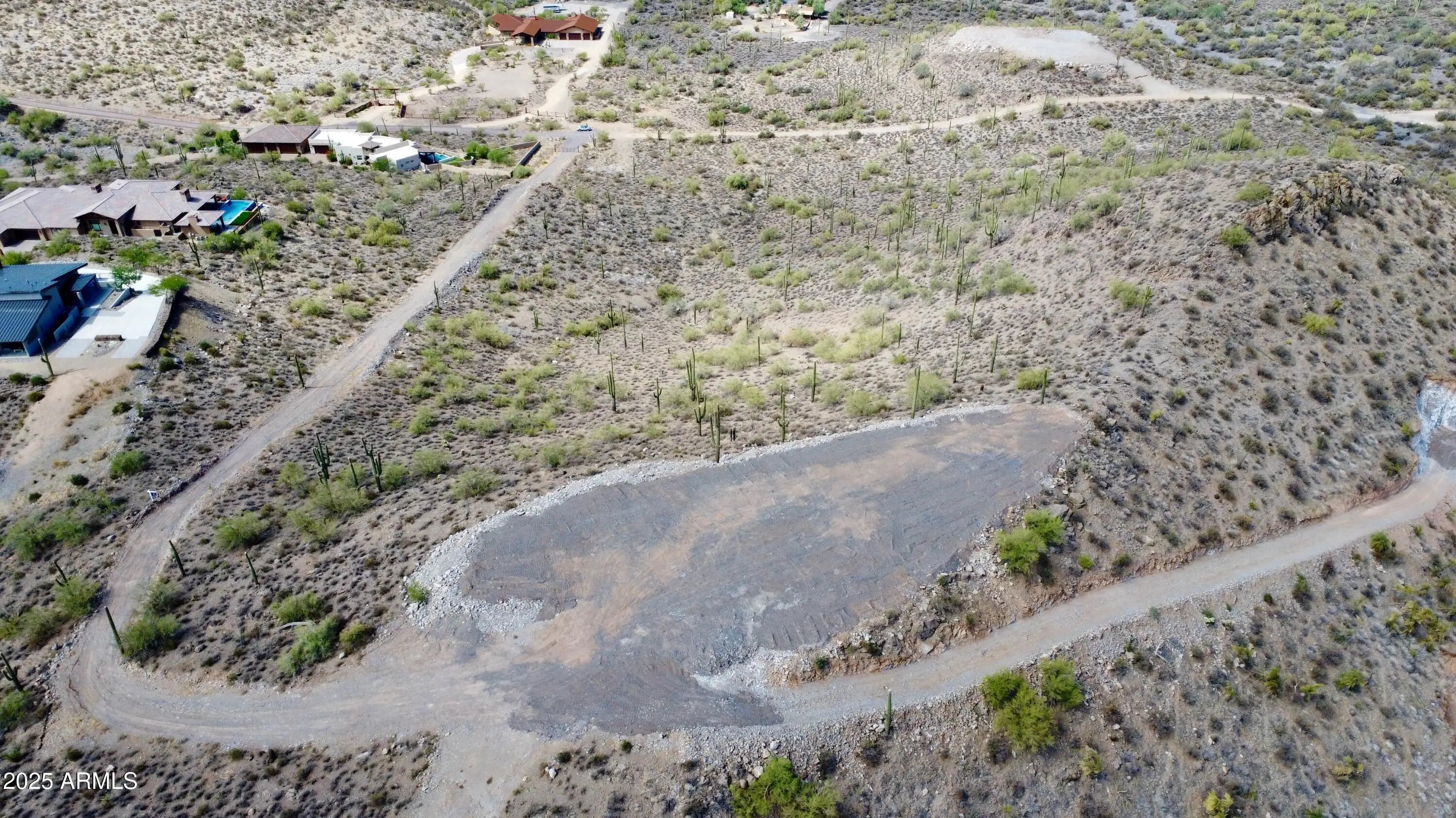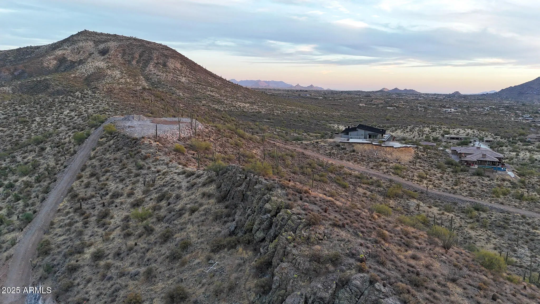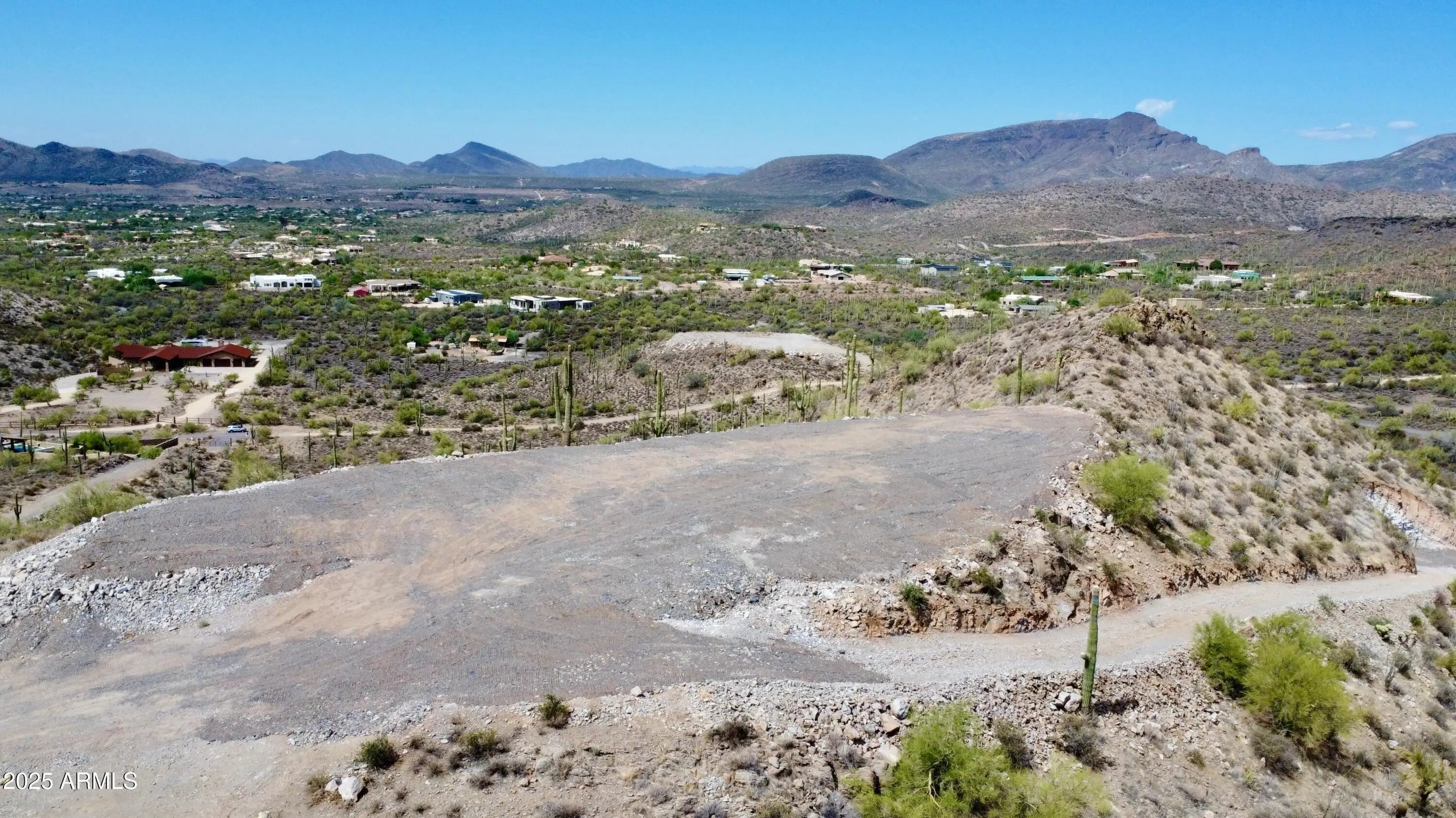 Perched atop a private mountain in North Cave Creek, this rare 5-acre custom home site offers unparalleled 360-degree views of Black Mountain, Elephant Butte, The Continentals, and twinkling city lights. Nestled among lush desert landscapes and towering saguaros, this exclusive homesite is prepped and ready for your dream home. A secondary pad is designed for a luxury horse barn or guest house. Site prep and roadwork are done, soil & engineering reports on file—step into a once-in-a-lifetime opportunity to craft a timeless hilltop estate with extreme privacy and breathtaking vistas in every direction.