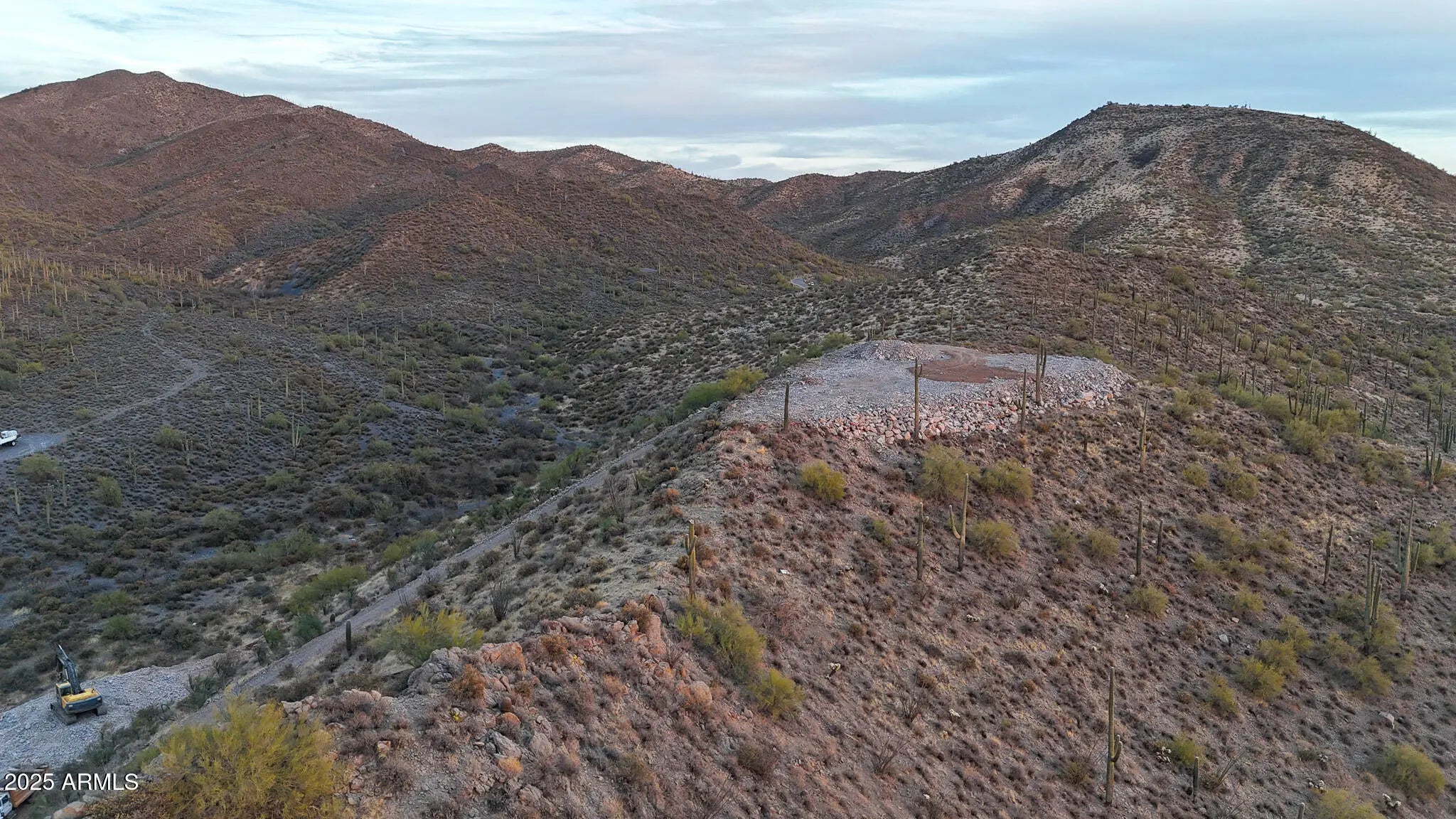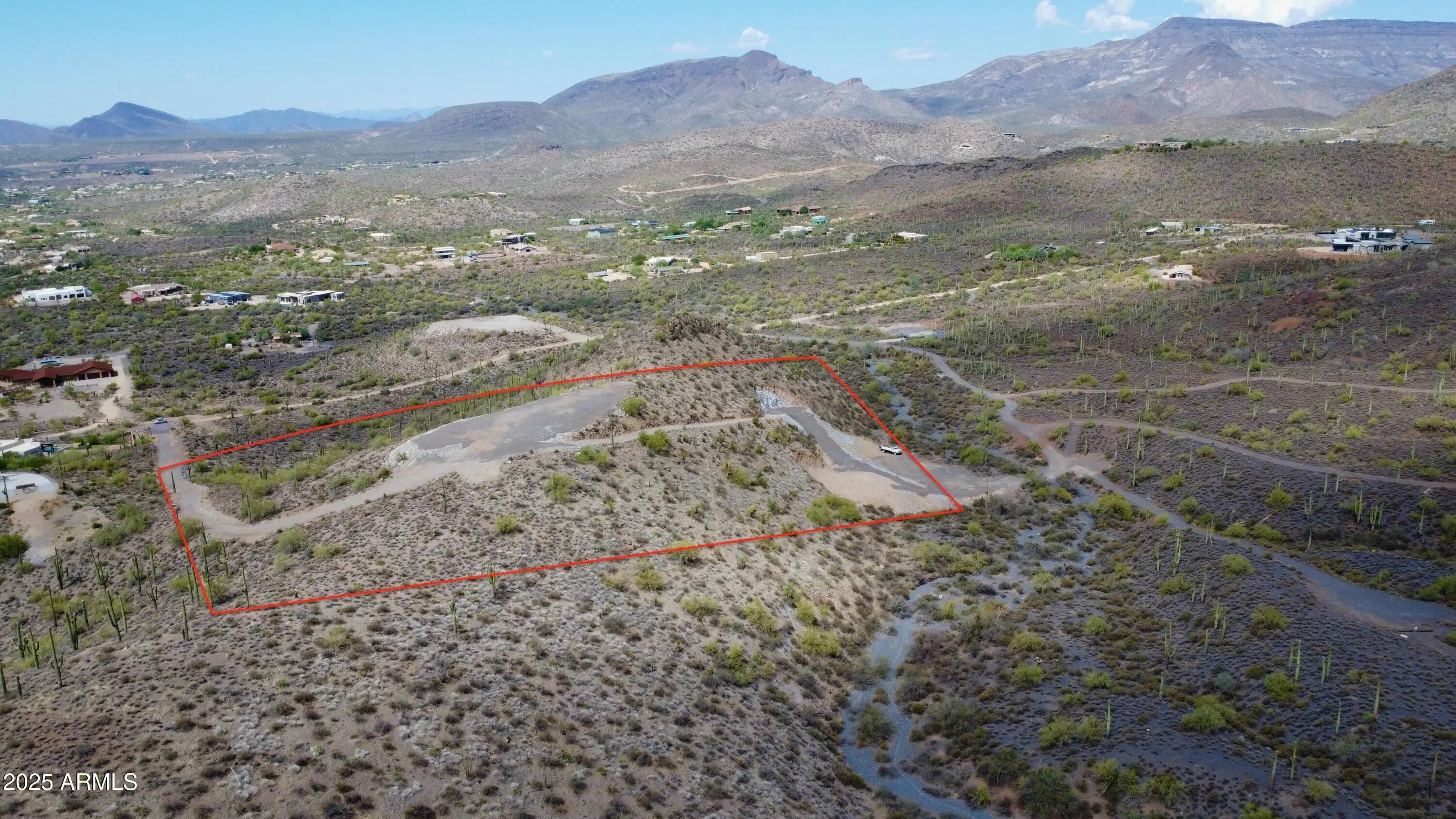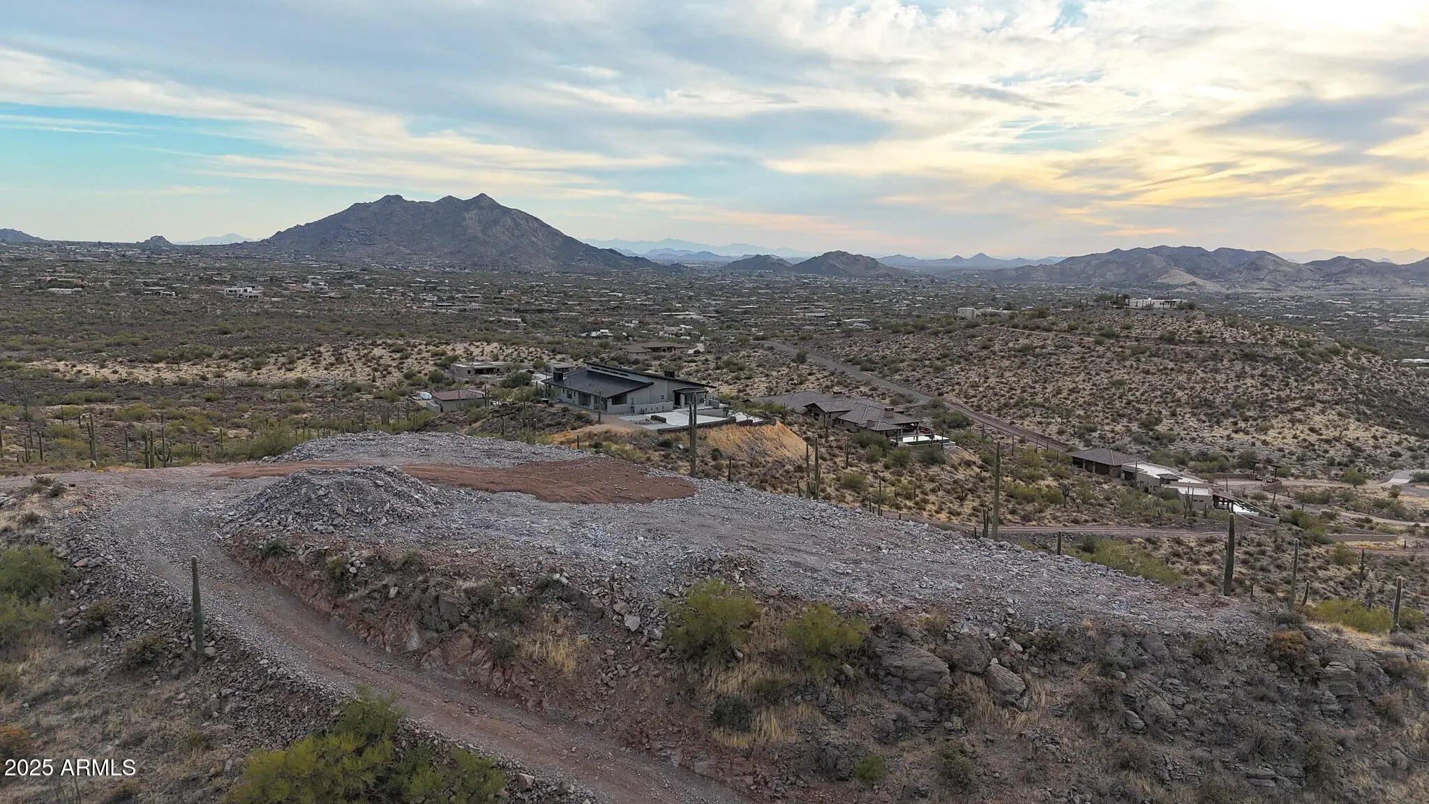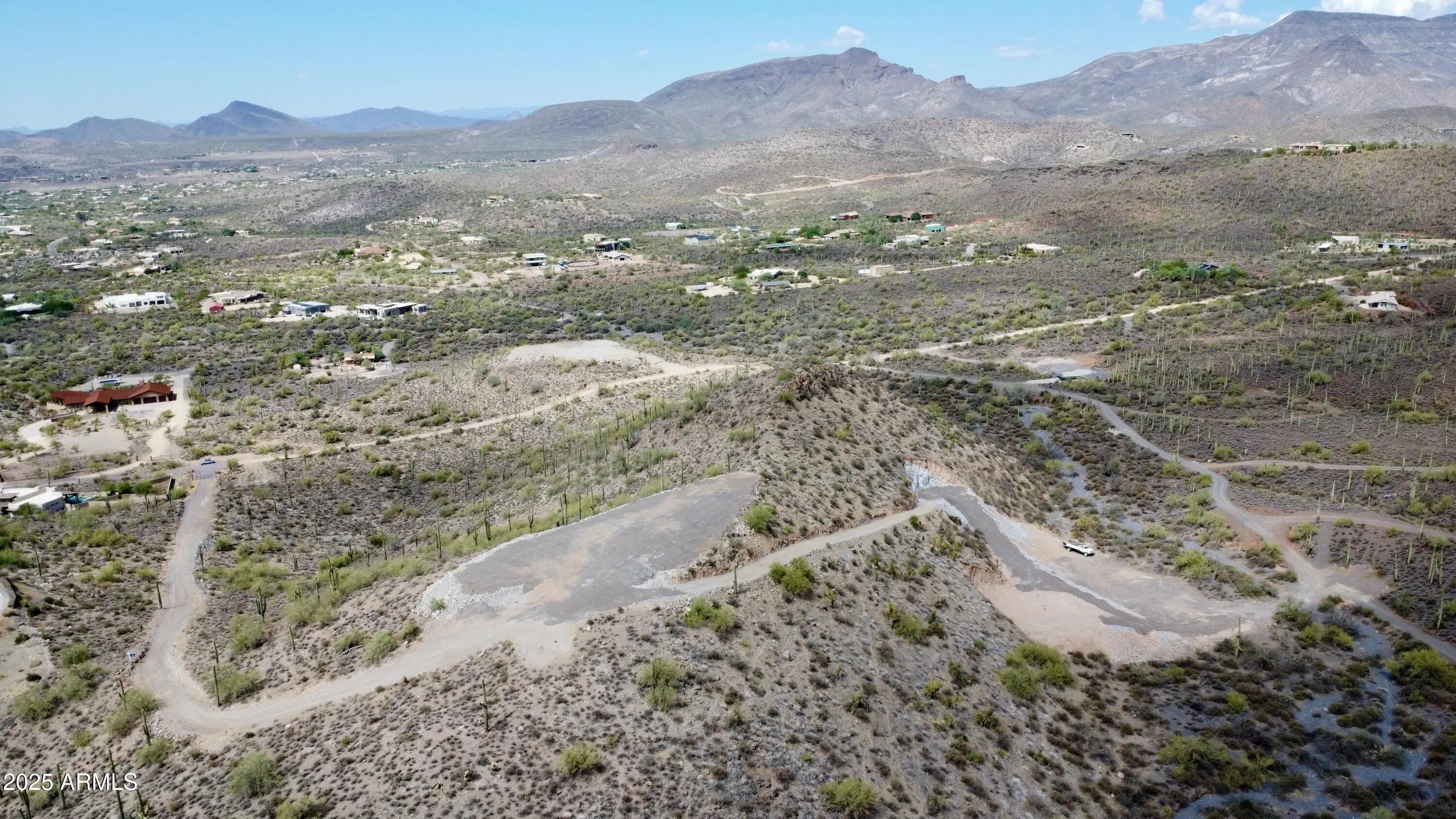 Perched atop a private mountain in North Cave Creek, this rare 5-acre custom home site offers unparalleled 360-degree views of Black Mountain, Elephant Butte, The Continentals, and twinkling city lights. Nestled among lush desert landscapes and towering saguaros, this exclusive homesite is prepped and ready for your dream home. A secondary pad is designed for a luxury horse barn or guest house. Site prep and roadwork are done, soil & engineering reports on file—step into a once-in-a-lifetime opportunity to craft a timeless hilltop estate with extreme privacy and breathtaking vistas in every direction.