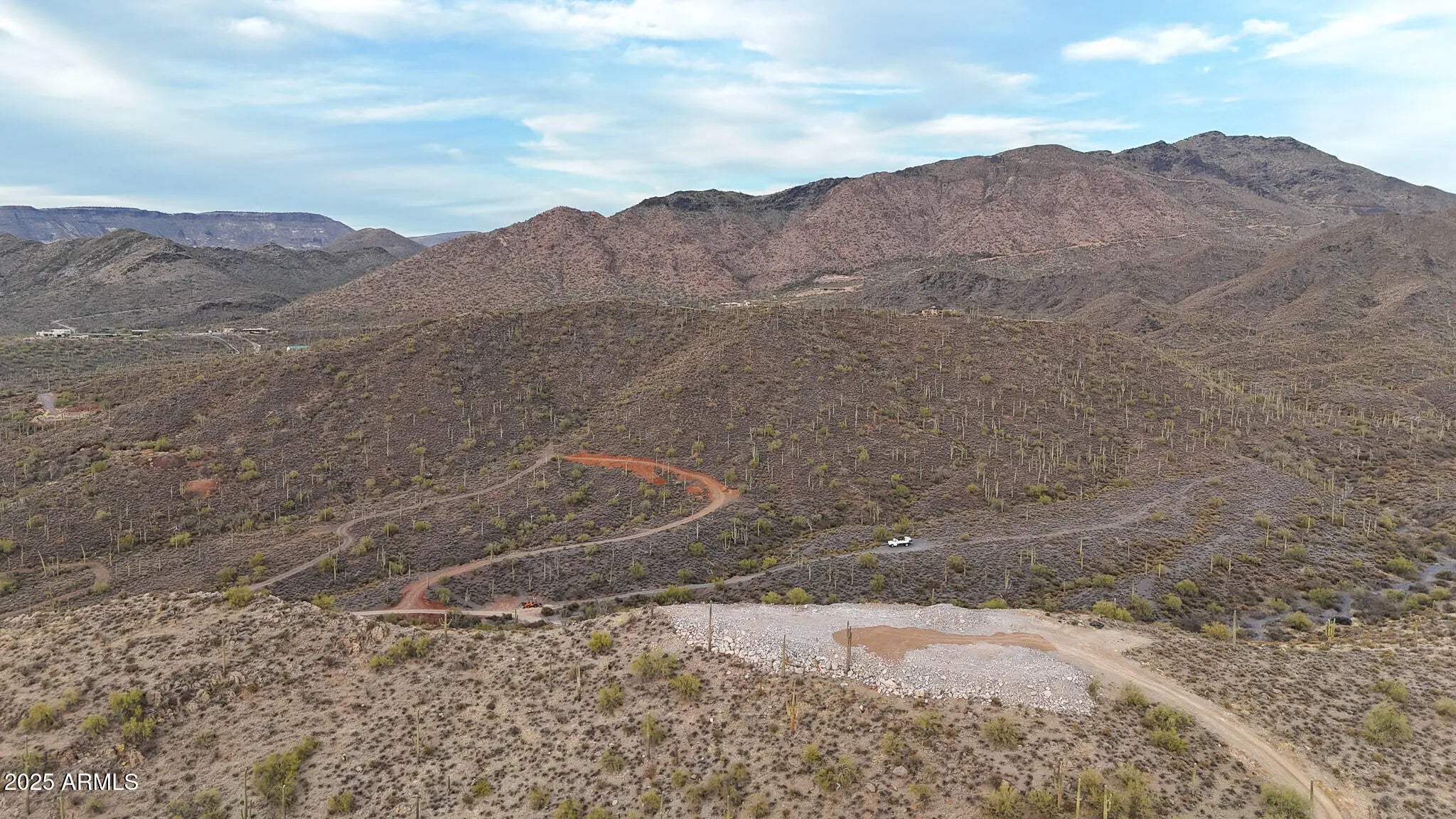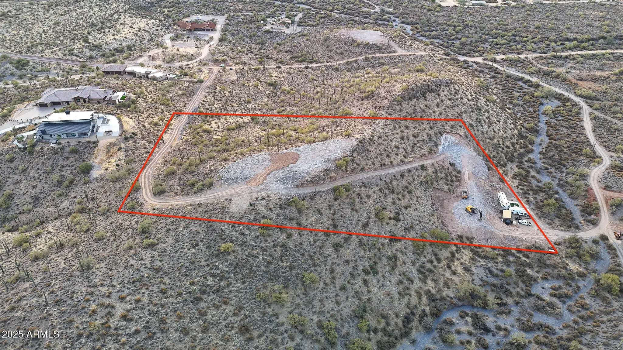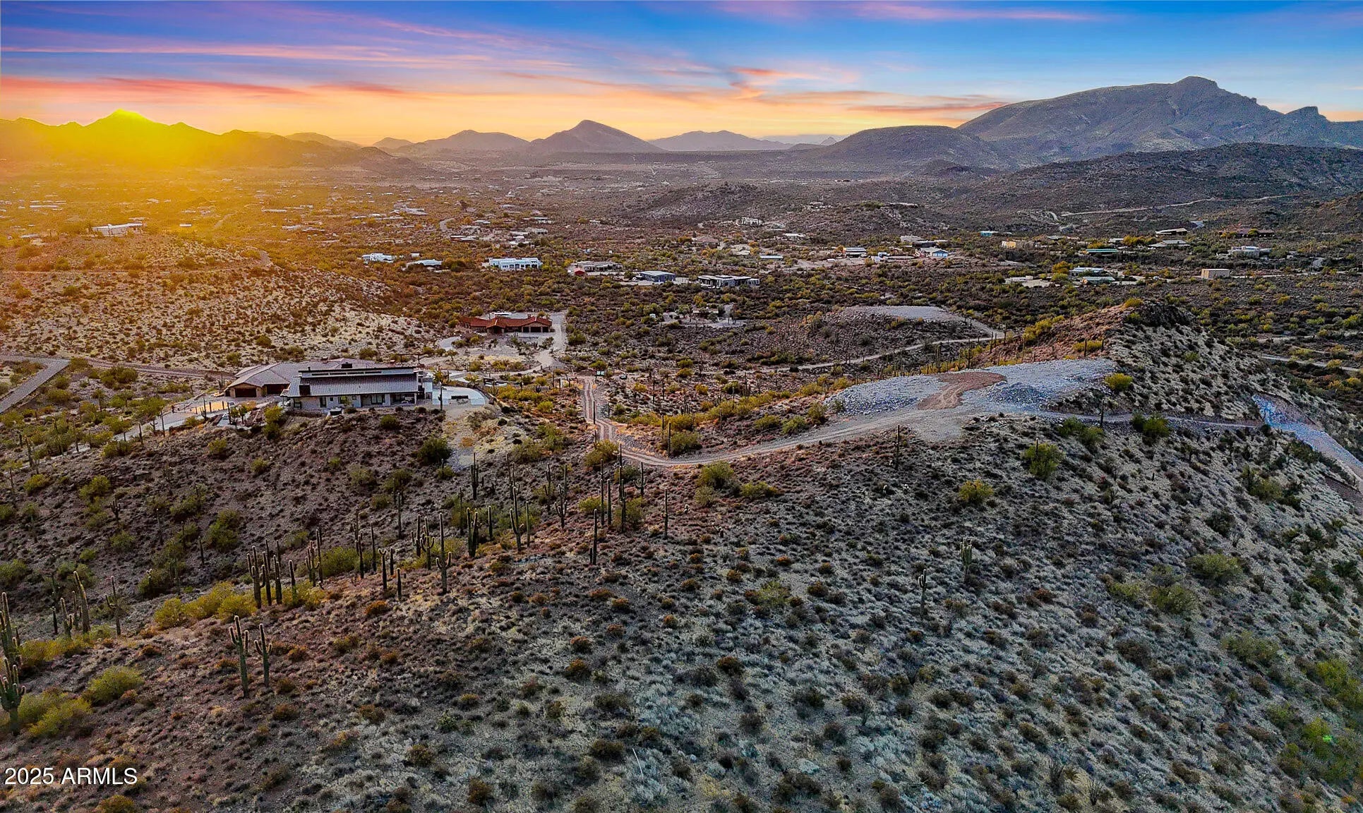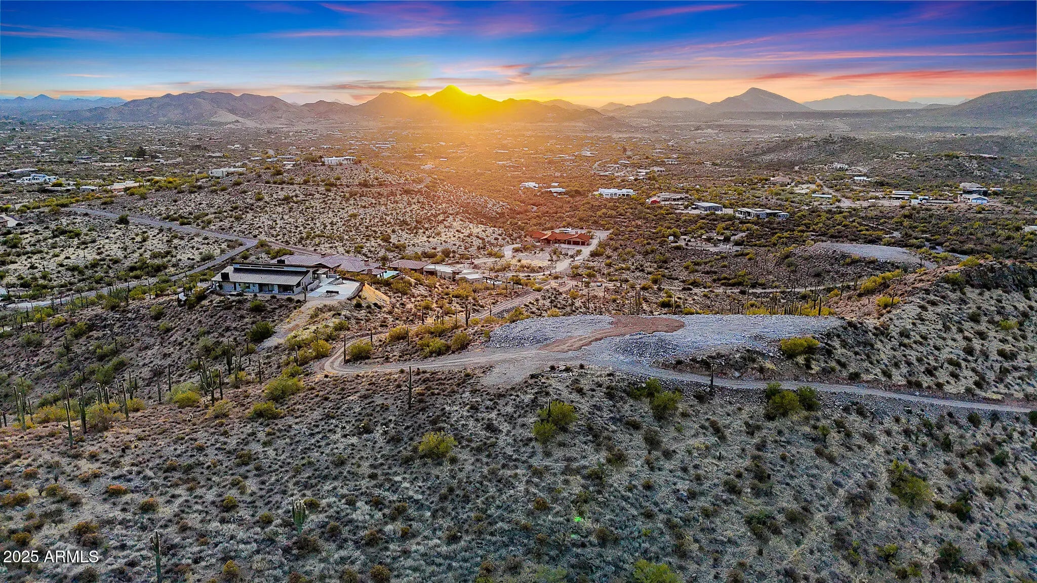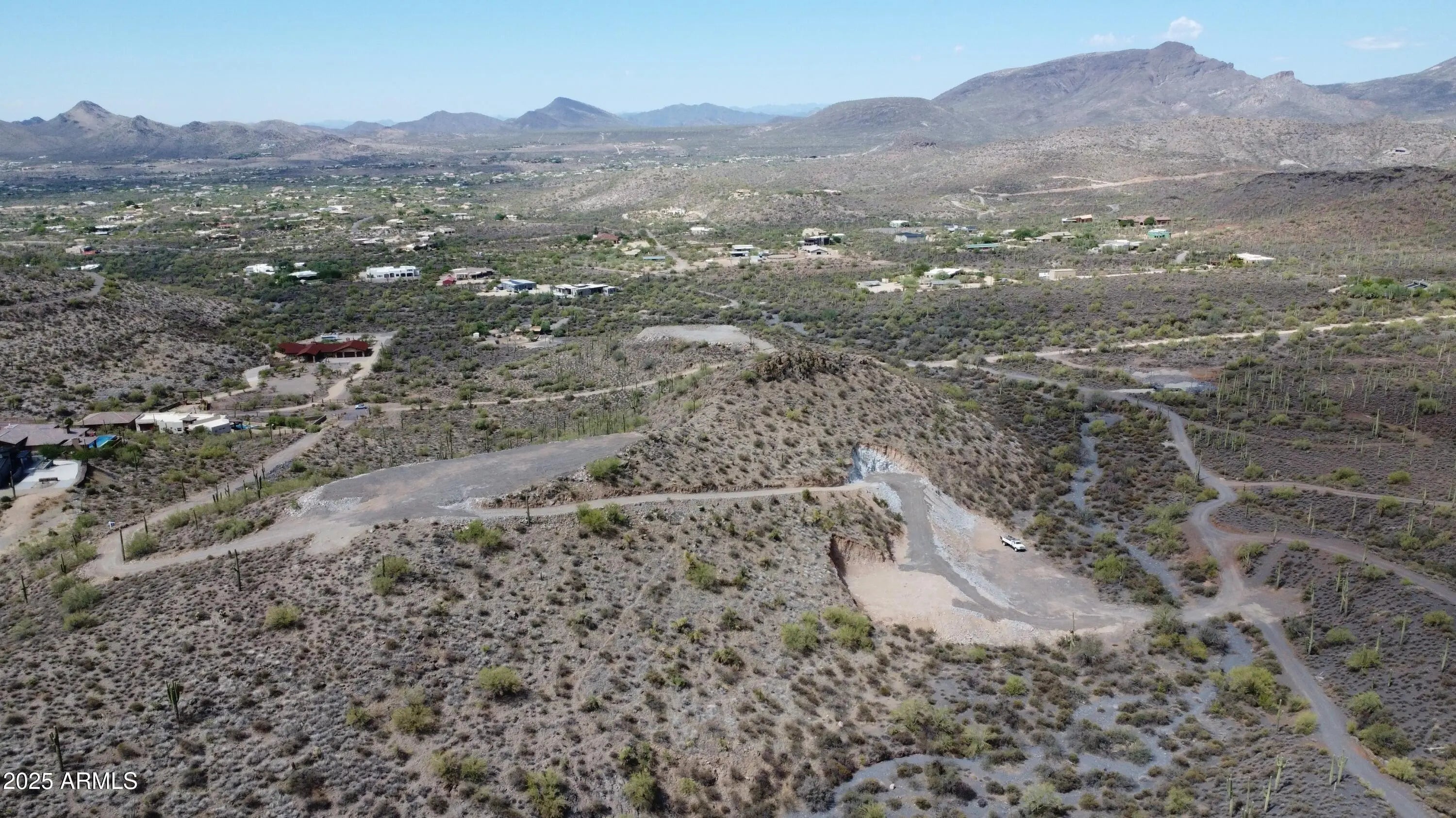 Perched atop a private mountain in North Cave Creek, this rare 5-acre custom home site offers unparalleled 360-degree views of Black Mountain, Elephant Butte, The Continentals, and twinkling city lights. Nestled among lush desert landscapes and towering saguaros, this exclusive homesite is prepped and ready for your dream home. A secondary pad is designed for a luxury horse barn or guest house. Site prep and roadwork are done, soil & engineering reports on file—step into a once-in-a-lifetime opportunity to craft a timeless hilltop estate with extreme privacy and breathtaking vistas in every direction.