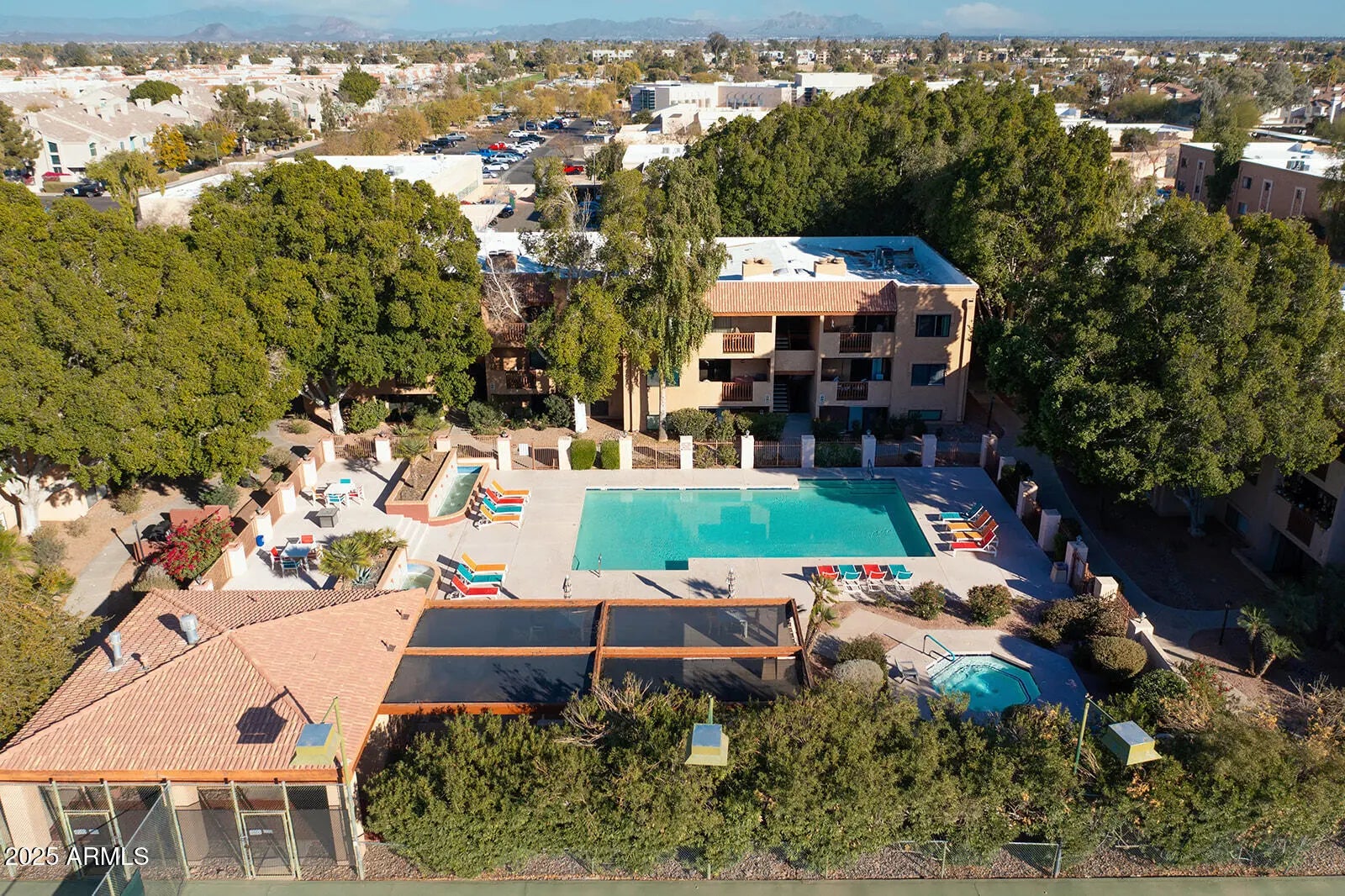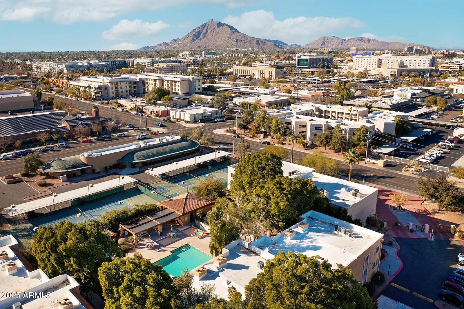 NO OTHER CONDO IN OLD TOWN OFFERS THESE SUNSET VIEWS! OFFERED TURN KEY! FULLY FURNISHED! MOVE IN READY! DISHES & EVERYTHING! EASY! ALL YOU NEED IS YOUR SWIMSUIT! SShhh, the best kept secret in Scottsdale is right here! An intimate privately gated community with only 200 residences. Offering a serene escape just moments from the vibrant heart of Old Town. UNIQUE to this special unit 261 is the exceptional location as it overlooks the sparkling heated pool, framed by tall palm trees, Camelback views & breathtaking Arizona sunsets. Imagine unwinding on your private balcony, a glass of wine in hand as you soak in the golden hues of the evening sky. The ambiance offers an unparalleled sense of peace while being just a short stroll away from world class dining, shopping & entertainment that make Old Town Scottsdale the Ultimate destination. Nestled among lush trees, winding pathways & calming water features, Center Court offers a resort like atmosphere while maintaining a quiet exclusive feel. Enjoy a variety of amenities, including a fitness center, tennis & pickleball courts, a full size basketball court, 2 pools, 2 hot tubs. This perfectly located unit has a sophisticated feel with a new sleek electric fireplace, 2 bedrooms, 2 bathrooms a walk in closet, great kitchen, all updated, 2 balconies, storage unit and conveniently on the 2nd floor. Come see this best kept secret! BEST VIEW IN CENTER COURT IS FROM THIS UNIT!