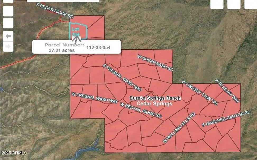 Property in the desired Cedar Springs section of Eureka Spring Ranch. First lot on the right as you enter into this subdivision is Lot 254, which is 37.21 acres and has an RV and Carport frame located on the East/South side of the property. The road is located on the top/north and right/east side of the property. The bottom/south side borders another lot, and the west/backside is entirely up against state land. Beautiful views to have every way you turn. There are some permanent and part-time residents in this area. Come build your getaway home or permanent home or just come to get away from it all and enjoy what is already here, which is shelter and tranquility.