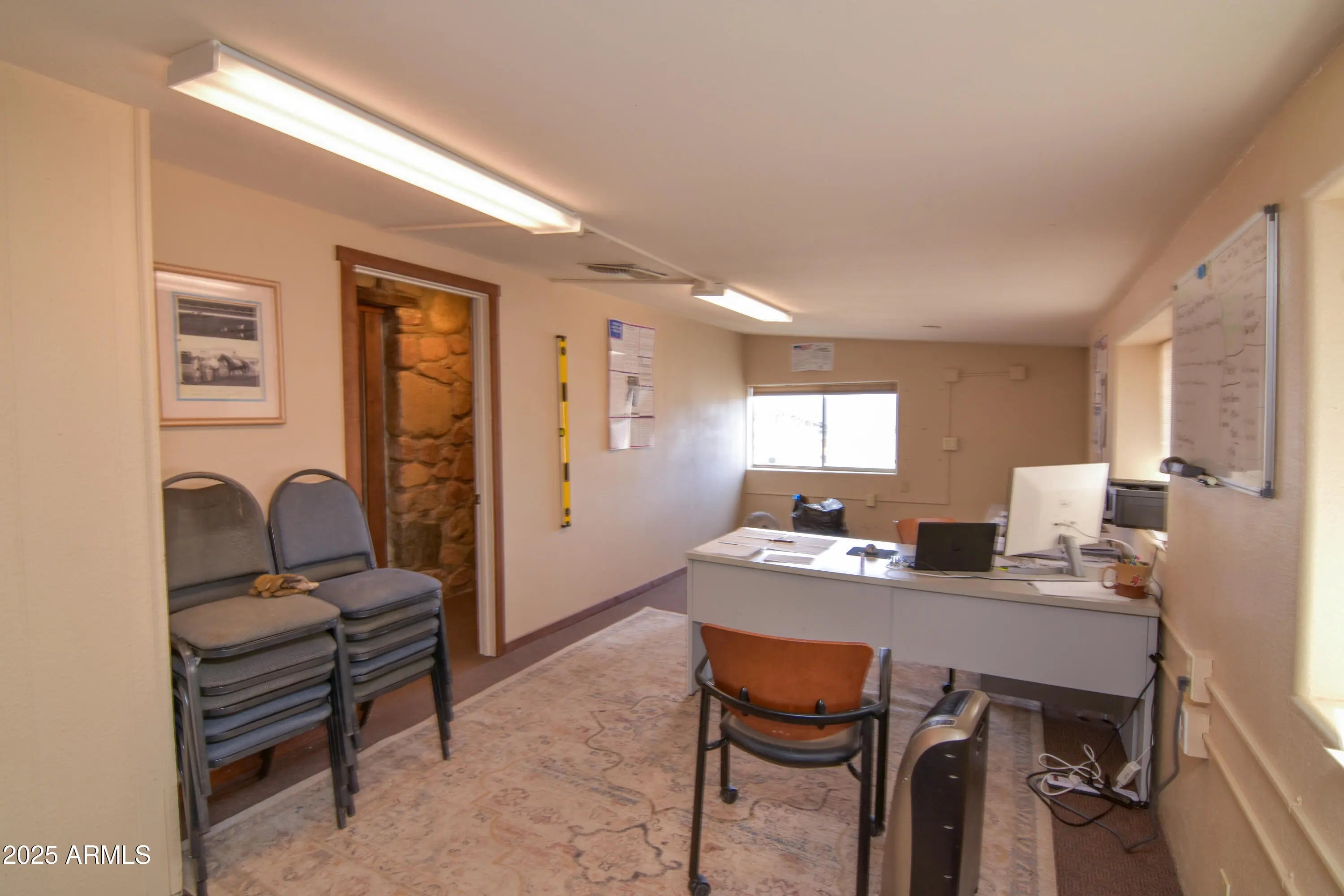 Looking for an office conveniently located on Highway 69 and 169 this is for you. This building includes a kitchenette, two private offices and a bathroom. The back of the property is fenced and is currently being leased.