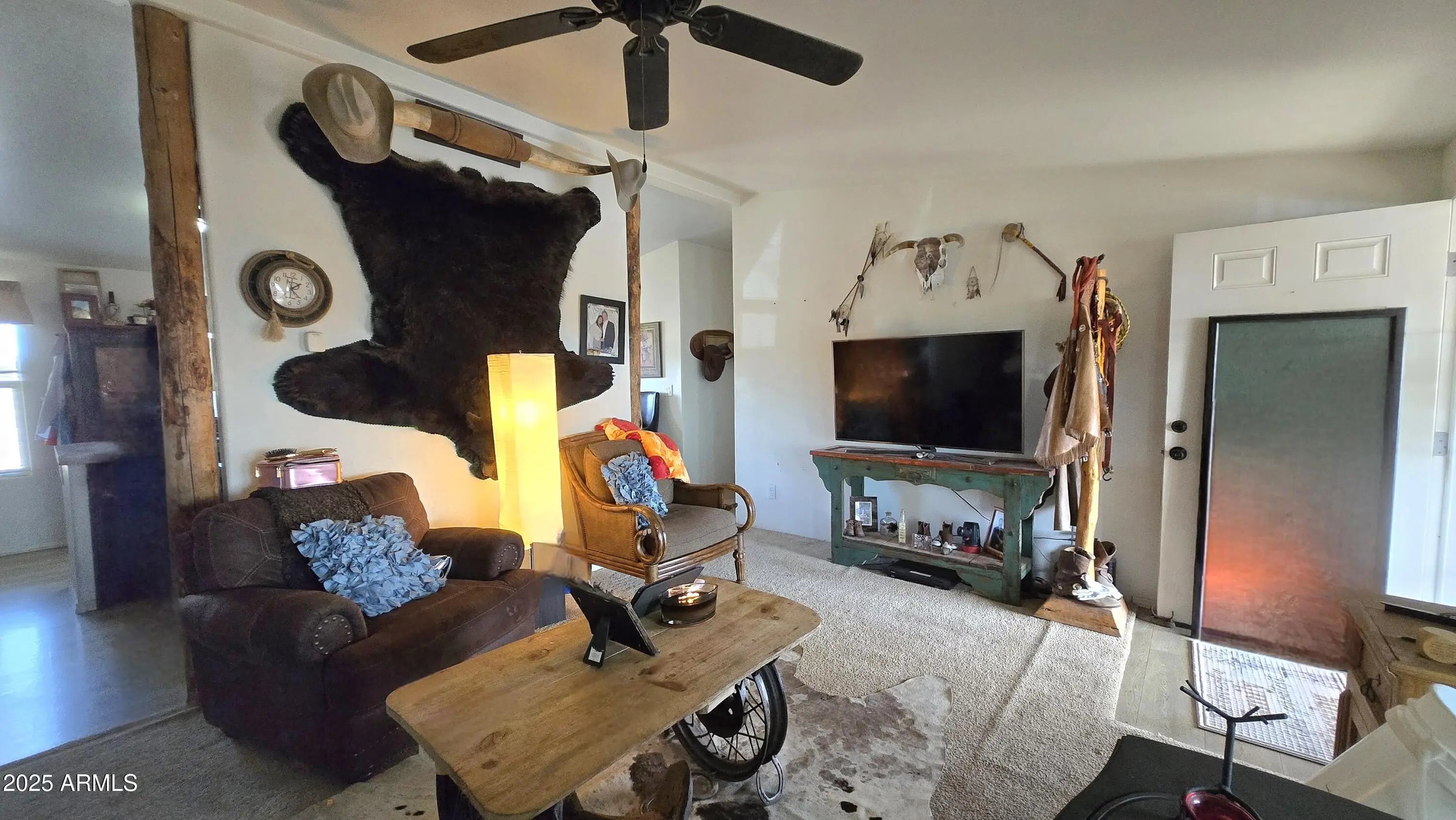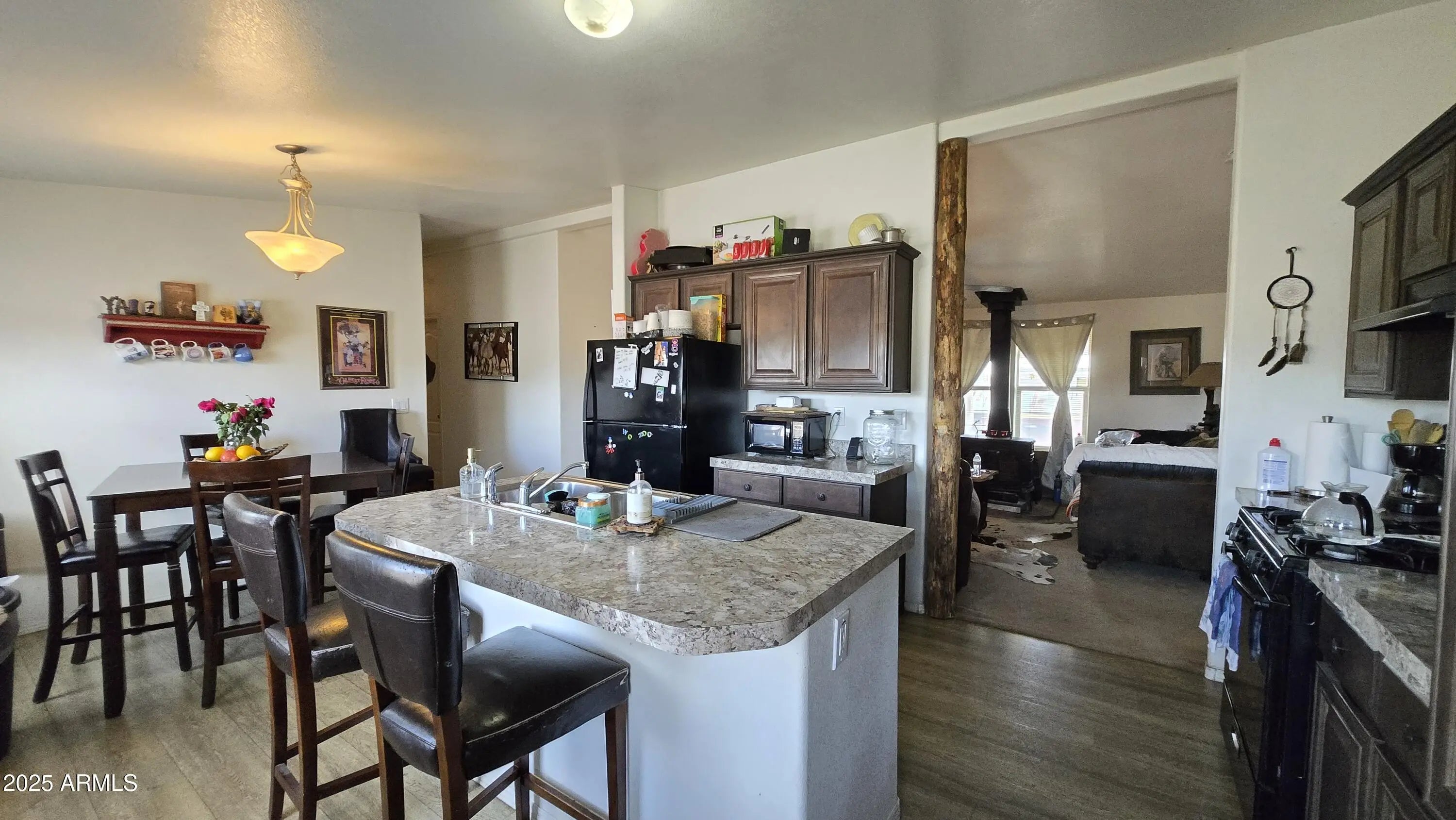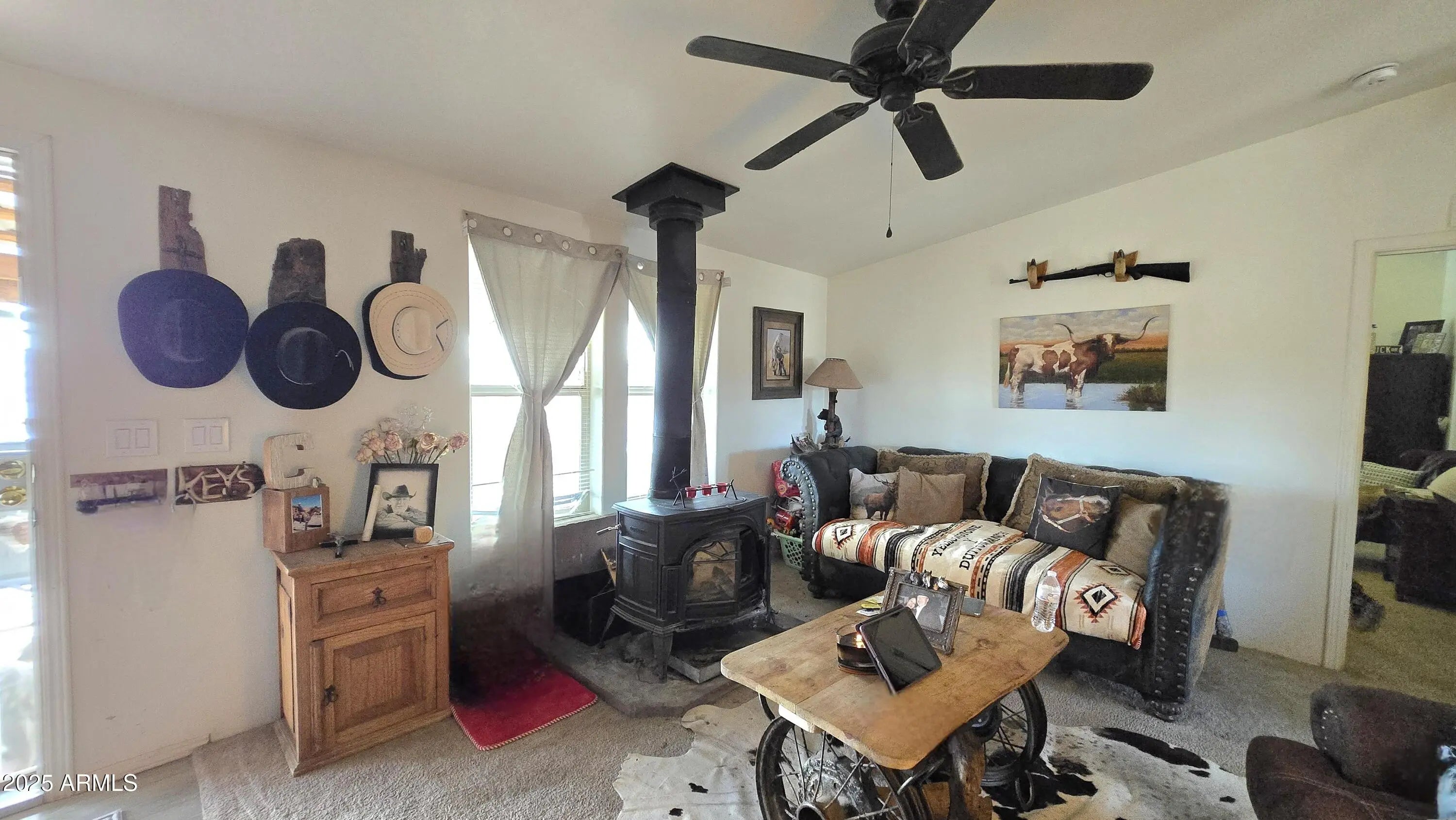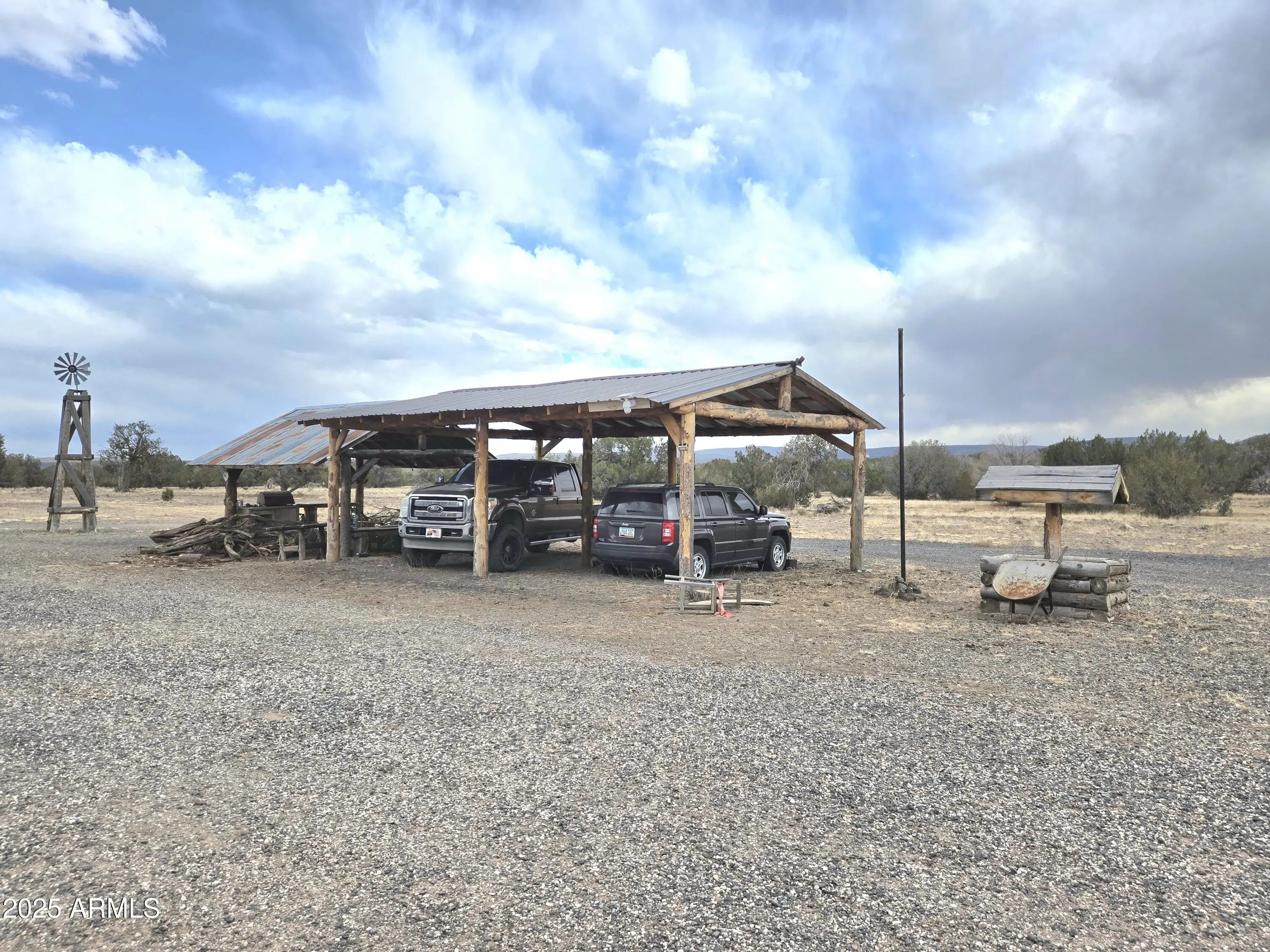 Escape to this stunning 40-Acre Ranch in Northern AZ, featuring a charming log cabin style on level land with huge potential. Enjoy clear blue skies, mountain views. With cool year-round weather, there's no need for AC! This 4-bedroom, 3-bath, has 2 Master Suites and includes OWNED solar panels, seller has no electric bill. Owner will to leave trailer to transport water to the property, hauled water. Bring your horses and toys and enjoy the freedom of no HOA. This turn-key property is ready for you—why wait?
