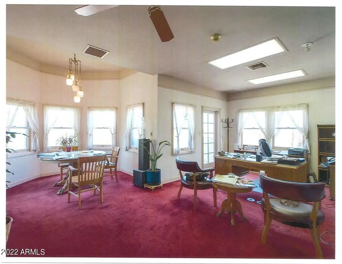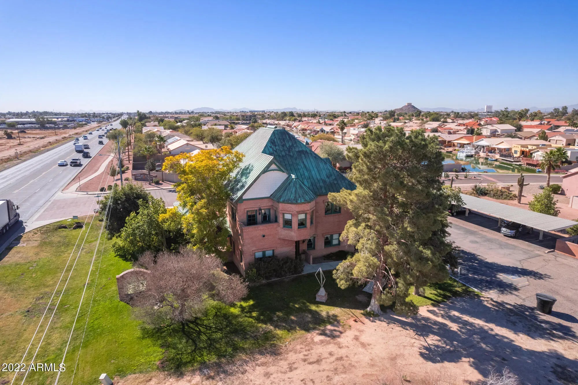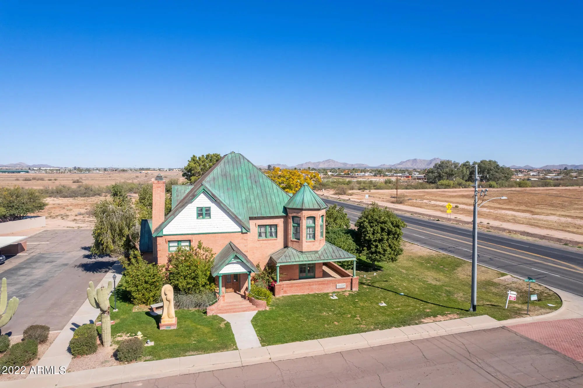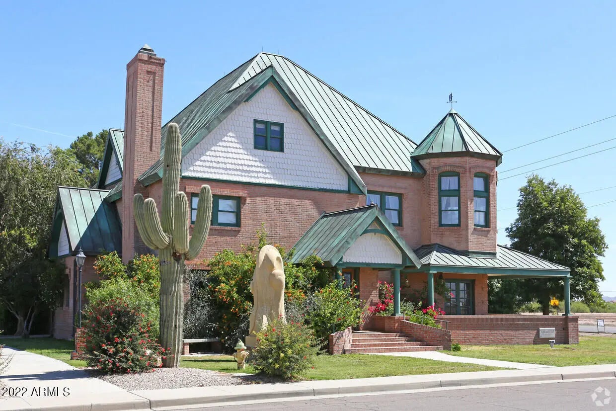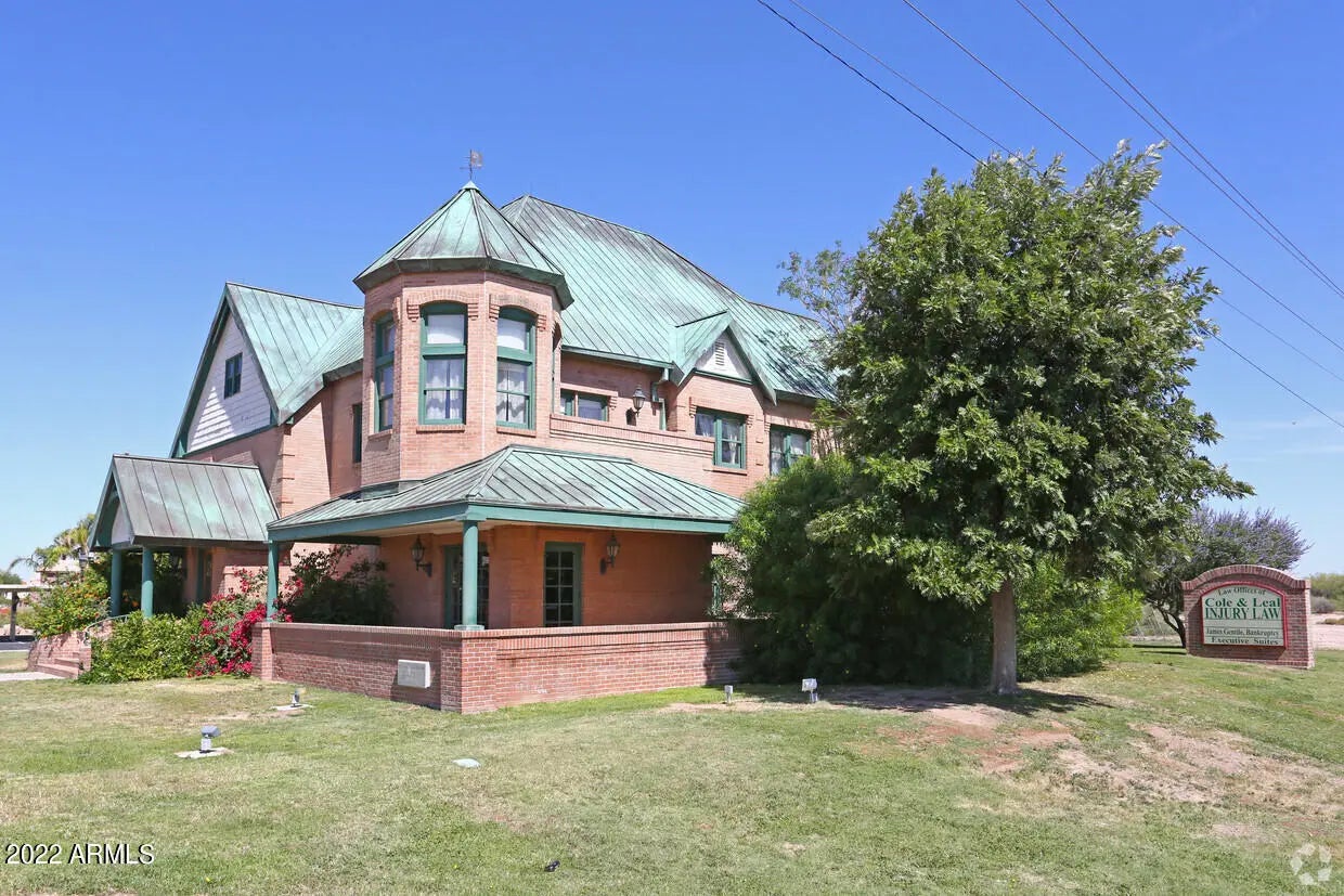 Versatility of PAD Zoning. Truly a trophy property. Craft level workmanship with designer quality fittings and decor. Mellow, efficient lighting throughout and quiet air conditioning. The property is on hard corner of the Casa Grande Lakes with appealing lakes and well kempt landscapes. Access is rapid and easy from any of the arterials and freeways. It's frontage, Pinal Ave, is the growing commerce area. Sale includes a preliminary plat for an additional 5,000sqft development. Present owner/occupant can stay for investor or move to allow owner-user. This property will bring your company attention and branding notice. Please see the video on You Tube ''Tom Cole Law Office''. The opulent 4,646sqft professional office, brick built, has the solidity of copper roof and drains, patios and porch The entry foyer and rotunda express confidence in style and makes a center point for the main and second floor. The wrap staircase leads to 4 offices, a conference room and the master office/balcony. The main floor has expansive library. Fluorescent lighting throughout with brass & crystal-like accent lights, porcelain and brass door fittings, 4 working offices, spaacious filing room, kitchen and reception/seating area. Full crown moldings, carved wood, upgrade furniture and furnishings, IT/phone/video monitoring all add to enticing commerce, quality employees and promotion of your business image. The full basement is block-finished for secure storage. This trophy property is in a value protected area, highly visible and easily accessed from all corridors. 2.75 additional adjoining land available for $500,000.