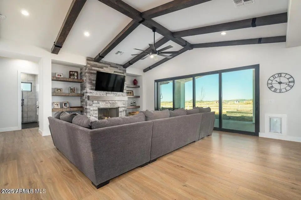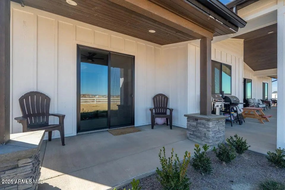 Exceptional new construction by Pinnacle Peak Custom Homes, a Coronado Custom Home Builder. This meticulously crafted residence spans an impressive 2,597 square feet, offering four bedrooms and three bathrooms where superior craftsmanship is evident in every detail. The architectural finesse begins with expertly cased windows, 8-foot solid two-panel doors and solid flooring throughout. The heart of the home features a gourmet kitchen adorned with a stunning 10-foot by 4-foot granite island, a full GE Profile appliances package, and custom Shaker cabinets with 42-inch uppers that provide abundant storage while maintaining aesthetic excellence. The primary bedroom serves as a private retreat, while additional bedrooms offer versatile spaces for family, guests, or home offices. See attached! The seamless indoor-outdoor living experience is enhanced by multiple sliding doors leading to an impressive 67-foot covered patio featuring a sophisticated tongue-and-groove ceiling. Car enthusiasts will appreciate the expansive 881-square-foot garage. This new construction will soon be ready to welcome those who appreciate the perfect harmony of luxury, functionality, and superior craftsmanship. The builder has a wide selection of options and additions which include: RV Garage - either matching the home or metal Beams in the living room, either faux or wood Shelving in living room on either side of the FP Extensive four-panel glass slider with three slides and one still in living room Coffee Bar with mini fridge and cabinets Laundry Sink Viking package in kitchen MB Shower Square Glass and Add bench seat Auto lights at entry Custom closet shelving Ceiling fans installed Additional can lighting Outside fire-pit