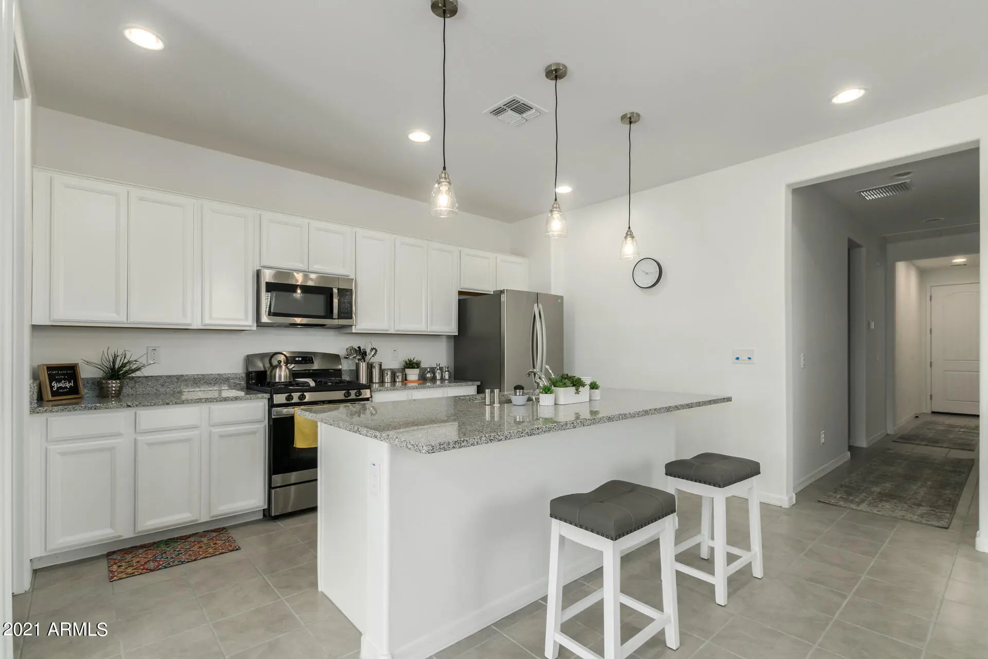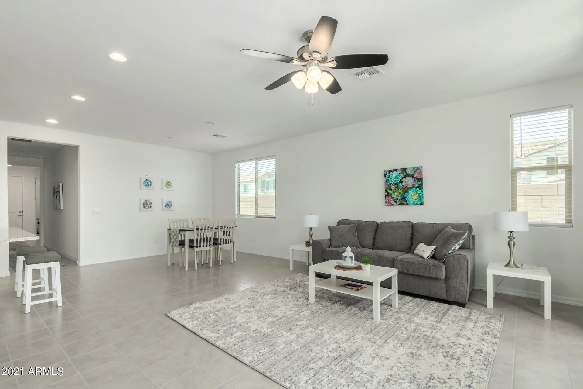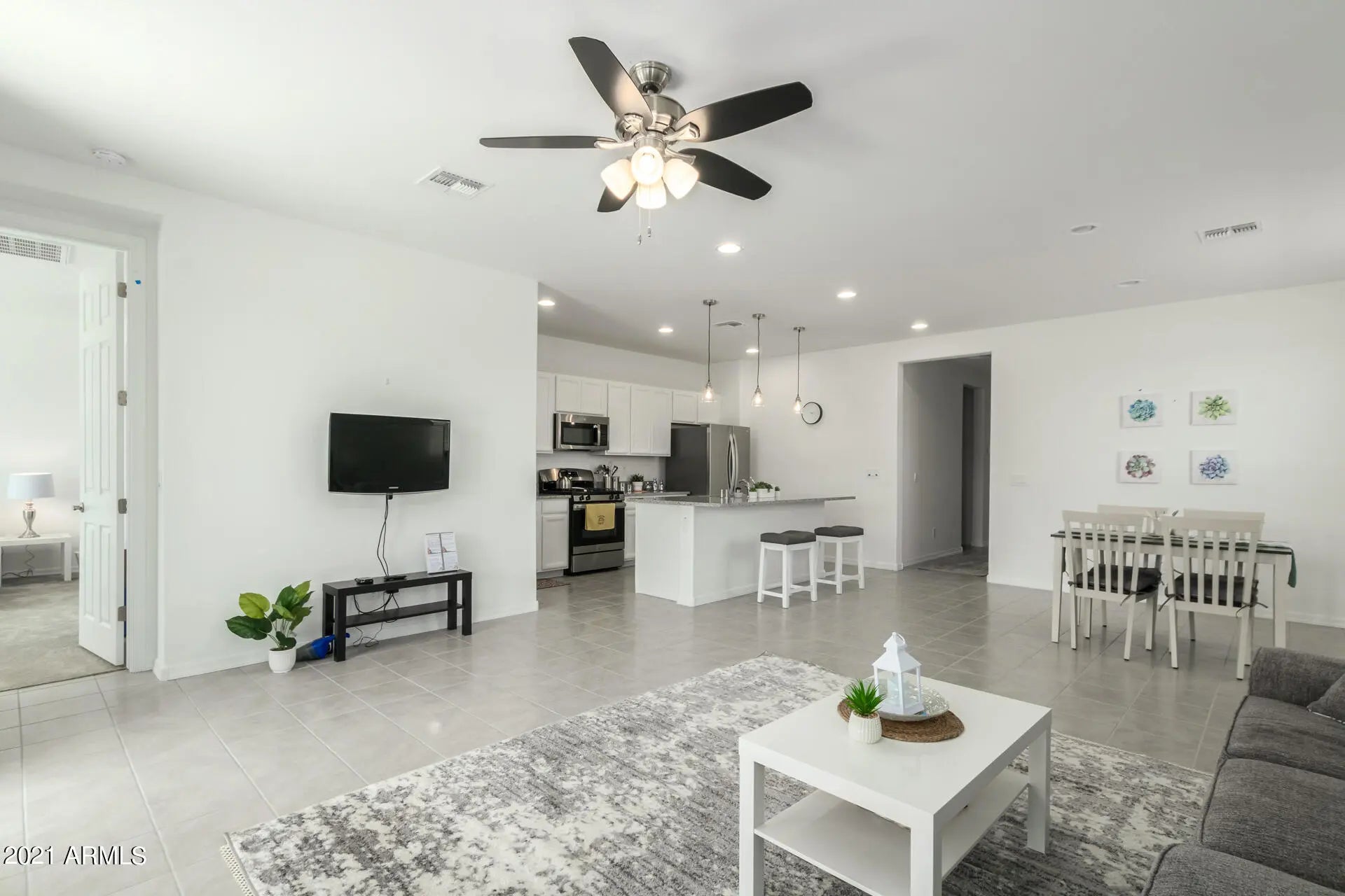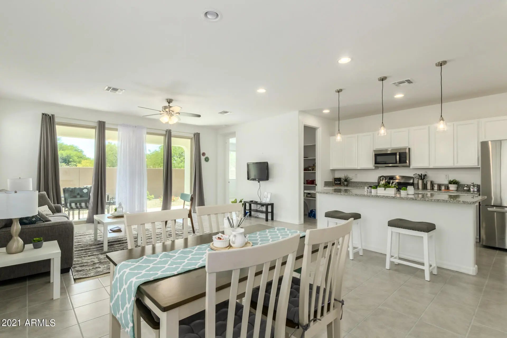 Beautiful furnished home awaits you here in desirable Gilbert! It offers a 1 car garage with a paver driveway and a low-maintenance fr Step inside this stunning single level to discover 4 beds, 2 baths, and a sought-after open concept floor plan you will surely love. The living room and din combo flow into the backyard. Lovely kitchen comes complete with granite counters, walk-in pantry, a roomy island, & sparkling appliances. Owner's sui ease and comfort with its own bath w/dual vanities, step-in shower, and walk-in closet. Second bedroom has a walk-in closet too. Bed for 4th bedrooms provided as needed. Washer/dryer in laundry room. Back yard has covered patio and a low-maintenance landscape .