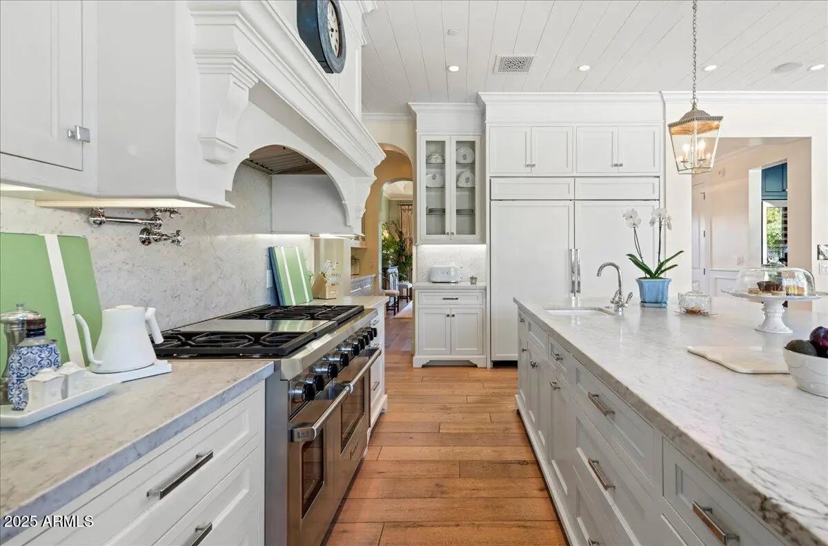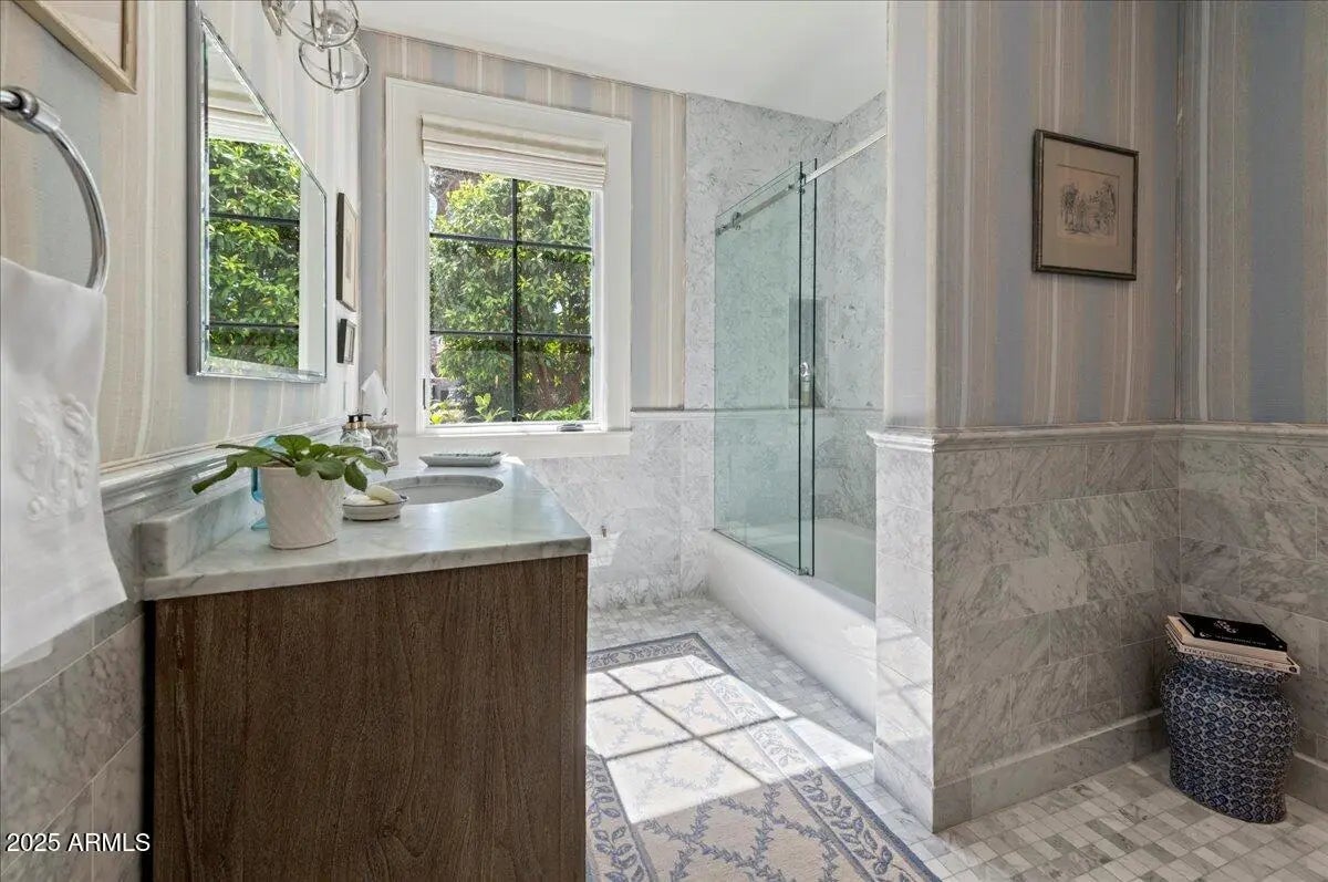 This exquisite estate is one most can only dream of owning. The timeless design is rich with character and offers a beautiful mix of traditional and fresh elements. The grandeur couples with comfort creating spaces that are as easy to envision quaint family celebrations as to imagine large scale social events. The top-of-the-line chef's kitchen is equipped with a huge island, farmhouse sink, Wolf and Subzero appliances and a butler's pantry with more room for storage and prep. The impressive formal and informal living spaces both have fireplaces, while retractable doors stretch across the entire great room seamlessly blending indoor and outdoor living, and the formal and informal dining rooms offer both elegance and warmth. In addition, there's a full restaurant style bar with temperature controlled wine storage ensuring you'll be stocked and ready for entertaining at a moment's notice. All the bedrooms are beautiful, and the primary suite is magnificent featuring a spacious seating area in front of a lovely fireplace, a spa like bath, its own washer and dryer in the huge closet, and mountain views from the veranda that are simply breathtaking. The private office will make working from home the preference and you can grab a workout before in the home gym. The meticulous grounds rival the beauty of the home featuring multiple patios, meandering walkways, a gorgeous pool, spa, built-in barbecue and a pickle ball court. Sitting on arguably the best stretch of Exeter Blvd with glorious mountain views, and surrounded by multi-million-dollar estates, this impeccable residence offers an unparalleled lifestyle and unique pride of ownership!