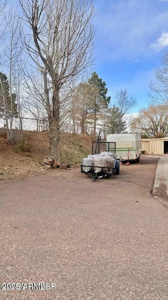 This impressive property is a must-see. Situated in the heart of Show Low, this 5-bedroom, 2-bathroom residence is a mere 5-minute drive from Show Low High School. The carefully designed window placement ensures picturesque views of the city in the HUGE Living room. For added convenience, the master bedroom is located on the ground floor. A pellet stove in the living room provides efficient warmth throughout the house on those cold snowy days. A separate building presents an exciting opportunity for custom finishing as a separate guest quarters. Spacious covered parking area is paired with generous open parking space for RVs. The backyard features a practical shed for storage and a charming chicken coop, making this property an ideal choice for your new home today