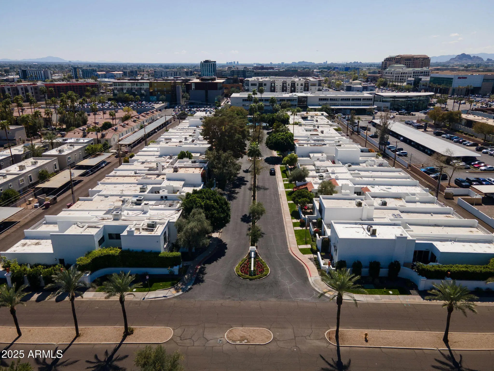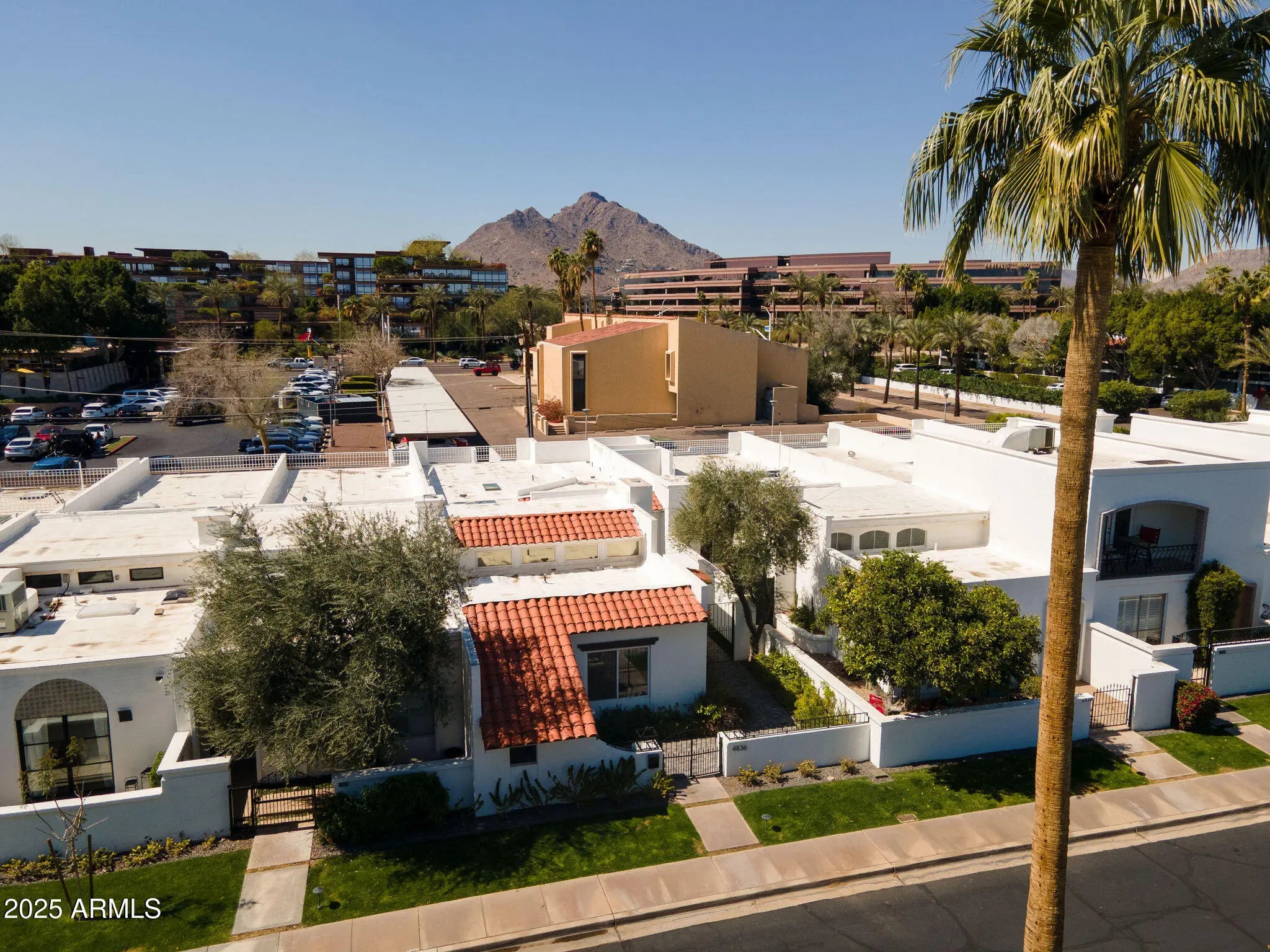 PRICED BELOW APPRAISED VALUE! Experience the ultimate elevated lifestyle in this exquisitely renovated, single-level 2-bedroom, 2.5-bath plus den townhome in the heart of Old Town Scottsdale. The open, light-filled interior is a haven of sophistication, featuring soaring ceilings with wood beams, a designer fireplace, and a seamless flow between living spaces. Culinary dreams come alive in the gourmet kitchen with waterfall quartz countertops and brand-new stainless steel appliances. The home offers unparalleled comfort with dual primary suites featuring luxurious ensuites, a dedicated office, and practical upgrades like an EV charging outlet. Enjoy your private courtyard oasis and a 2-car garage, all within walking distance or a short bike ride to Scottsdale's finest dining, shopping, and art galleries.