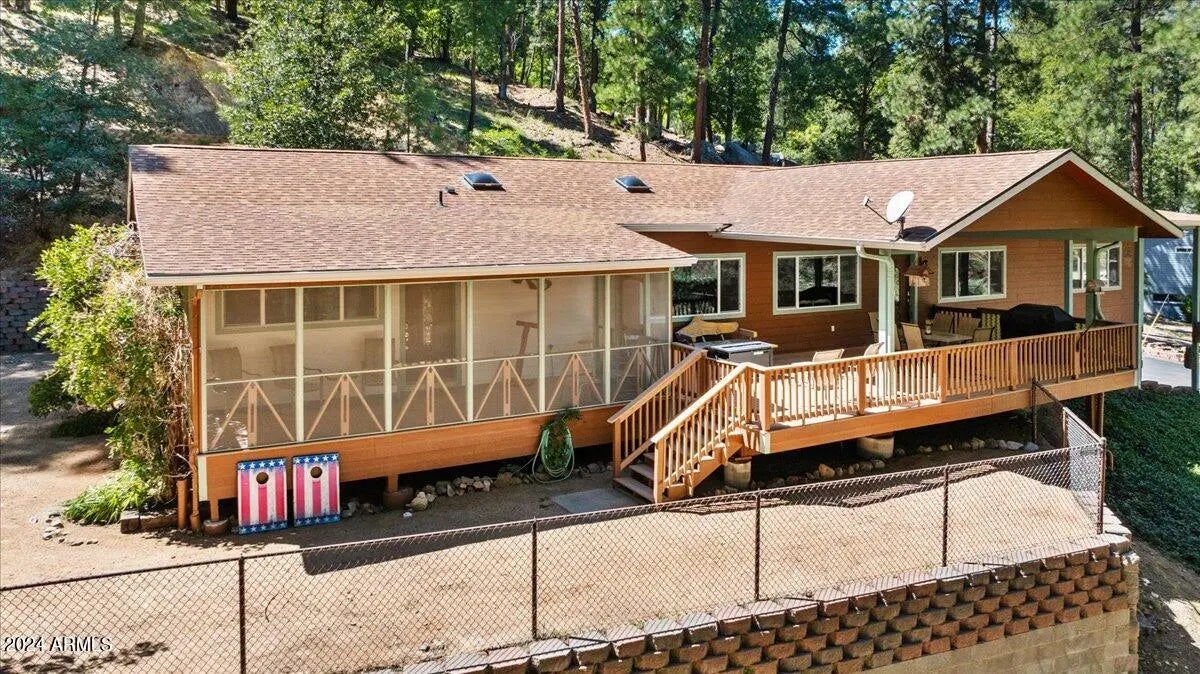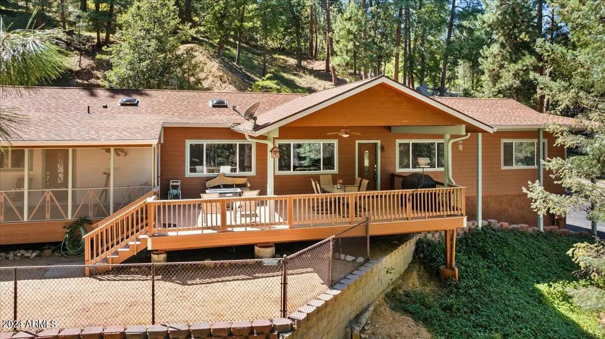 Surrounded by towering pines, this beautifully situated home offers exceptional privacy with the convenience of being just 20 minutes from downtown. Designed for comfort and flexibility, it's ideal as a primary residence, vacation retreat, or short-term rental. The open-concept floor plan features warm and inviting living areas, a functional kitchen, and large windows that bring the outdoors in with picturesque forest views. The expansive deck provides a perfect spot for outdoor dining or quiet moments immersed in nature. A peaceful escape in every season, this property is a rare opportunity for those seeking a private sanctuary with modern comforts.