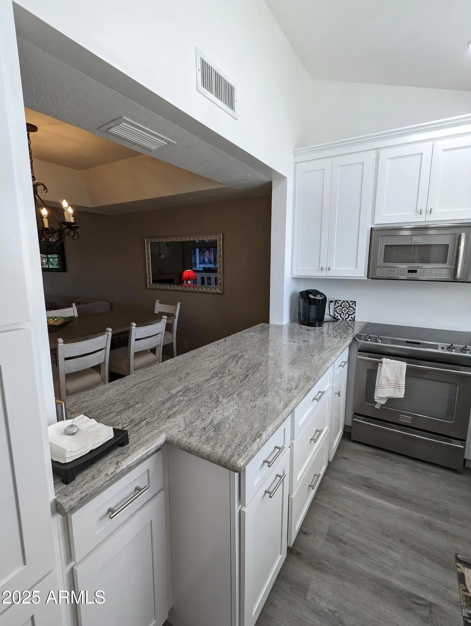 REMODELED Light & Bright condo with vaulted ceilings boasts NEW THROUGHOUT: flooring, counters, cabinets, sinks/hardware - AND an enlarged island pass-through and kitchen backsplash. Stainless-steel appliances, a gas grill, wine refrigerator, and fireplace offer the comforts of home while the tiled balcony is framed by views of Piestewa Peak to create an ideal backdrop for an extended getaway in the prestigious Arizona Biltmore. This 24-hour guard-gated Biltmore Courts community offers garage parking (1 private plus additional covered spaces), access to the heated community pool, spa, workout facility and tennis courts. Seasonal Rates: May-Nov: $2,695; Dec.-April: $3,295.