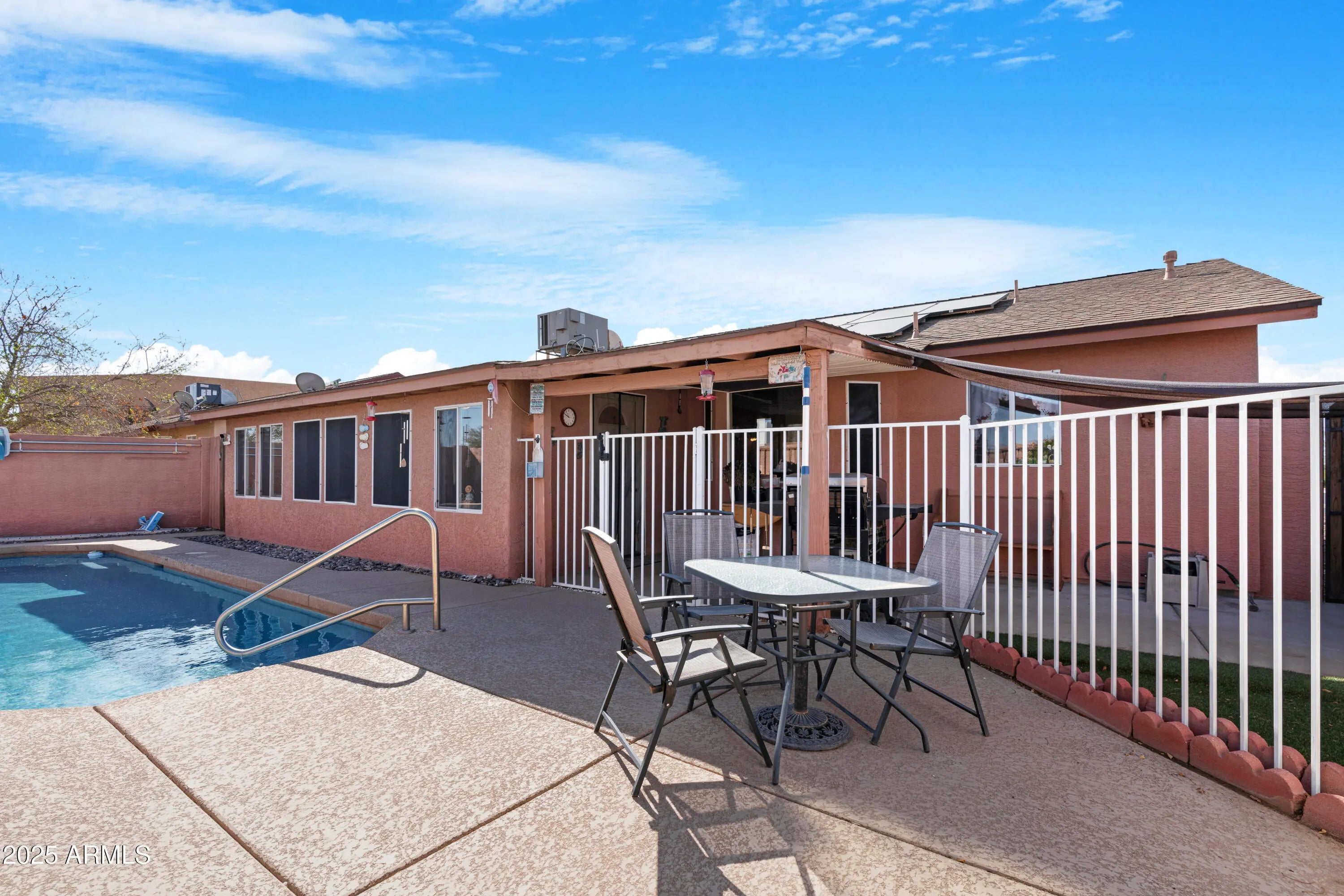 Welcome to this beautiful single-story home in the heart of Coolidge, offering 4 spacious bedrooms and 2 bathrooms. Situated on a quiet cul-de-sac lot, this property features an incredible pool, perfect for relaxing or entertaining. Inside, you'll find generous living space, including a bonus room that's fully enclosed for added versatility. The home comes with a fully paid-off solar system, ensuring incredibly low energy costs—under $200 annually! It's rare to find a system that delivers such outstanding value. Additional features include a water softener and stunning vaulted ceilings. Cozy up by the fireplace in the main living area, or unwind in the peaceful Arizona room, ideal for enjoying the serene surroundings. Don't miss out on this exceptional home!