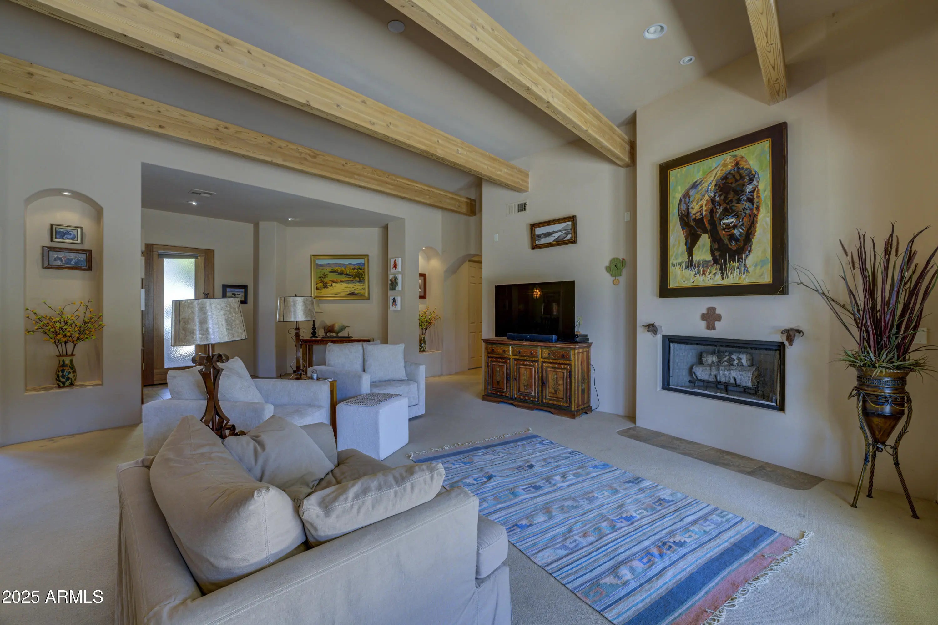 REMARKABLE VALUE | RECENT $100K PRICE IMPROVEMENT Discover the perfect balance of seclusion and sophistication. This custom, single-level residence in Carefree's exclusive Cow Track Estates offers a bright, semi-contemporary Southwest design on 4.36 private acres. The open-concept interior is bathed in natural light, featuring a chef's kitchen with panoramic desert views and a spacious primary retreat designed for relaxation. With no interior steps and a three-car garage, the home prioritizes effortless living. Bordered by multi-million-dollar estates, this property represents an unmatched opportunity to own a private desert sanctuary just 10 minutes from world-class dining and shopping.