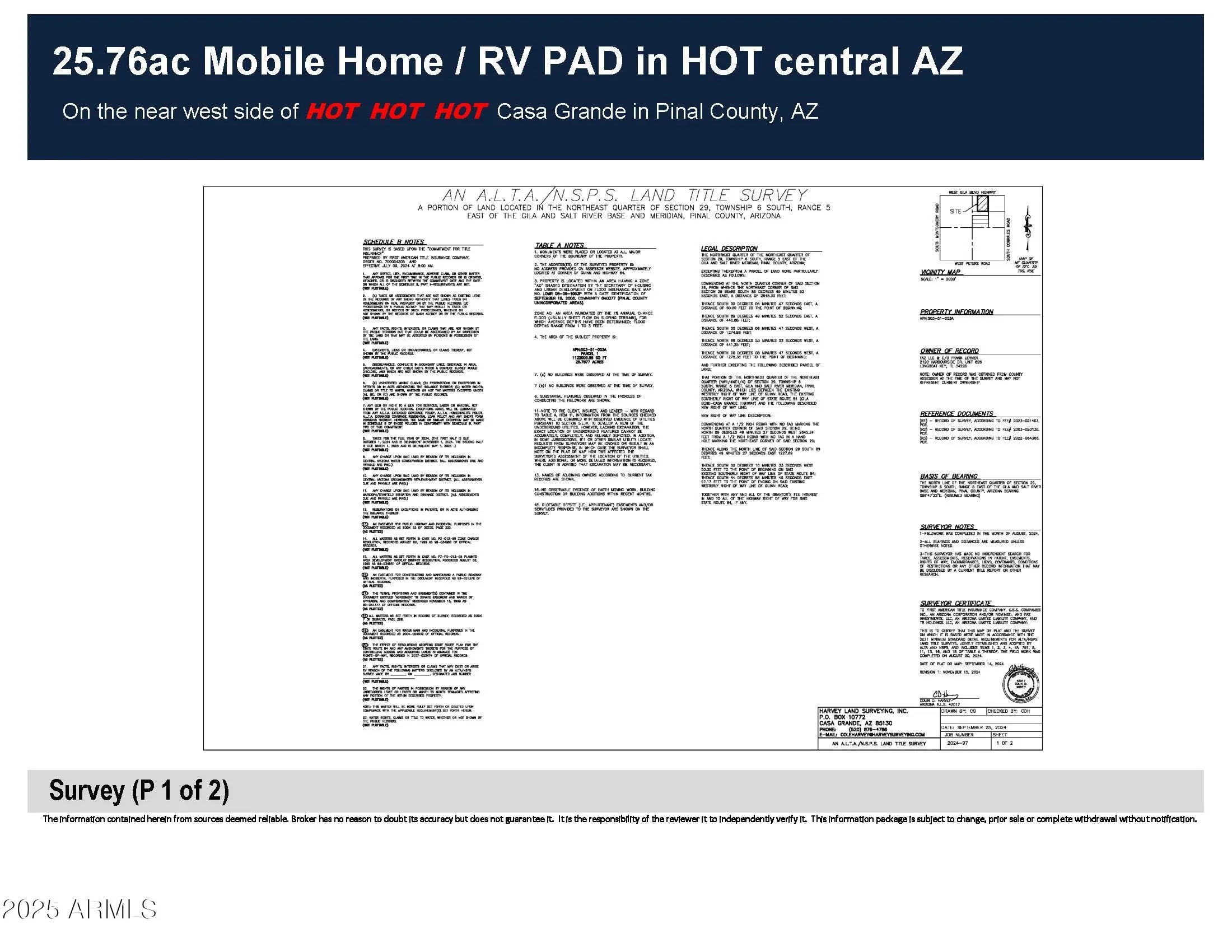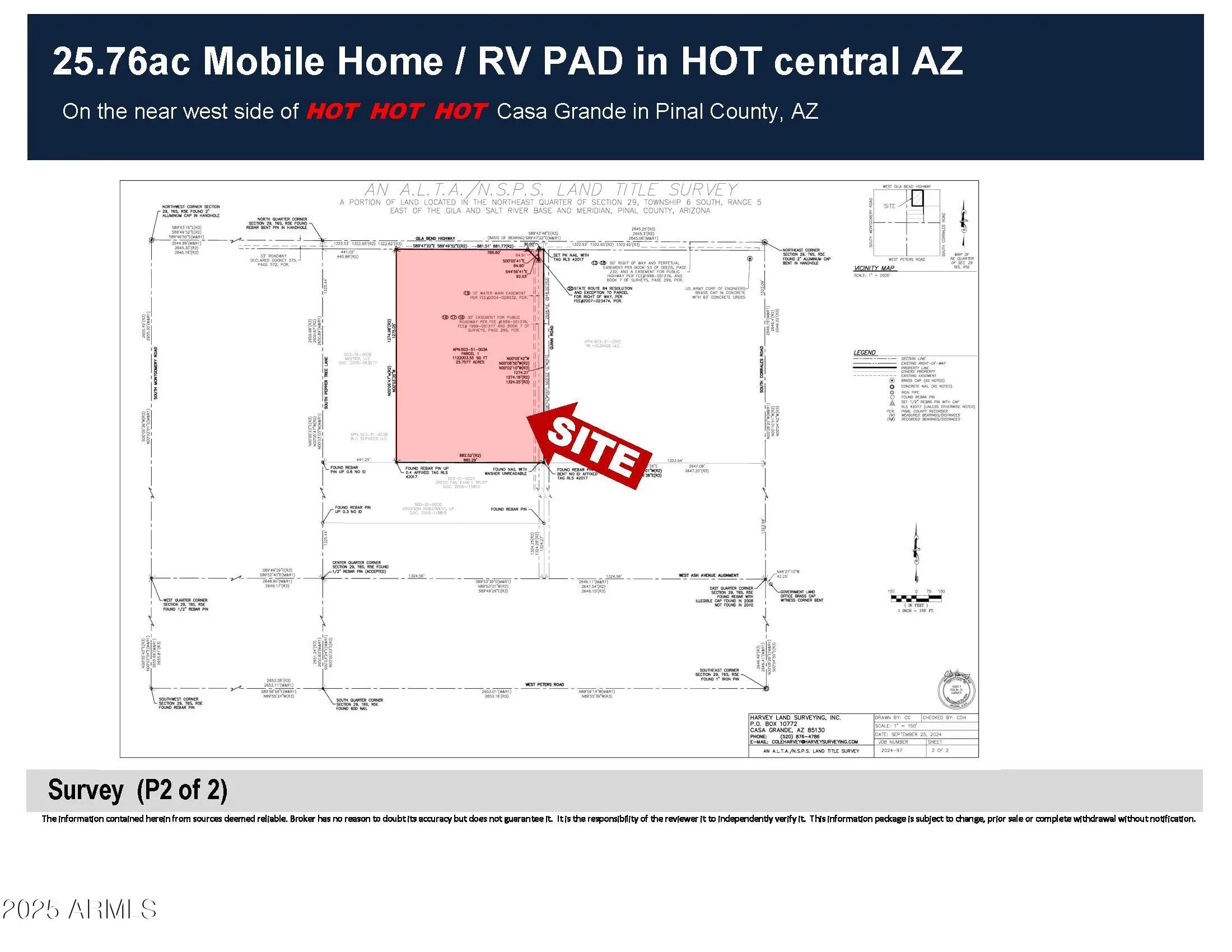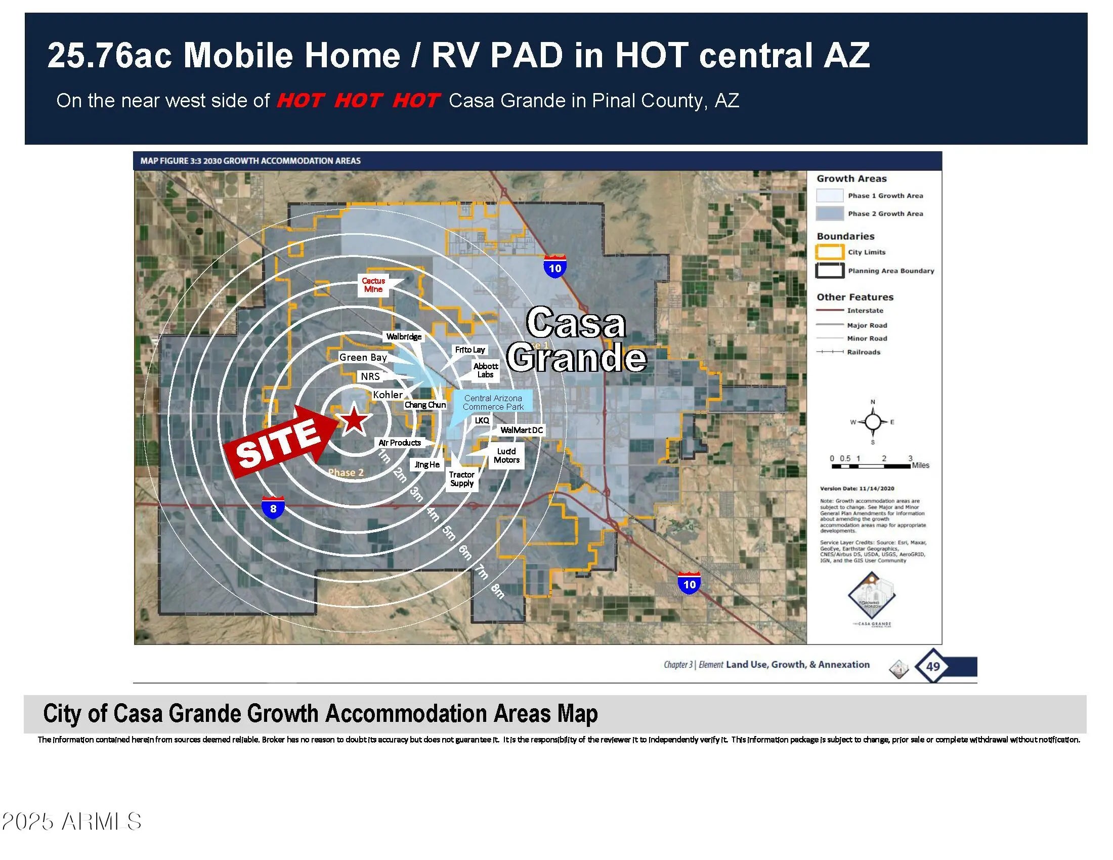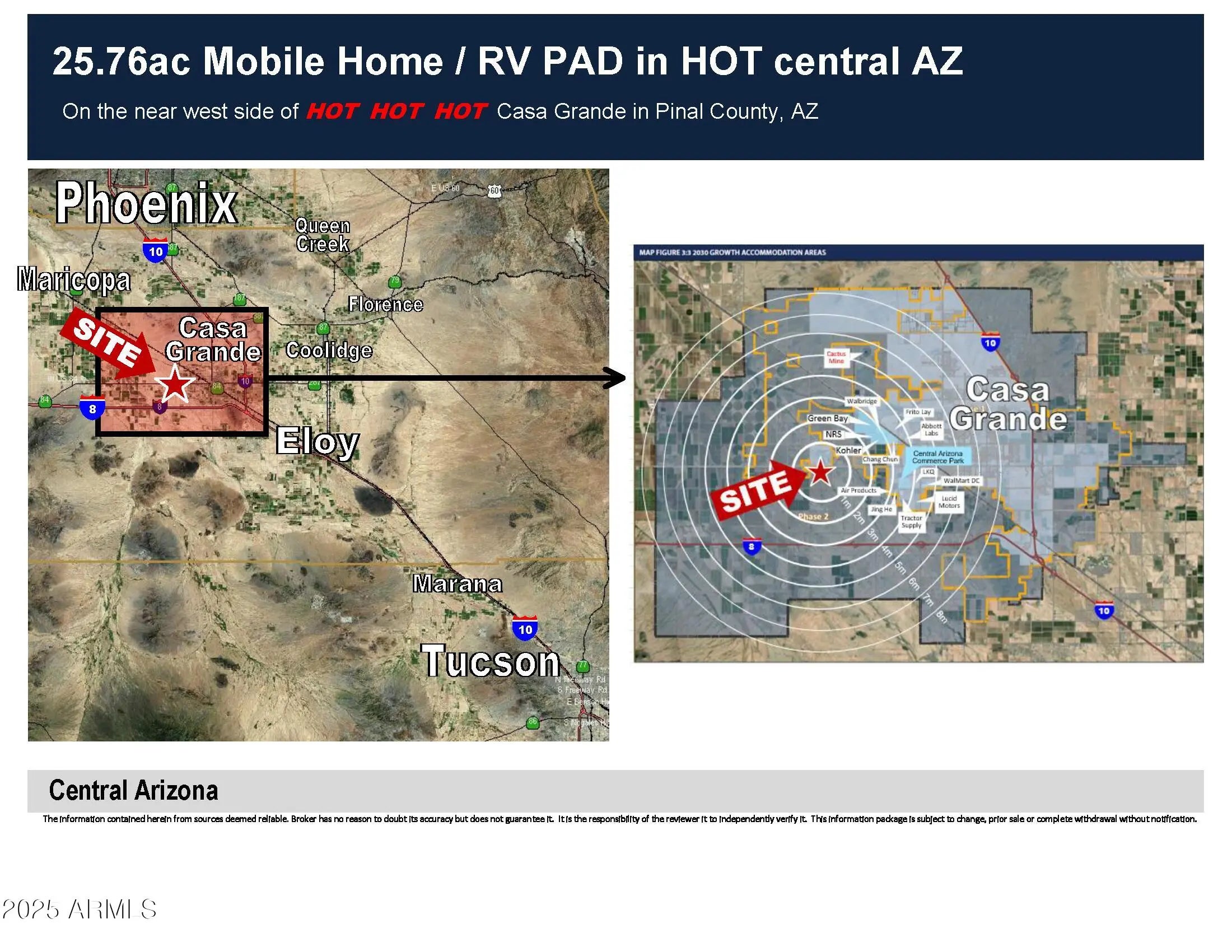 25.76ac Mobile Home / RV Land in HOT Central AZ Looking for a development parcel in the Path of Progress? This is it. Build your dreams on this parcel directly across AZ State Hwy 84 from the Francisco Grande Resort with frontage on two paved roads, power all around, a water main along the east boundary (Guinn Dr) and MH PAD zoning (Pinal County) ... what are you waiting for? MH park, RV, workforce housing, pick any combination and roll your own!