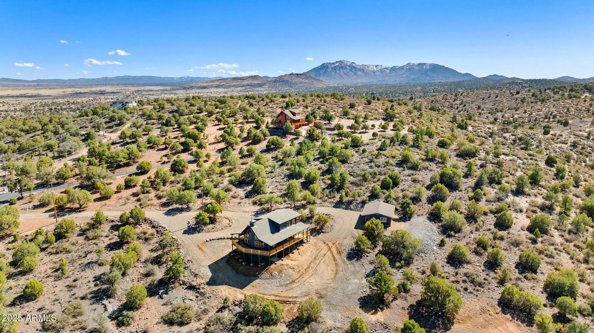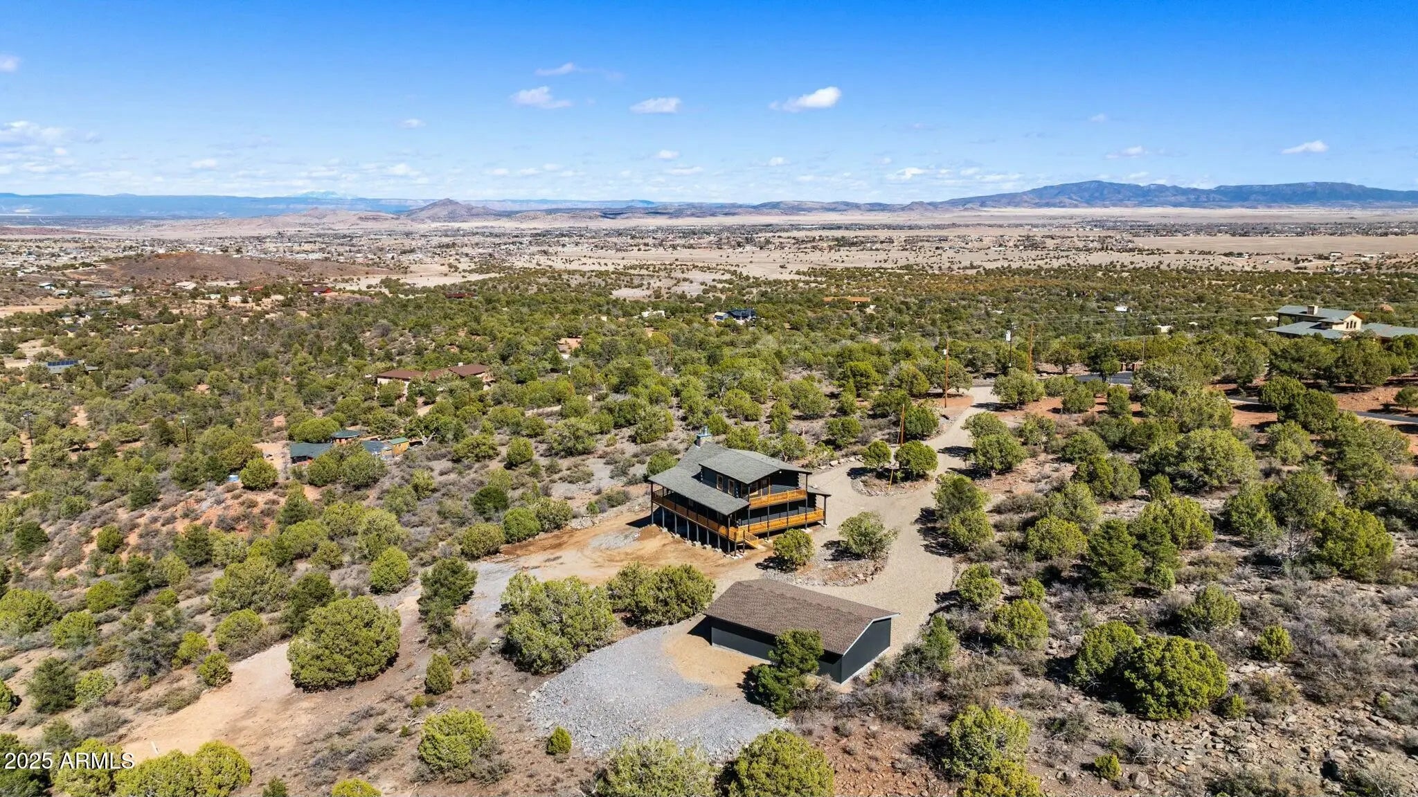 INSTANT EQUITY IN THIS HOME. House appraised for $863,00. This breathtaking new home offers expansive panoramic views and is nestled on approximately six acres of pristine land, providing both privacy and serenity. With horse privileges and a high-producing well, this property is a rare find for those seeking a perfect blend of luxury and country living. Designed with both elegance and functionality in mind, this three-level masterpiece features a stunning great room on the main level, complete with a floor-to-ceiling fireplace and expansive windows that bring the beauty of the outdoors in. The open-concept kitchen seamlessly flows into the great room, creating the perfect space for entertaining, with high-end finishes, ample counter space, and breathtaking views from every angle. Two guest bedrooms offer private access to the wraparound deck along with a guest bath and a convenient laundry room. The upper level boasts an open loft overlooking the great room, leading to a luxurious master suite with its own private deck, where you can wake up to stunning sunrises and unwind under the stars. Downstairs, the spacious lower level is designed for entertainment and versatility, featuring a large family, hobby, and game room, along with a fourth bedroom, additional bath, and a utility room for extra storage. A detached three-car garage provides ample space for vehicles and equipment, while a separate area for RV parking ensures plenty of room for all your recreational vehicles. The outdoor space is a blank canvas, ready for you to bring your vision to lifewhether it's equestrian facilities, a garden oasis, or an entertainer's paradise. Located in a quiet and peaceful setting between Williamson Valley and Chino Valley, this home offers the perfect balance of seclusion and convenience, just a short drive from shopping, dining, and outdoor adventures. Don't miss the chance to own this stunning retreat