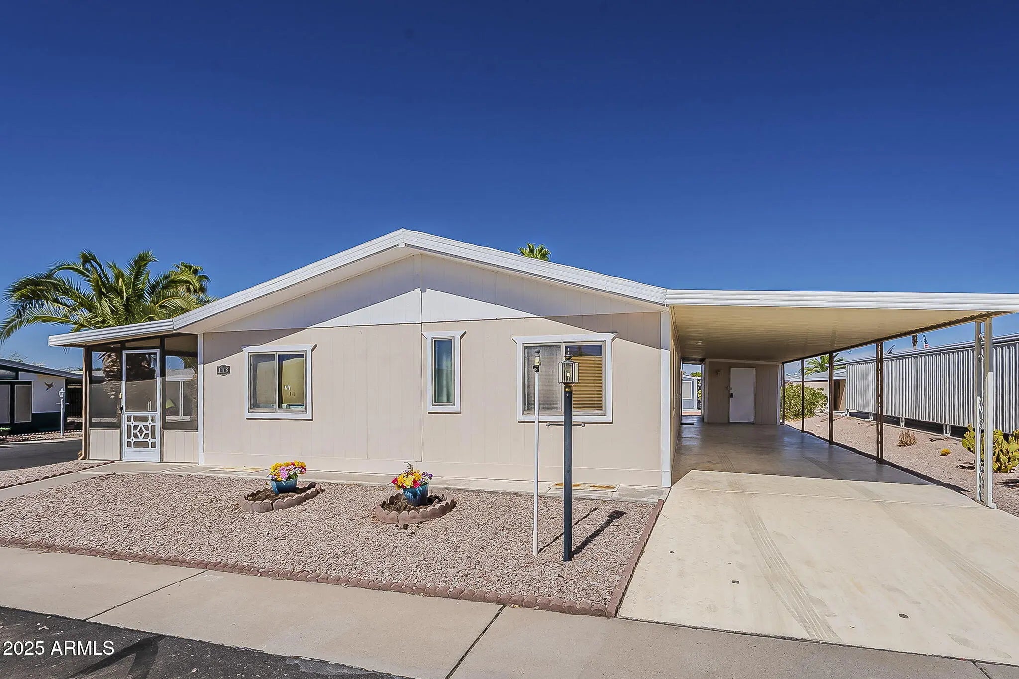 You really need to see this one! Rare 3BR 2BA ground set home with a beautiful front AZ room on a large corner lot. Lots of updates with a split open floor plan & vaulted ceilings. Your Kitchen has a newer Dishwasher, 3 door Whirlpool refrigerator, long breakfast bar and a plethora of cabinets. There's even room for a kitchen office. Inside the laundry room is your matching washer & dryer plus a large pantry. New Flooring, the water heater is only a yr old & the foam roof is 2 yrs with a 10 yr warranty. In the shed is another refrigerator Come & meet new friends at the pool,, exercise in the work out room, or enjoy a game of cards or pool at the clubhouse. The lifestyle is awesome in this 55+ community with so many activities. Just waiting for a new owner!