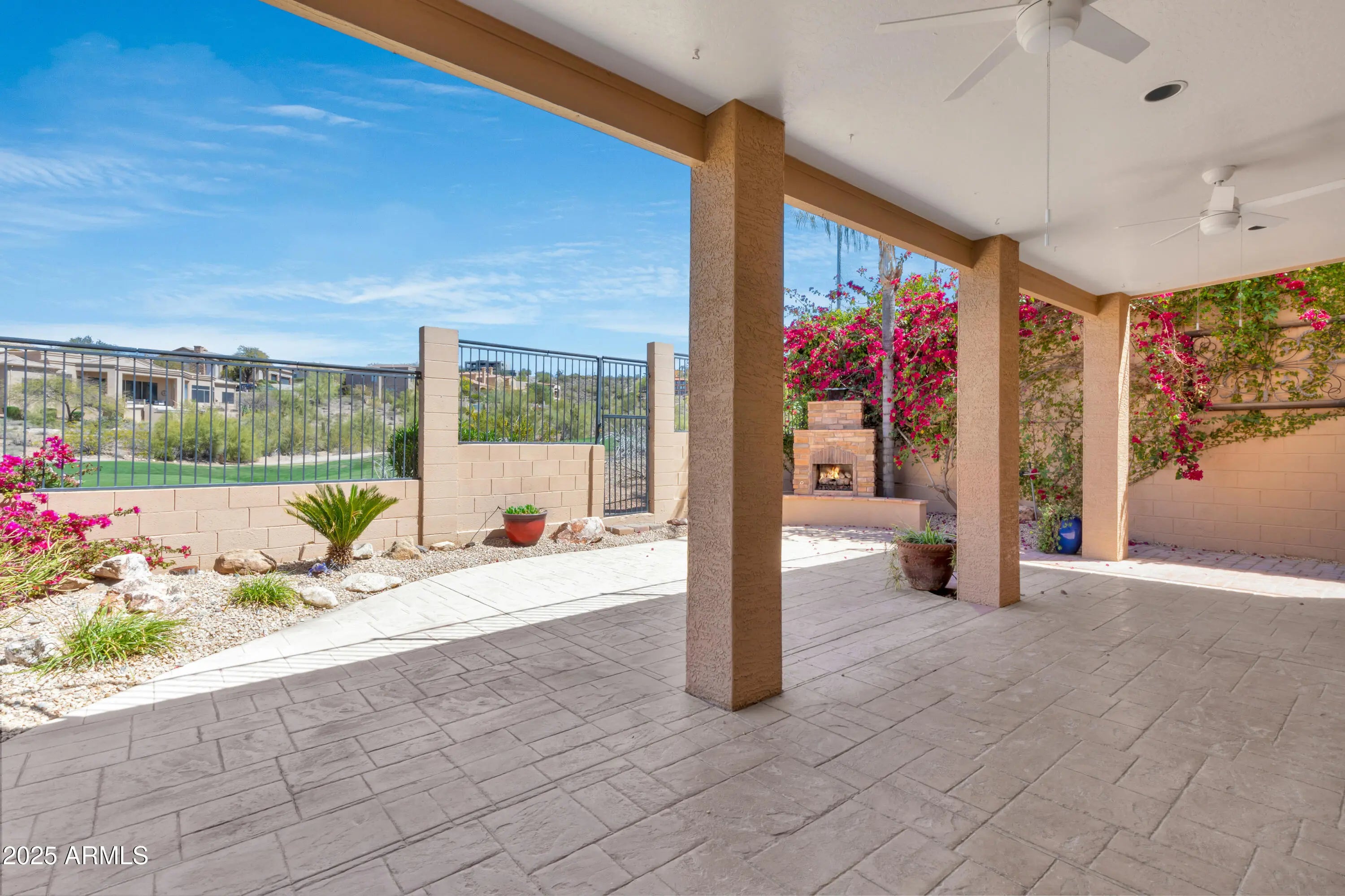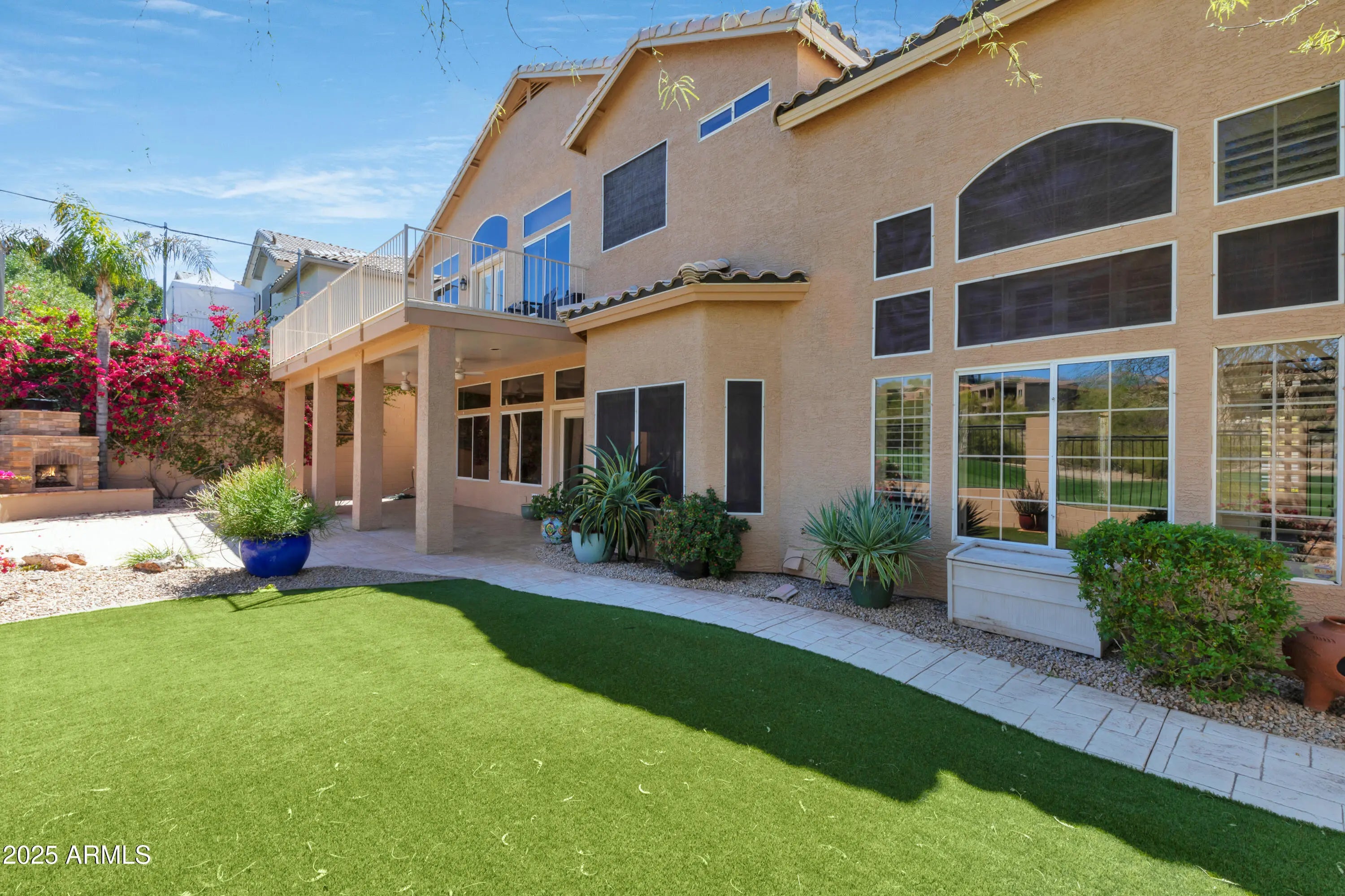 Perched in the heart of Moonridge Golf Estates, where breathtaking golf course and mountain views set the stage for this 5-bed, 3.5-bath, 4,057 sq. ft. retreat. Inside, soaring ceilings and an open floor plan create a bright, inviting space. The gourmet kitchen features stainless steel appliances, granite countertops, and a spacious layout perfect for family gatherings. The living room, anchored by a cozy built-in fireplace, flows seamlessly into the formal dining area. Each bedroom offers walk-in closets, while the primary suite boasts a private balcony with stunning views. Step outside to your backyard oasis, complete with a built-in fireplaceâ€''ideal for relaxing under the Arizona sky. A 4-car garage provides ample storage. Located in a sought-after golf course community.