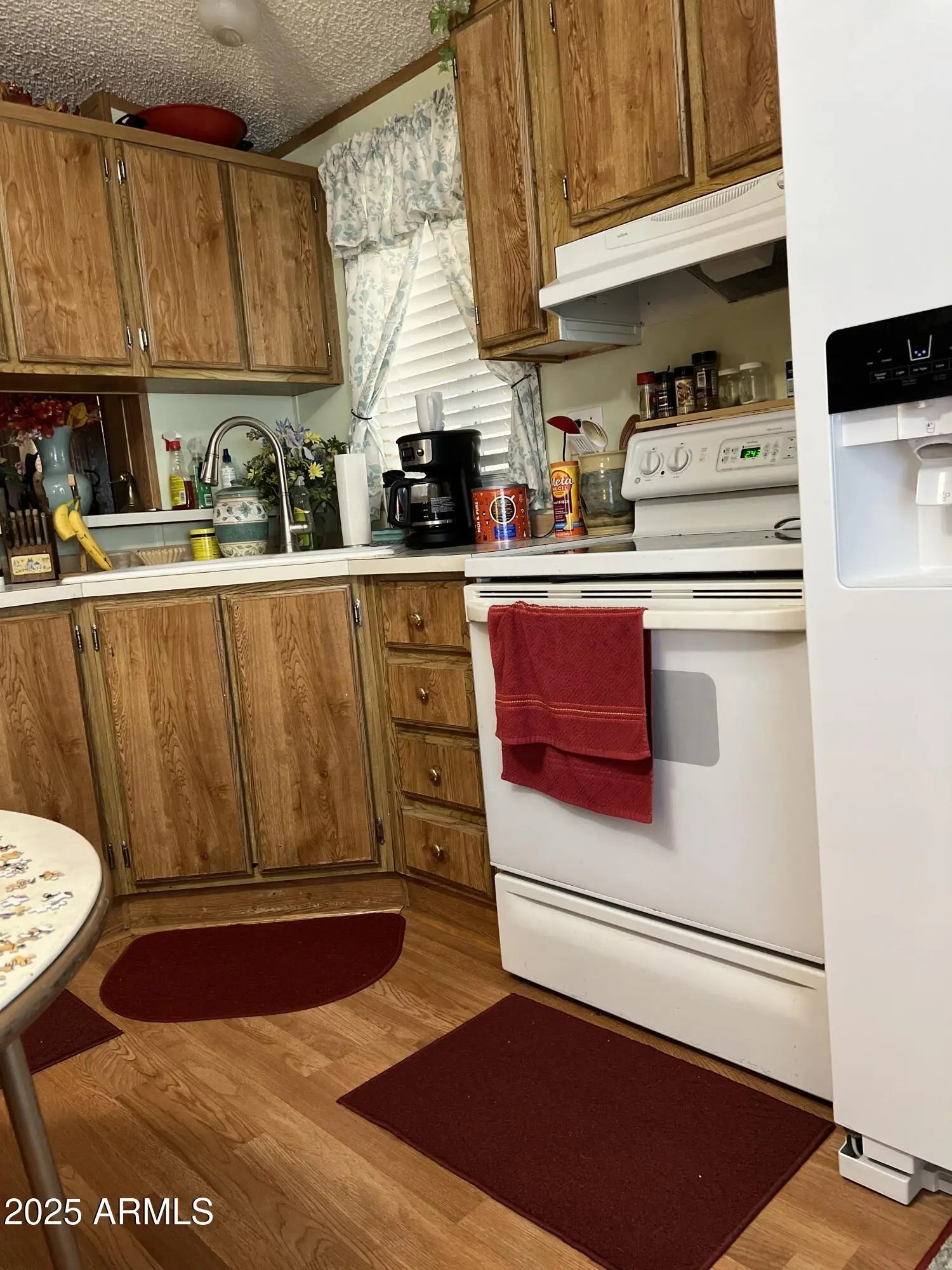 Winter Visitor's Delight—Lovingly Updated & Move-In Ready! This cozy 1993 Palm Harbor With 2 bedrooms and 1 bath, has been beautifully refreshed in 2020—featuring a new roof, renovated bathroom, updated flooring, dual pane windows, fresh interior paint, and a welcoming front deck. The bright eat-in kitchen offers stunning mountain views, while the spacious living room provides a relaxing retreat after a day in the sun. Both bedrooms are generously sized for comfort and flexibility. Whether you're here for the season or longer, this well-maintained home is ready for you to enjoy Arizona living at its best.