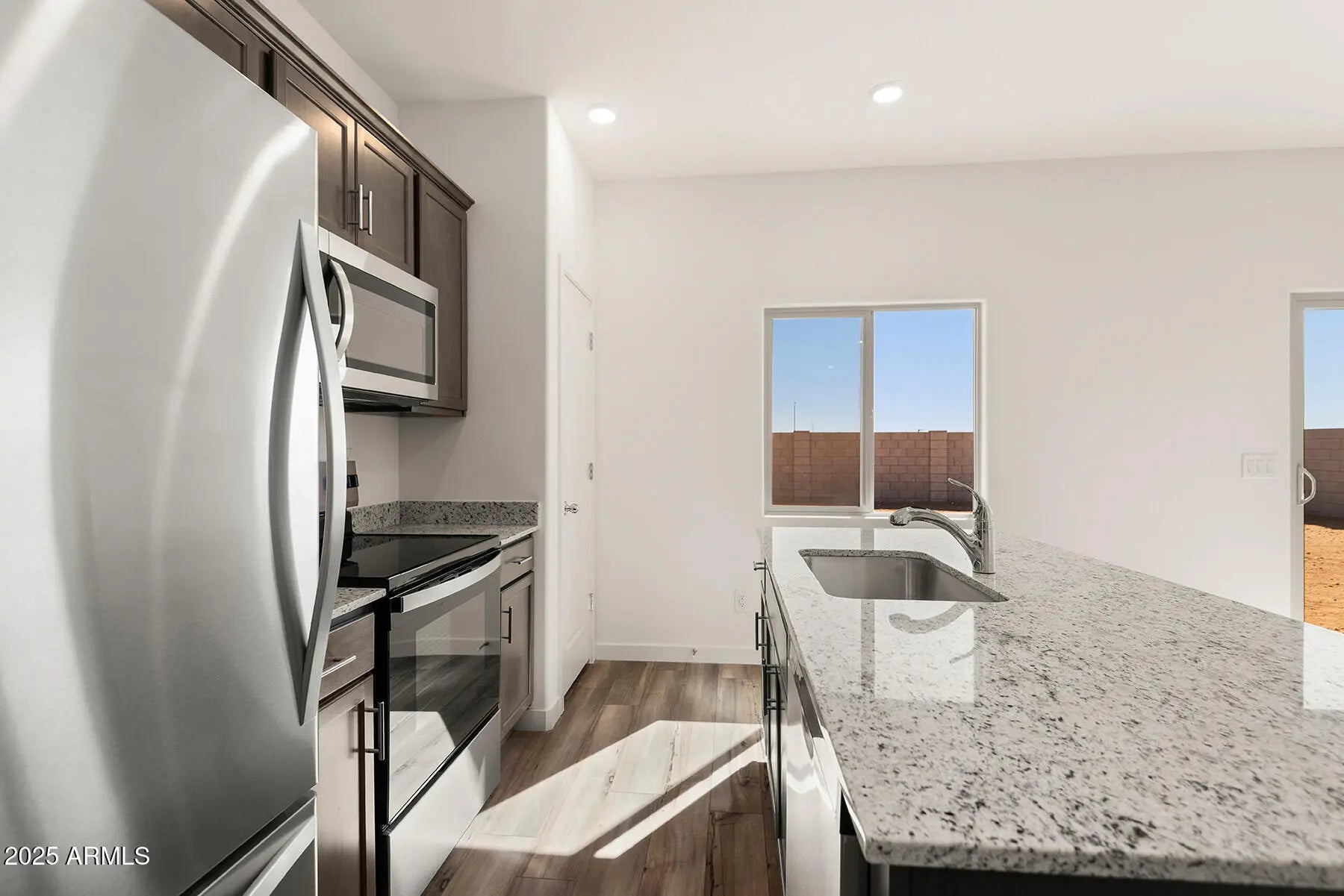 Built with comfort and efficiency in mind, the Amado plan features three bedrooms, two bathrooms, a two-car garage, along with an open-concept layout. This is a sought-after split floorplan complete with master suite, walk-in shower, and walk-in closet. With upgrades included, you are getting stainless steel appliances INCLUDING a fridge, granite countertops in kitchen and bathrooms, and gutters on the exterior of your home! There are NO neighbors behind you, so you can enjoy a large backyard with perfect views of mountains and the sunset. Ghost Hollow Estates is located far enough out to be the quiet neighborhood you desire but is also located only 1 mile away from the I-10.