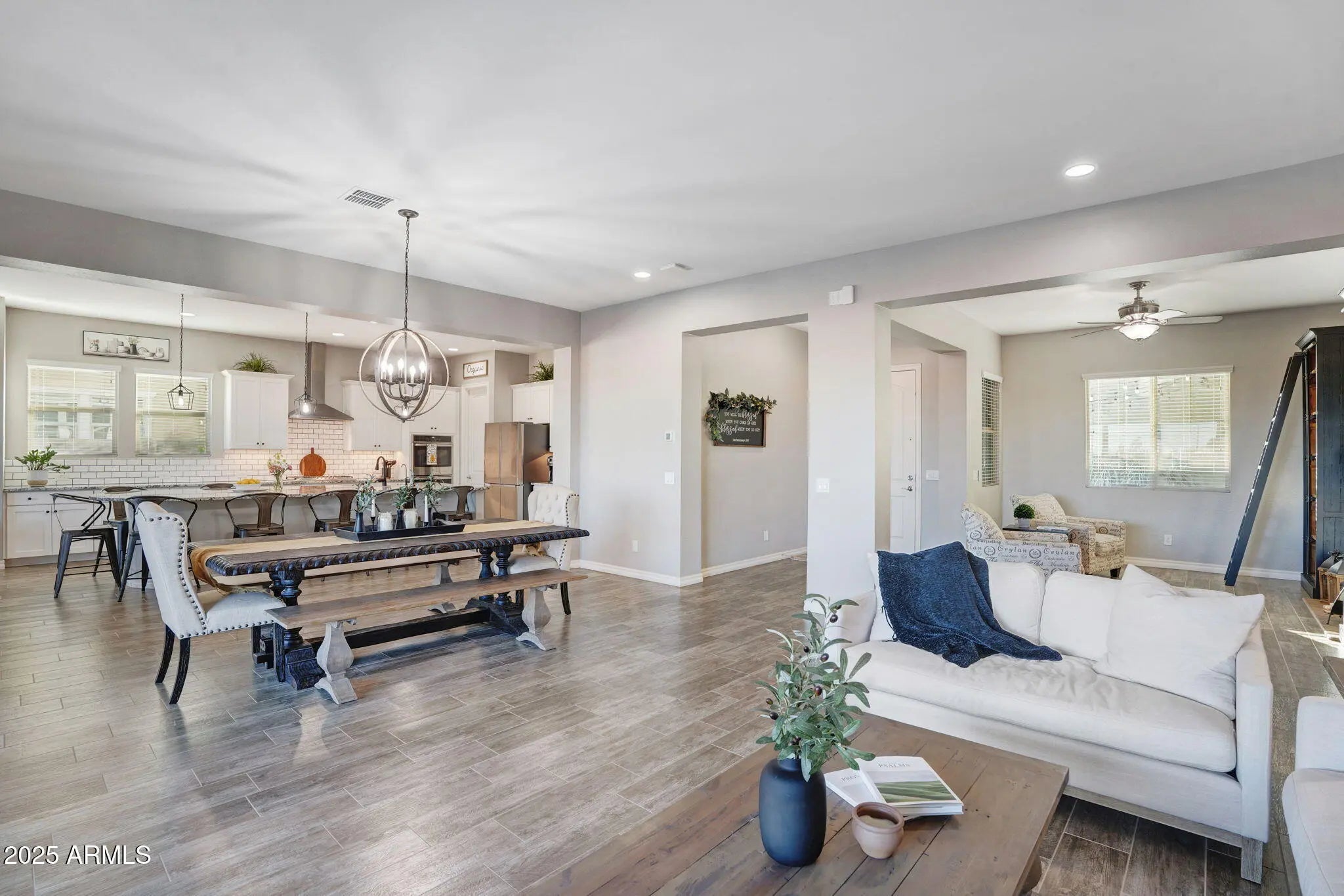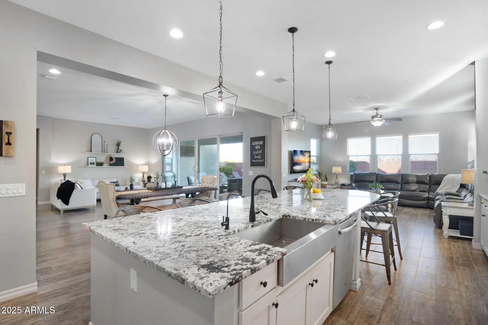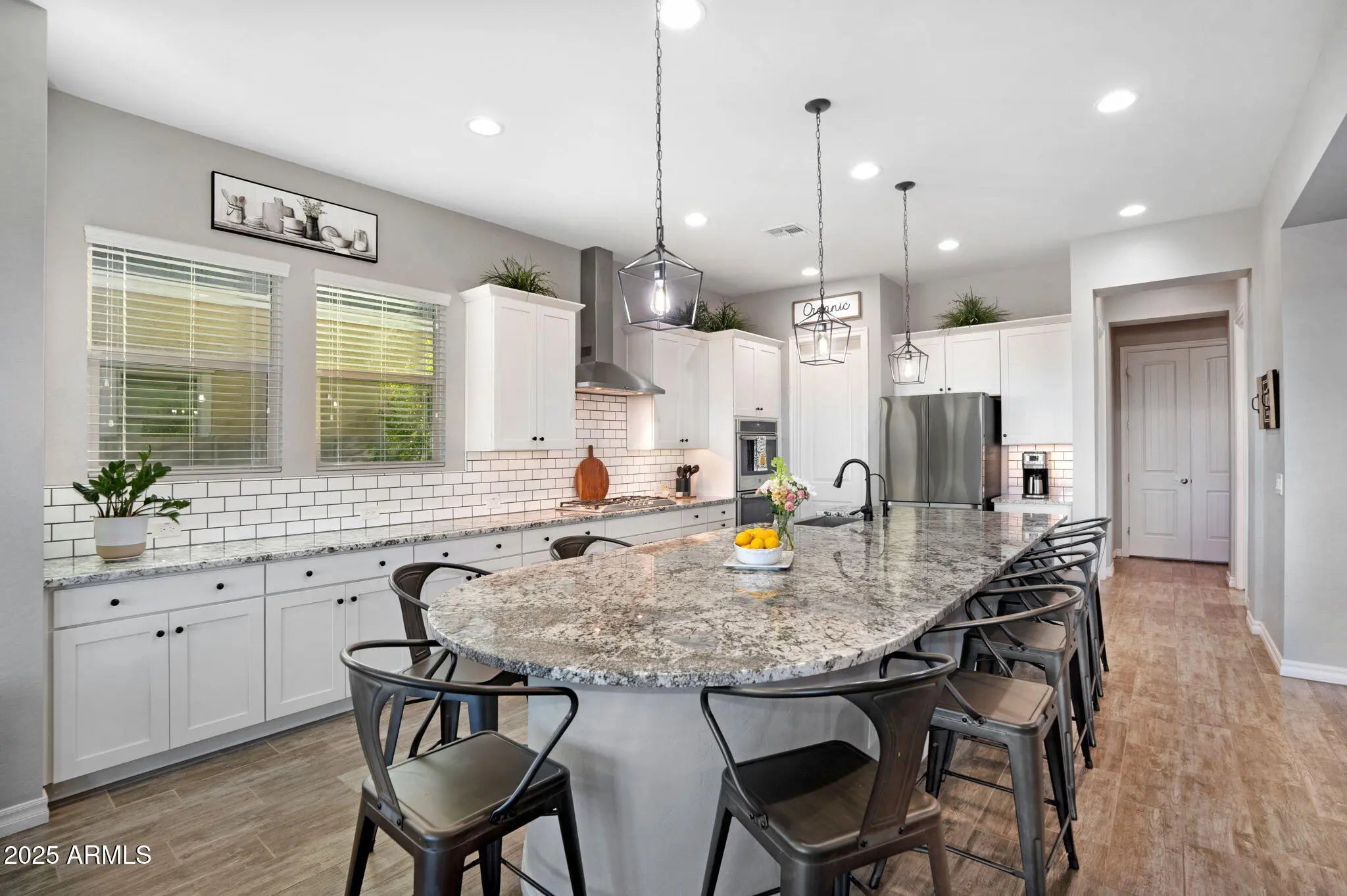 Welcome to the ultimate Arizona lifestyle in this beautifully upgraded single-story home, perfectly situated in Gilbert's highly sought-after Cooley Station community. With over 3,300 sq ft of thoughtfully designed living space, this 4-bedroom home with an office and bonus room offers incredible flexibility for multi-generational living, working from home, or creating a playroom or 5th bedroom. At the heart of the home is a chef's dream kitchen featuring an oversized granite island, gas cooktop, double ovens, walk-in pantry, and elegant finishes that flow seamlessly into the open great room—ideal for both everyday living and entertaining. Each bedroom includes its own walk-in closet, ensuring comfort and storage for everyone. The luxurious primary suite is a true retreat, complete with a spa-inspired bathroom featuring a soaking tub, spacious walk-in shower, dual vanities, and a private water closet. Step outside to your own backyard oasis with a heated PebbleTec pool and spa, premium limestone decking, built-in turf, and no rear neighbors. With canal views and a greenbelt across the street, this space offers privacy and peaceful vibes you won't find elsewhere. All of this comes with the perks of Cooley Station's resort-style amenities, including a heated community pool and spa, multiple playgrounds, and scenic walking paths. Plus, you'll enjoy being just minutes from shopping, dining, and easy freeway access. This home is where luxury, comfort, and convenience come together, don't miss it!