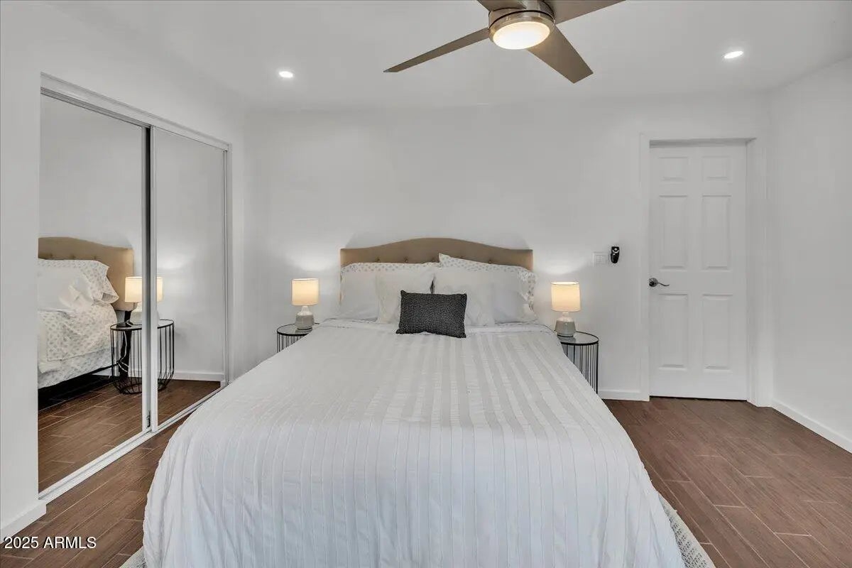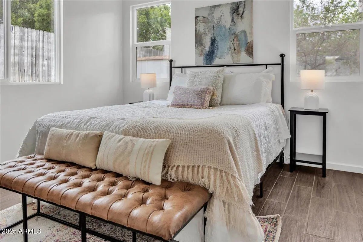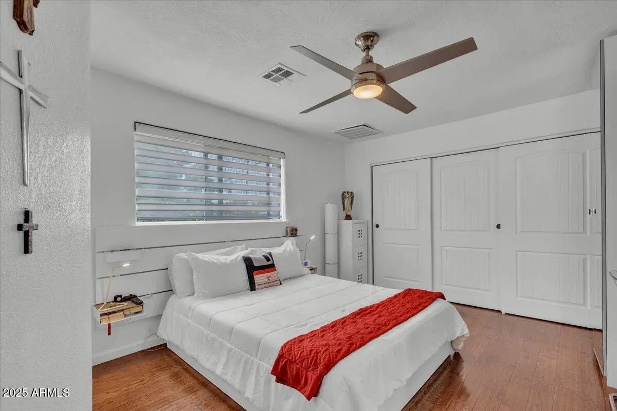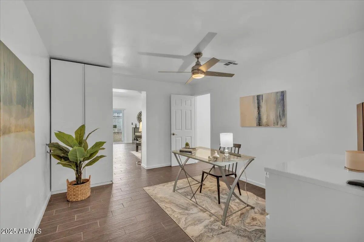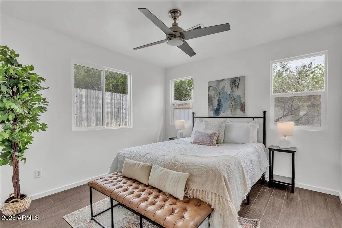 Location, Location, Location with paid solar. Are you searching for a home with endless possibilities? Look no further—you've found the one! This stunning property has been expanded to include 995 square feet of additional living space. With 5 bedrooms and 4 bathrooms, the possibilities are truly endless. This versatile home can be tailored to your needs: • Option 1: Keep it as a spacious single-family home. • Option 2: Convert it into two separate units—a 3-bedroom, 2-bathroom home and a two bedroom, 2 bathroom with a private entrance for added privacy. • Option 3: Create two one-bedroom apartments plus a main house for multi-generational living or rental income opportunities. Nestled in the highly sought-after Phoenix area, this home is close to all the amenities you need. Inside, you'll find: " Rich, hand-scraped wood flooring that enhances the large, open living spaces. " A great room with a vaulted ceiling " A chef's dream kitchen with a 36" KitchenAid gas cooktop, LED under-cabinet lighting, 42" upper cabinets, double ovens, and granite countertops. " Upgraded bathrooms featuring granite counters, a custom-tiled master shower, and dual sinks in the master suite. " New AC in the added living area and an updated AC unit in the main house. " Recessed lighting in the kitchen, bathrooms, and living areas. " Ceiling fans in every room for added comfort. " A large single-car garage with a vaulted ceiling, epoxied floor, and sink. Step outside to a huge backyard with endless possibilities, complete with irrigation. The circular driveway ensures easy access, while the charming curb appeal welcomes you home. Don't miss this incredible opportunity to live in the heart of Phoenix. Whether you're looking for a family home or an income-generating property, this home is ready to make your dreams a reality.