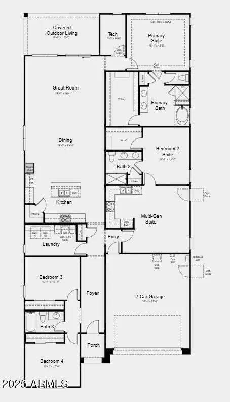 What's Special: Deep Lot | Oversized Lot | Mountain View. New Construction - Ready Now! Built by America's Most Trusted Homebuilder. Welcome home to the Caliber floor plan at Asante. Step through the inviting porch into a bright foyer, leading to your two-car garage and a private multi-gen suite—complete with a full kitchen, bedroom, walk-in closet, and ensuite bath with dual vanities. Across the hall, you'll find two additional bedrooms, a full bath, and a convenient laundry room. The beautifully upgraded gourmet kitchen with an island, seamlessly connecting to the casual dining area, great room, tech center, and covered outdoor living space. Retreat to your primary suite, featuring a spa-inspired bath and spacious walk-in closet. MLS#6843678 Structural options added include: paver front porch, exterior door at mult-gen suite, 4' garage extension, and gourmet kitchen.