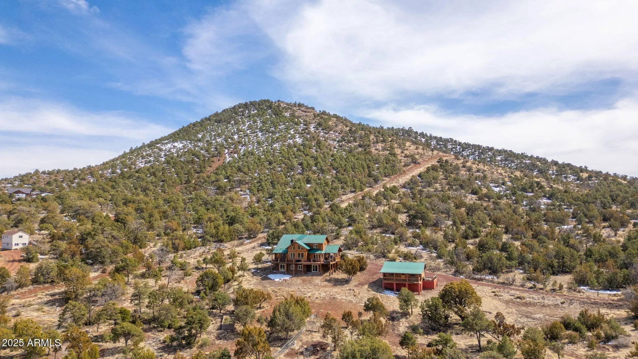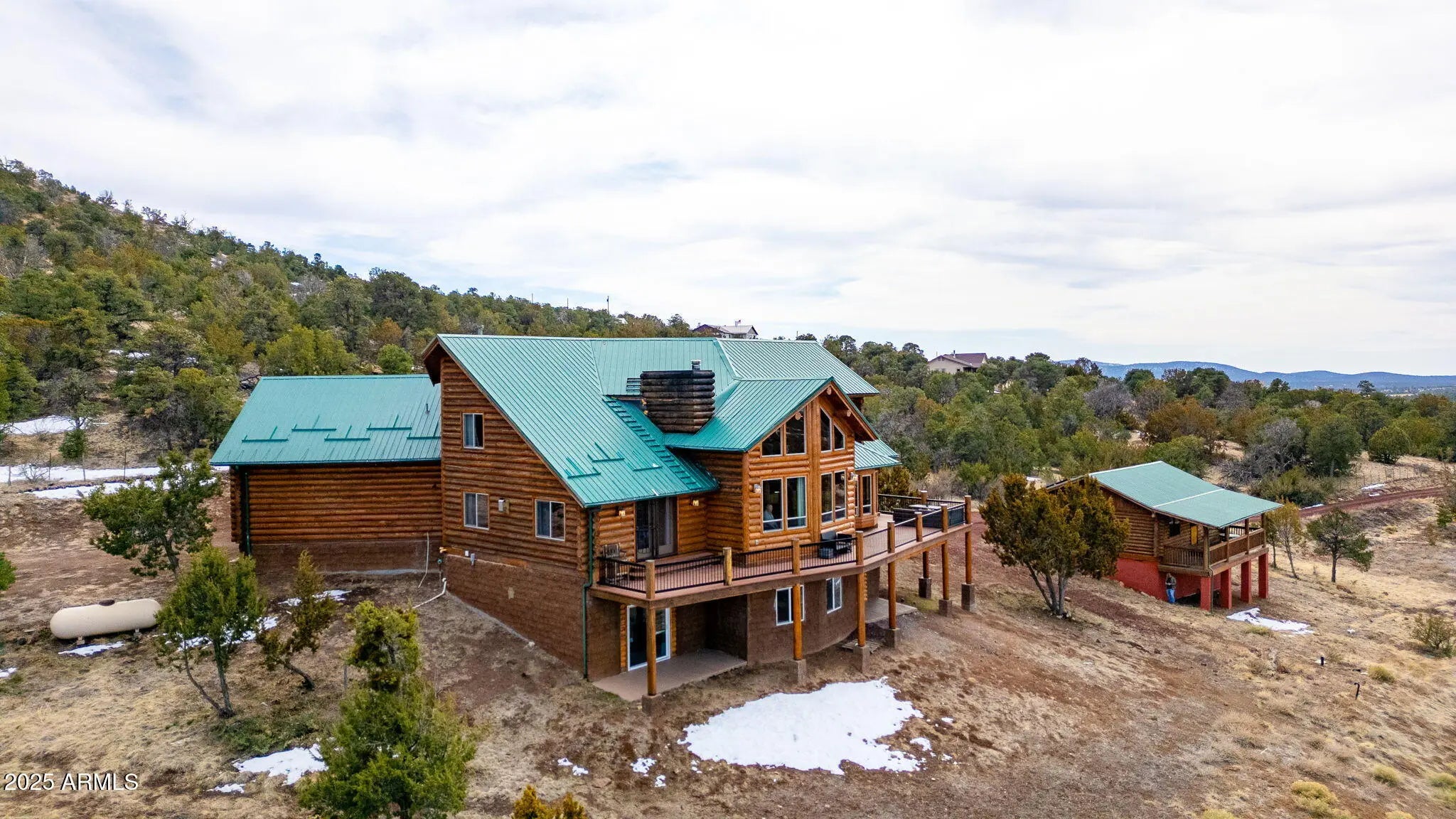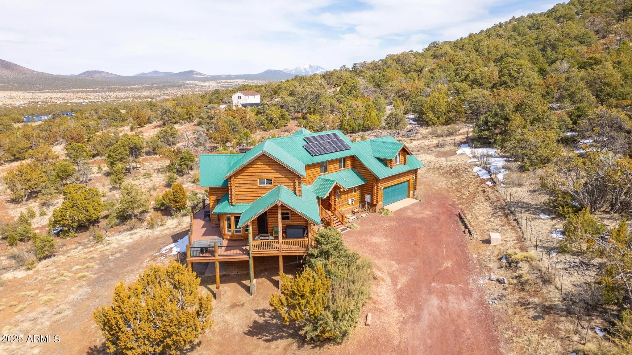 Luxury Mountain Retreat - Custom Log Cabin with Guest House & Horse Stable on 10 Acres! Discover the ultimate mountain paradise with this stunning custom log home, perfectly set on 10 private acres with breathtaking panoramic views. Designed for comfort and elegance, this spacious retreat offers 5,142 sq ft of livable space, thoughtfully divided between the main home (4,372 sf) and a separate guest house (770 sf). The main home features a well-planned layout: - Main Level: Open-concept living area with soaring ceilings, a cozy fireplace, and a luxurious master suite - Upper Level: Three additional bedrooms, ideal for family or guests - Lower Level: Includes two private suites, each designed for ultimate comfort and seclusion, perfect for guests or extended stays. - For equestrian enthusiasts, the property includes a 4-horse stable with plenty of space for riding and outdoor activities. Enjoy unparalleled views from beautiful windows, wraparound decks, and outdoor spaces designed for relaxation and entertaining. This home seamlessly blends rustic charm with modern comforts, offering the perfect balance of warmth and contemporary convenience. Nestled in a prime location, this cozy home offers the perfect base for exploring the best of Northern Arizona! Just 9 miles from family favorites like the Polar Express Train, North Pole Experience, and Canyon Coaster Adventure Park, you're never far from fun. Take a quick 9.5-mile trip into town to enjoy local shops, restaurants, and the thrilling Route 66 Zipline. Looking for a day with animals or a bit of nature? Bearizona Wildlife Park is 9 miles away and The Grand Canyon Deer Farm is only 14 miles away, both offering a memorable experience for all ages. And for the ultimate adventure, the majestic Grand Canyon is just 50 miles from your doorstep, an easy and scenic drive to one of the world's natural wonders.