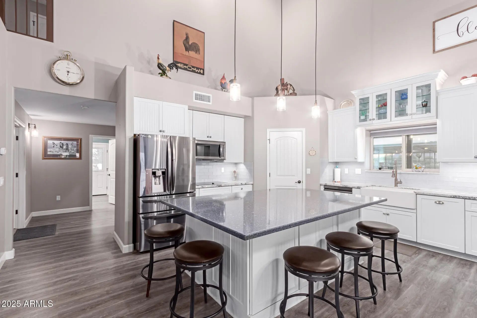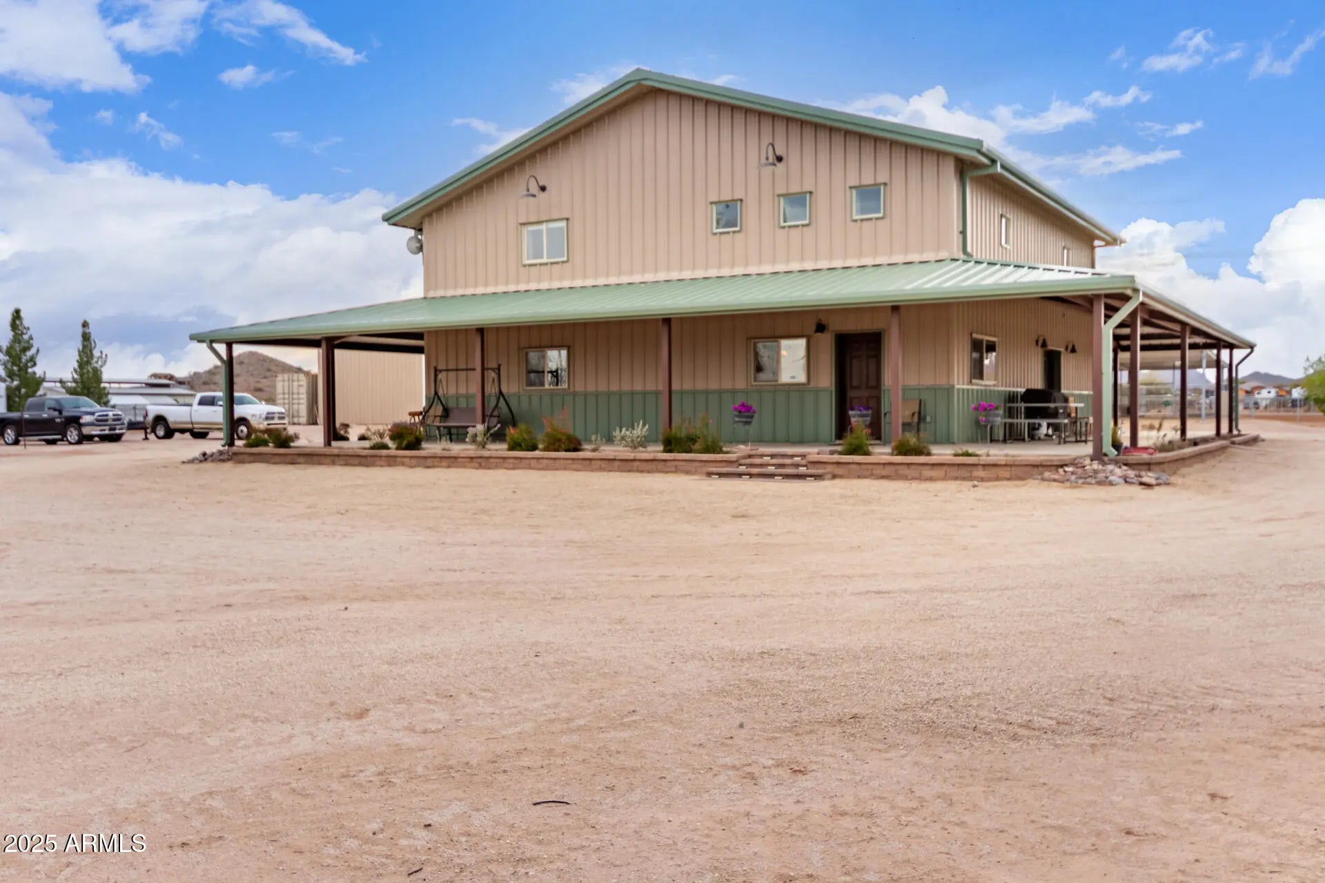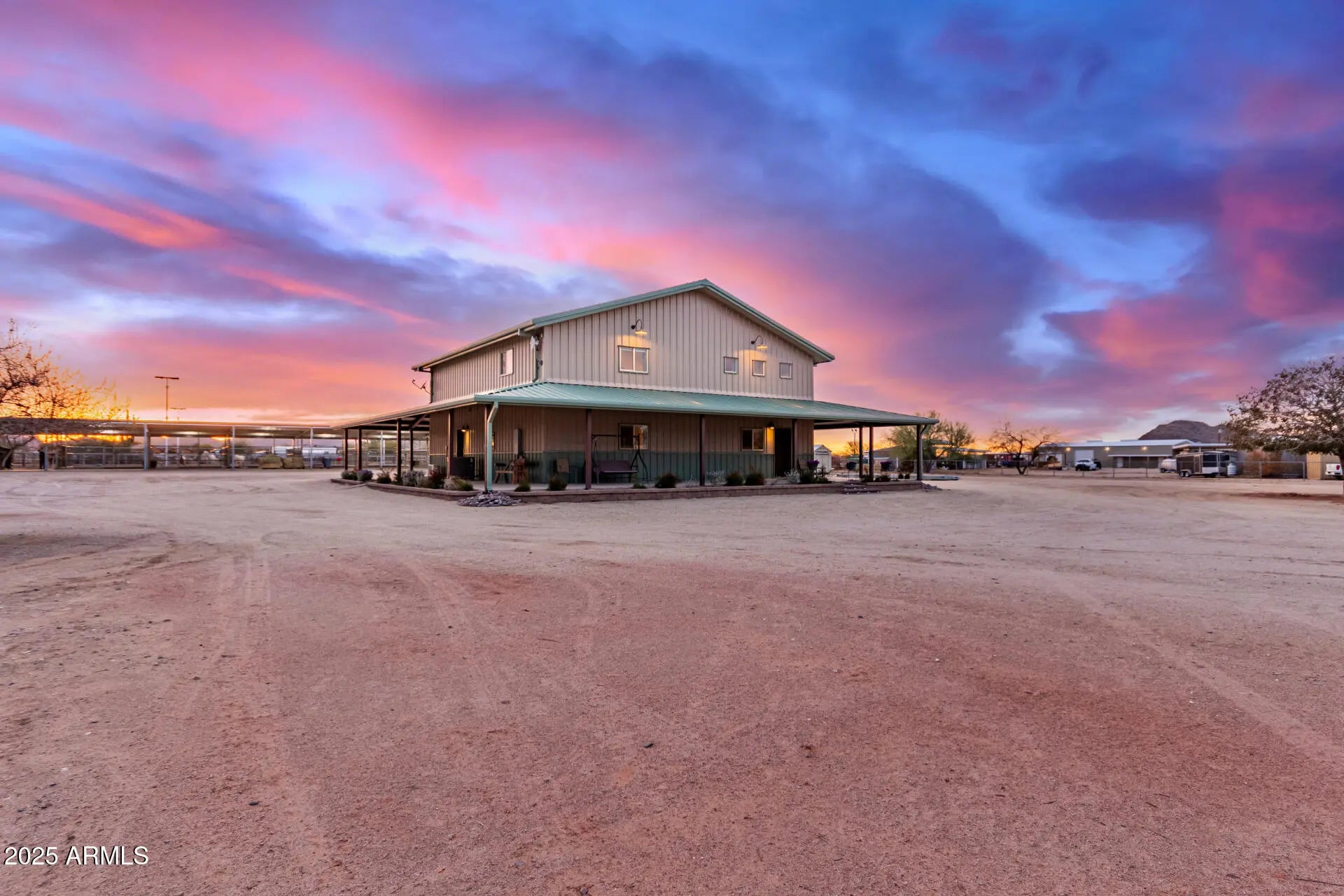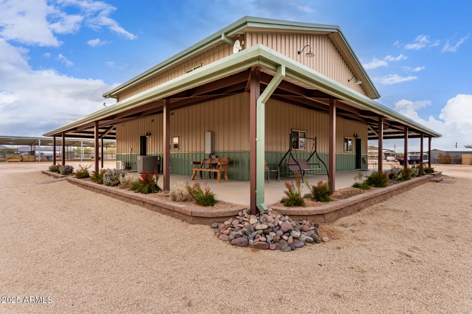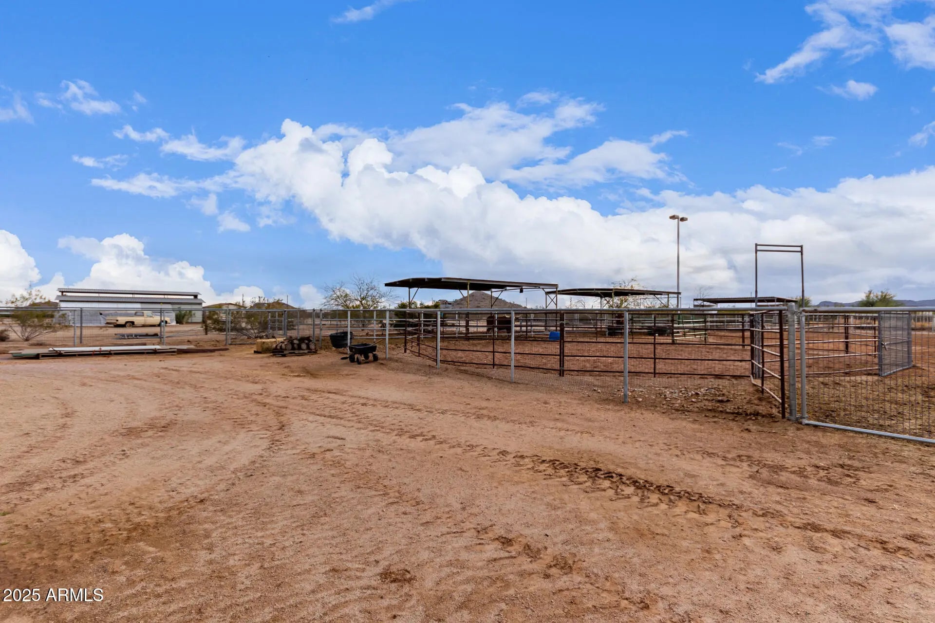 Wide open living on this 4.3 acre horse property in San Tan Ranches. This turn-key property comes complete with a roping arena, shade for roping boxes, cow pens, horse stalls, and hay storage. In Suburban Ranch Zoning, this property offers the freedom to enjoy livestock, agricultural use, and a home-based business. Room for parking trailers, equipment, and RVs with easy access in and out and there is plenty of land to add additional structures. It's an ideal setup for anyone wanting space to work and live in one place - at home. The ranch offers 3 bedrooms, 3 bathrooms, an open layout, soaring ceilings, and a spacious loft. The kitchen includes Upgraded Cambria Quartz Countertops, a center island, and plenty of beautiful, organized cabinet space. Ideal wraparound covered patio included