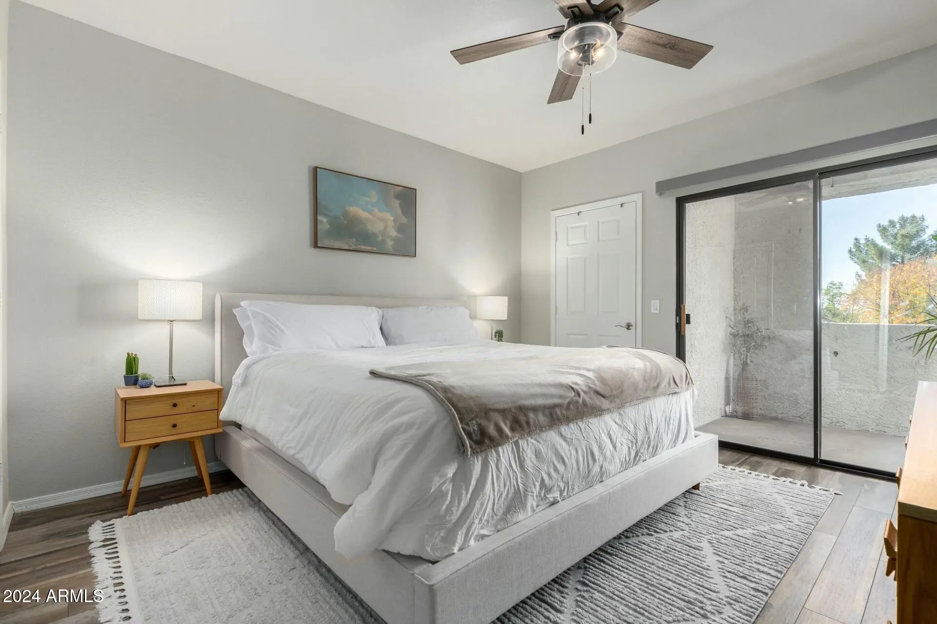AVAILABLE STARTING 4/1/2026! Experience resort-style living at Signature Scottsdale Condos, a beautifully updated & fully furnished 1-bed condo that combines modern comfort with a prime location. Perfect for those relocating or between homes needing a warm, welcoming space to rent. This home features an open floor plan overlooking a peaceful, tree-lined setting. Recent upgrades in 2022 & 2023 include luxury vinyl flooring throughout (no carpet!), a full-size LG washer & dryer, a Bosch dishwasher & refrigerator, new ceiling fans, custom shades & blinds, Coolaroo patio shades, & a new garbage disposal! The spacious bathroom is equipped with a large garden tub & double sinks, while the living room & main bedroom (with 2 closets) both open to a large private balcony ideal for relaxing or entertaining. This community offers unparalleled amenities, including two heated pools, a hot tub, a BBQ area with stainless steel grills, a fitness center, steam rooms, walking paths, a furnished clubhouse, & a business center. The condo fee covers water, sewer, cable TV, internet, & trash removal, providing exceptional convenience. Located just minutes from Starbucks, AJ's Fine Foods, Safeway, & a variety of local restaurants, the property also offers quick access to the 101 loop, making it an excellent choice for those seeking a perfect blend of luxury & accessibility. Don't miss the opportunity to rent this stunning, furnished home & enjoy the best of Scottsdale living!