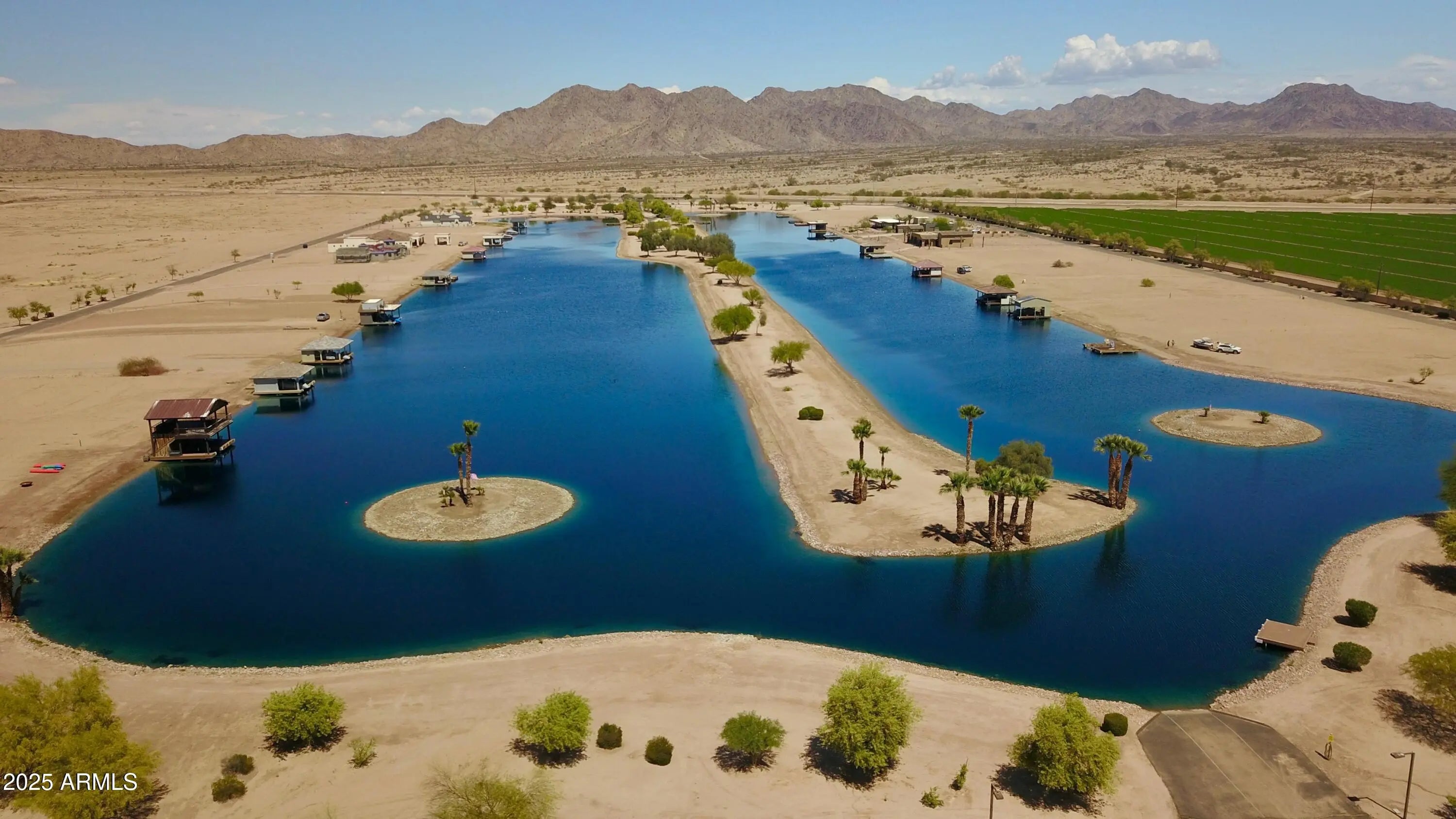 Rare opportunity to build a custom home and be on a private tournament waterski lake in the desert; This one acre lot comes with a boat dock, Basta boat lift already installed and a temporary rock driveway already in place. This lot faces East which is ideal in the summer months. The mountain views, sunrises and sunsets are Phenomenal! Make this your permanent residence or just your weekend getaway from the hustle and bustle of life!