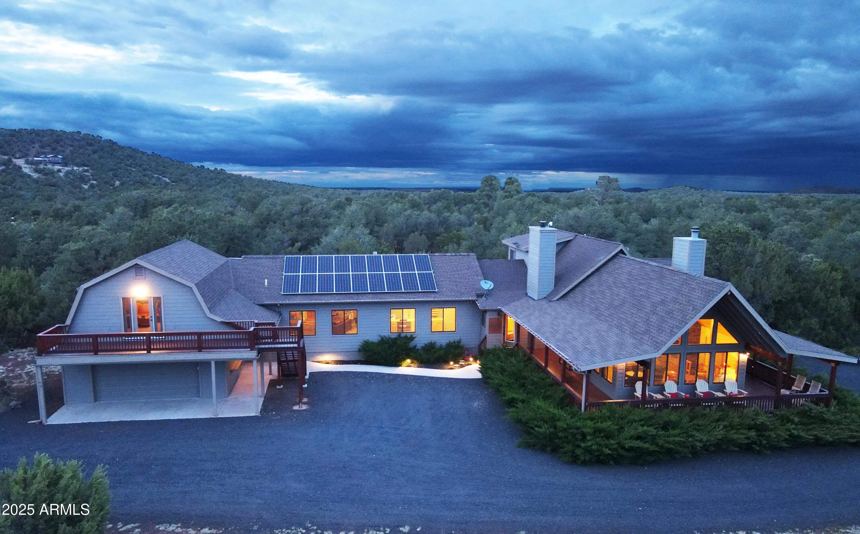 Secluded Mountain Cabin Retreat - 8 Scenic Acres with Bunkhouse, Game Room & Solar Power Nestled in the serene White Mountains of Vernon, Arizona, 4,371 Sqft cabin on 8 acres, located near Show Low. With 5 bedrooms, 4 baths, and two roomy family areas, this elegant and cozy escape offers endless possibilities for relaxation, entertaining, and unforgettable gatherings. Highlights: Breathtaking Views: Unobstructed mountain panoramas from decks designed to show sunrises, sunsets, and snow-dusted peaks. Connected Bunkhouse: Perfect for kids or guests—complete with full bath and private balcony. Spacious & Multi-Functional Layout: Two family rooms (one with a wood-burning fireplace), a formal dining area, and a built-in game room ready for memories. Outdoor Entertaining: Wraparound decks, a gas grill, pizza oven, smoke vault, and Adirondack chairs ideal for cookouts and starry evenings. Green Tech Meets Comfort: On-grid city water and power augmented by a solar-off-grid system with generator backup. Horse-Friendly Setup: Zoned AG bring pets or horses and embrace the country lifestyle. Imagine The Lifestyle: Wake up with fresh mountain air, sip coffee on the deck, then take off on an ATV into the nearby National Forest. Spend the afternoon at Lyman Lake State Park or Fool Hollow Lake, just minutes away. Afterward, grill pizza in the backyard and unwind by the fire this cabin captures the spirit of family-style mountain living. No HOA