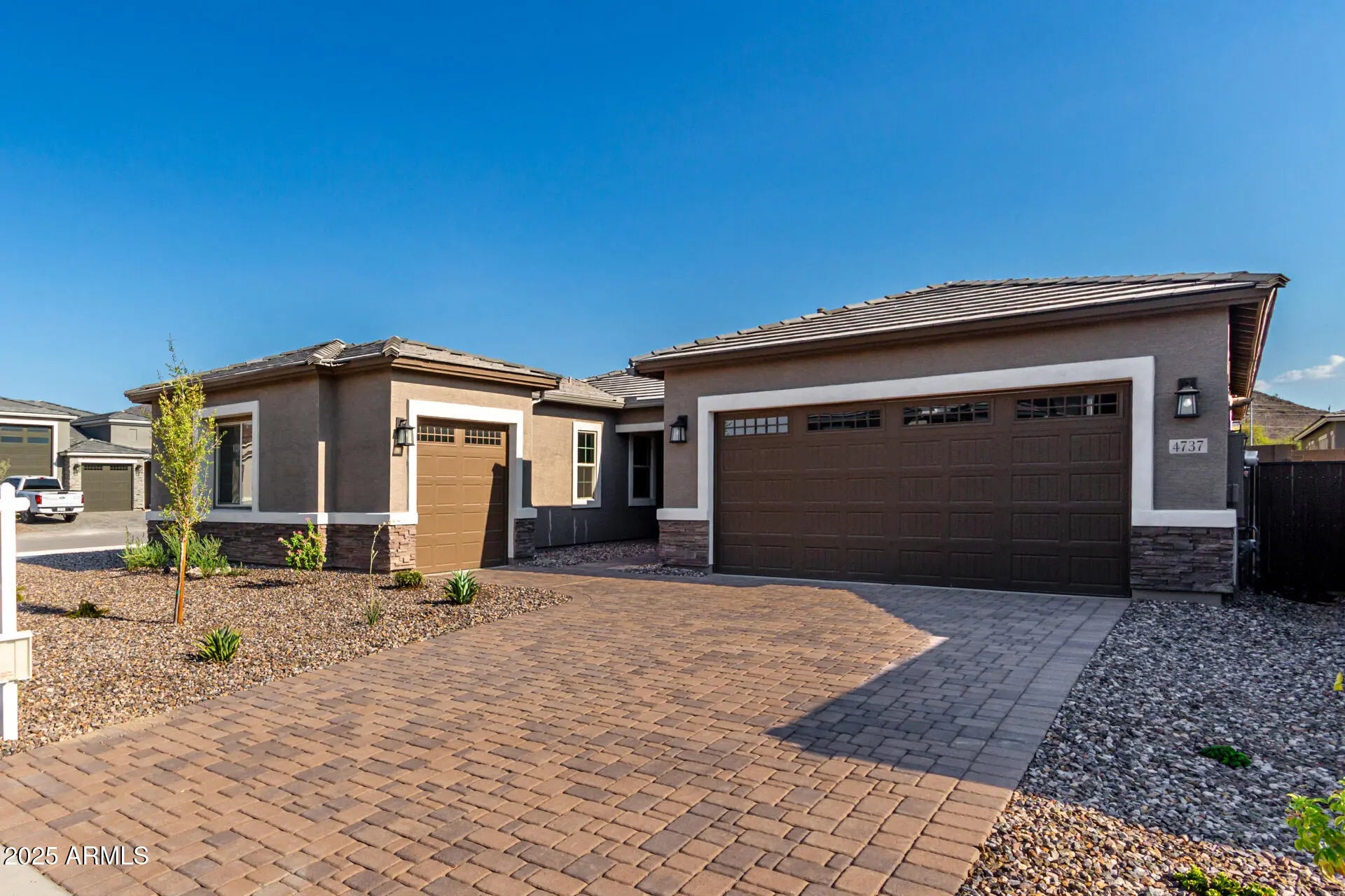 Premium Corner Lot Single-Story with Guest Suite! Situated on a highly desirable north-south corner lot, this single-story home offers both privacy and abundant natural light. A handsome paver driveway welcomes you into a stunning open-concept floor plan with soaring 10-foot ceilings. The gourmet kitchen is a chef's dream, featuring a large island with white quartz countertops, 42-inch Regal White cabinetry, a classic subway tile backsplash, and a built-in wall oven. The primary suite is a private retreat with a spa-like bathroom and an elegant tile walk-in shower. A versatile guest suite provides the perfect space for visitors or a home office. This is a must-see home in a prime location!