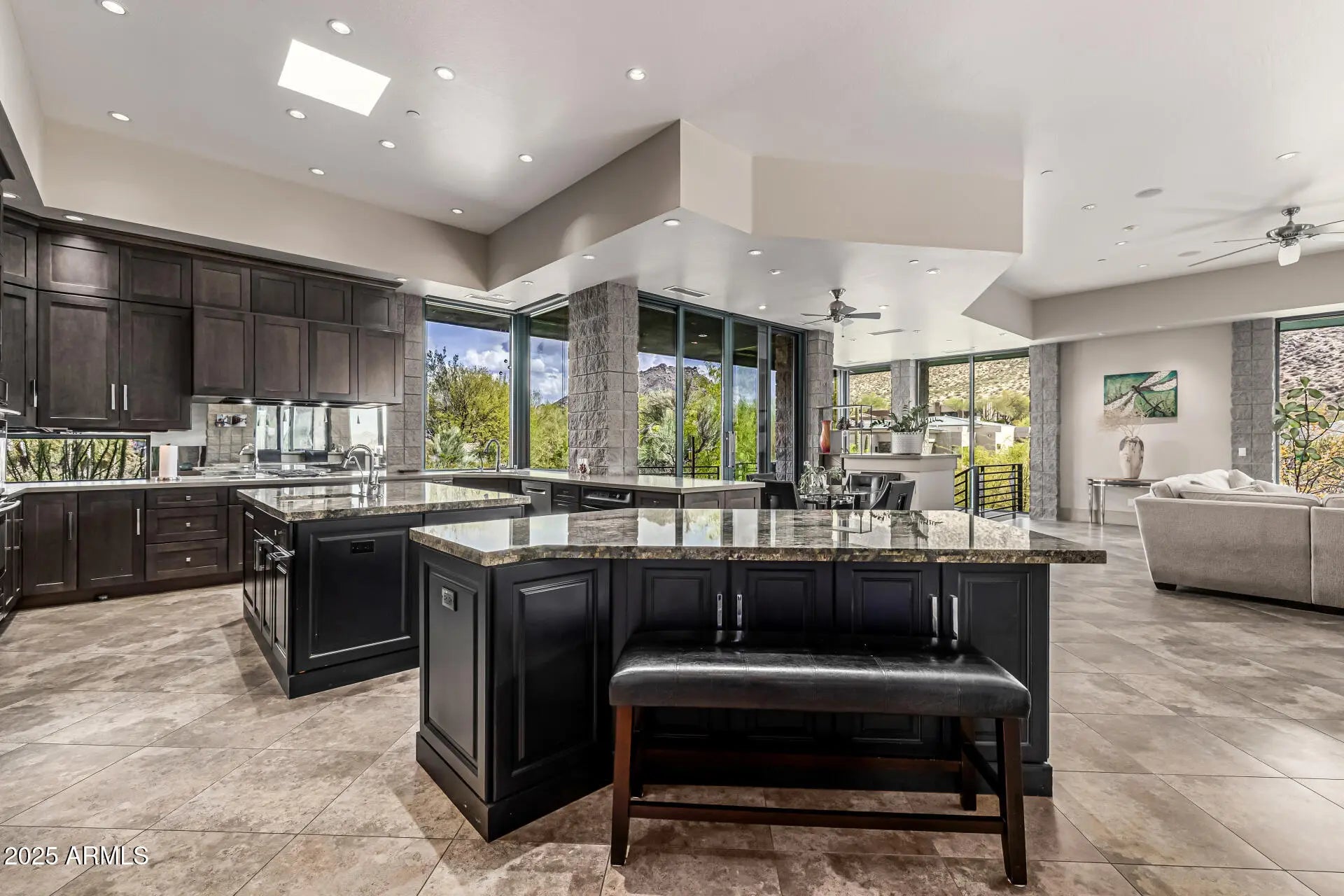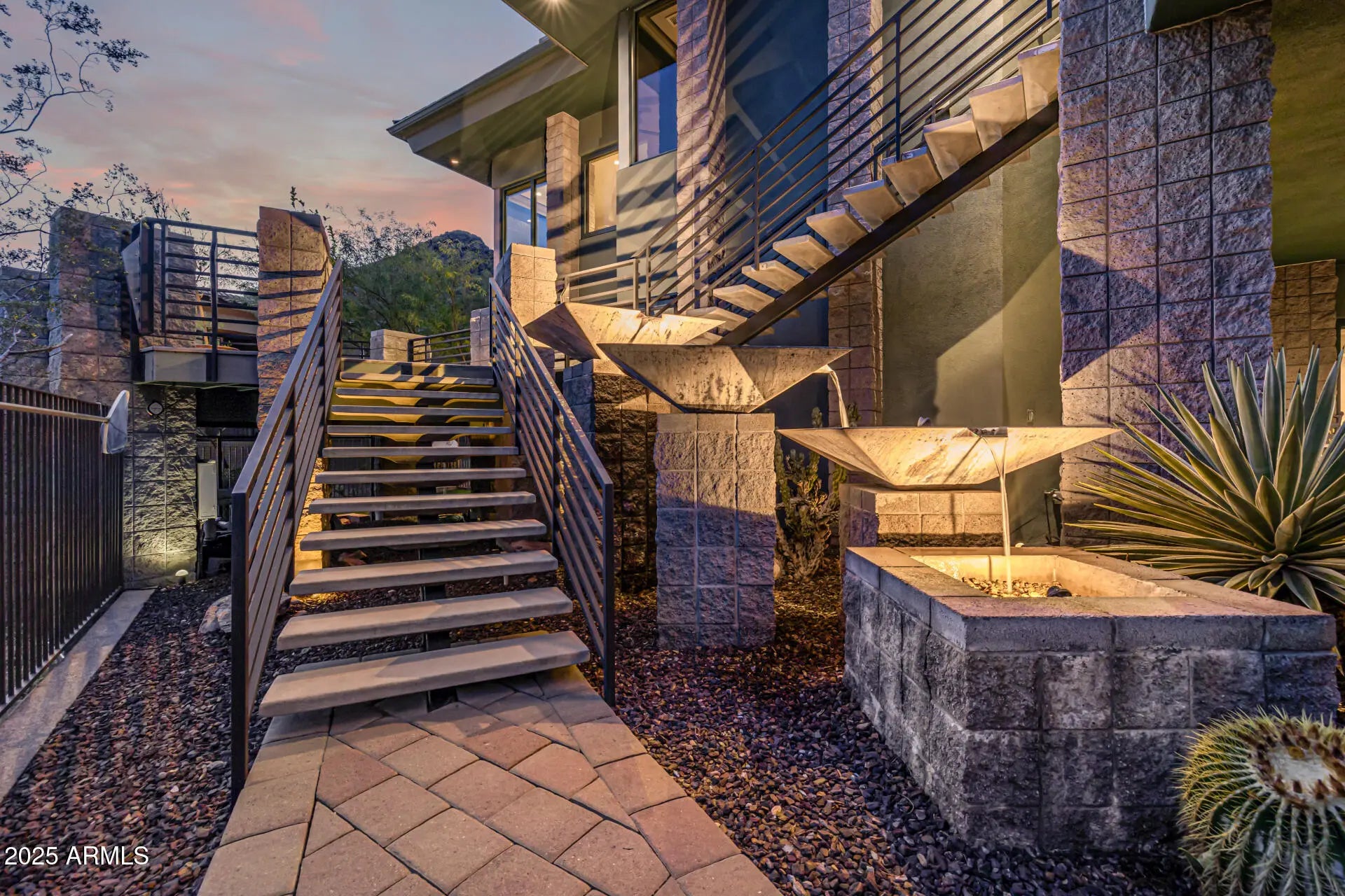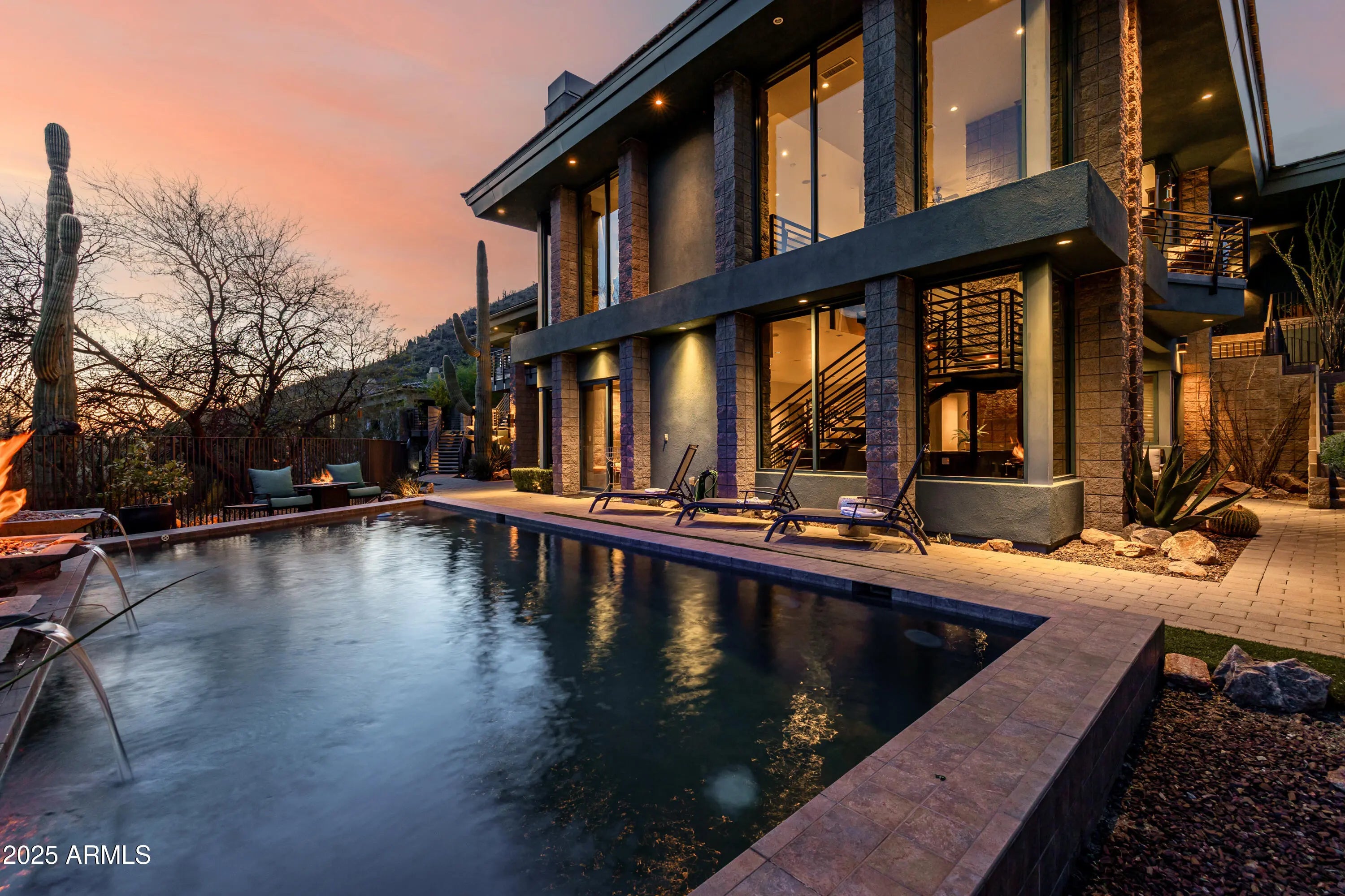 Voted ''Best Home on Tour'' at 85255 AZ Home Tour Group Made for entertaining with sweeping panoramic views this stunning Luxury home adjacent to preserve for ultimate back yard privacy. Walls of glass & sliding doors, polished concrete & porcelain tiled floors, dramatic dual island kitchen w/ seating, formal dining room, wet bar, family rm, media/office, huge master suite, laundry/crafts rm on the main level. Suspended staircase leads to lower level second full kitchen w/dumb waiter, game room & 3 guest bedrooms incl attached casita w/full kitchen & living area, stacked laundry. Multiple water features, 6 fireplaces, amazing courtyard, twin extended 2 car garages w/ 12 ft ceilings, Smart Home features including: Lutron lighting, walk-out to private yard and pool. Level 5 lighting.