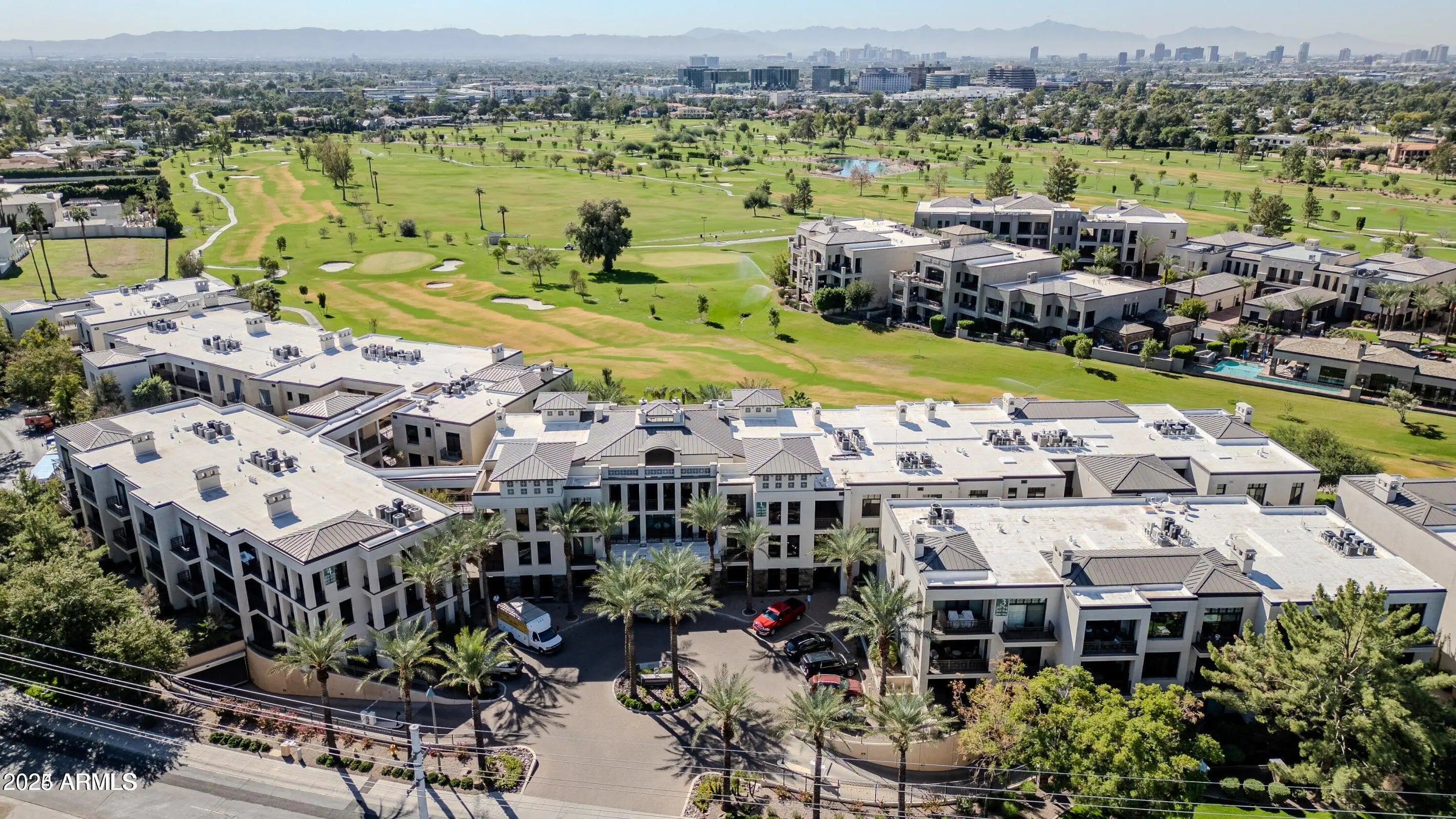 RARE AND LOVELY 3RD FLOOR EAST END UNIT PENTHOUSE—UNOBSTRUCTED GOLF, MOUNTAIN & CITY LIGHT VIEWS! This luxurious, professionally decorated penthouse in soothing creams features soaring ceilings, a wide and spacious great room bathed in light, 2 primary suites plus a 3rd bedroom/office and multiple patios for alfresco dining and stargazing. Highly upgraded with soft wood floors, custom lighting and built in cabinetry, quartz countertops, and Wolf & Sub-Zero appliances, this home offers a stunning primary suite with dual vanities and a huge walk in shower, soaking tub & 2 large walk in closets. Enjoy resort style amenities including a clubhouse, workout facility, pool/spa, and two gated parking spaces. Steps away from the Arizona Biltmore Resort, the upscale shops and restaurants.