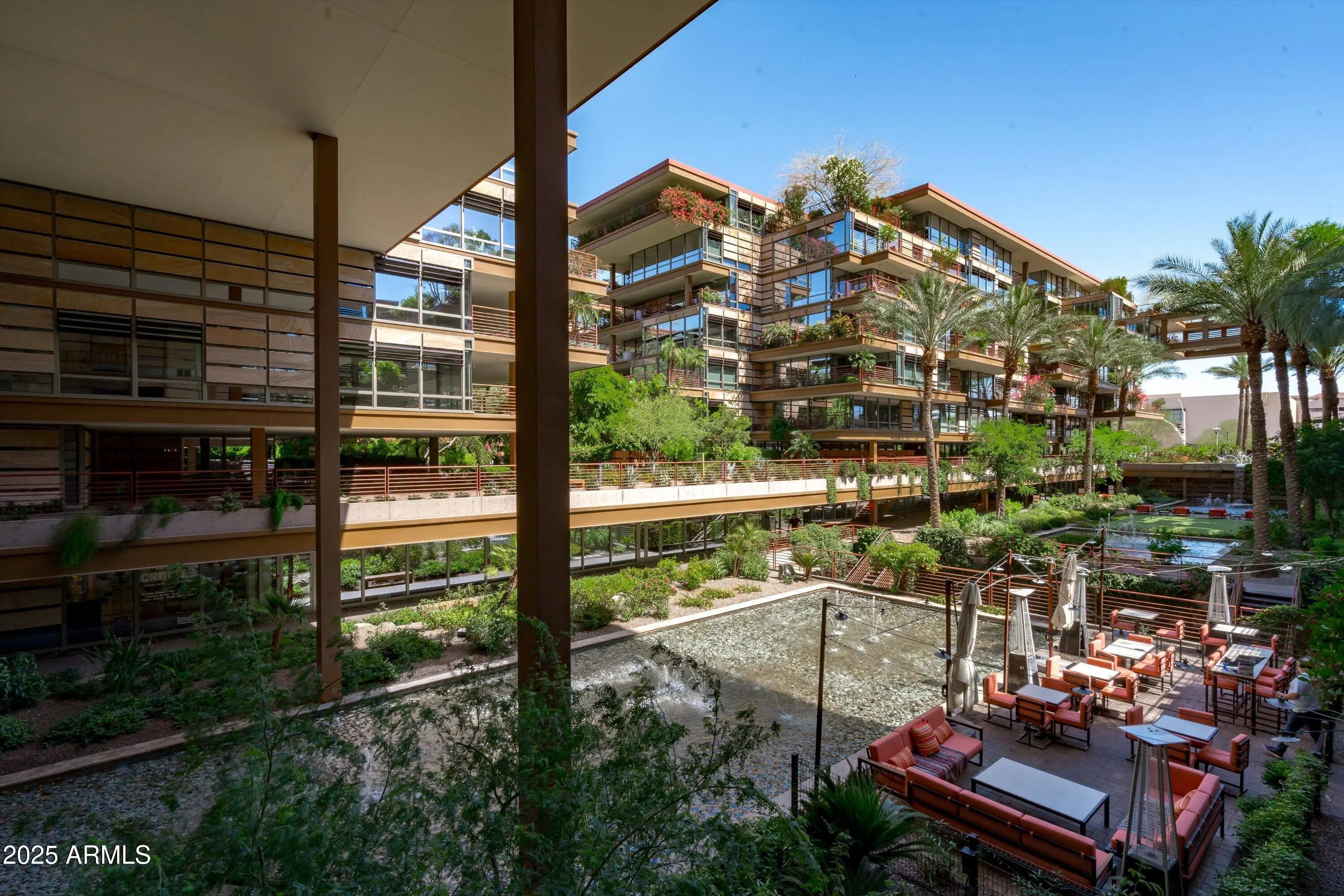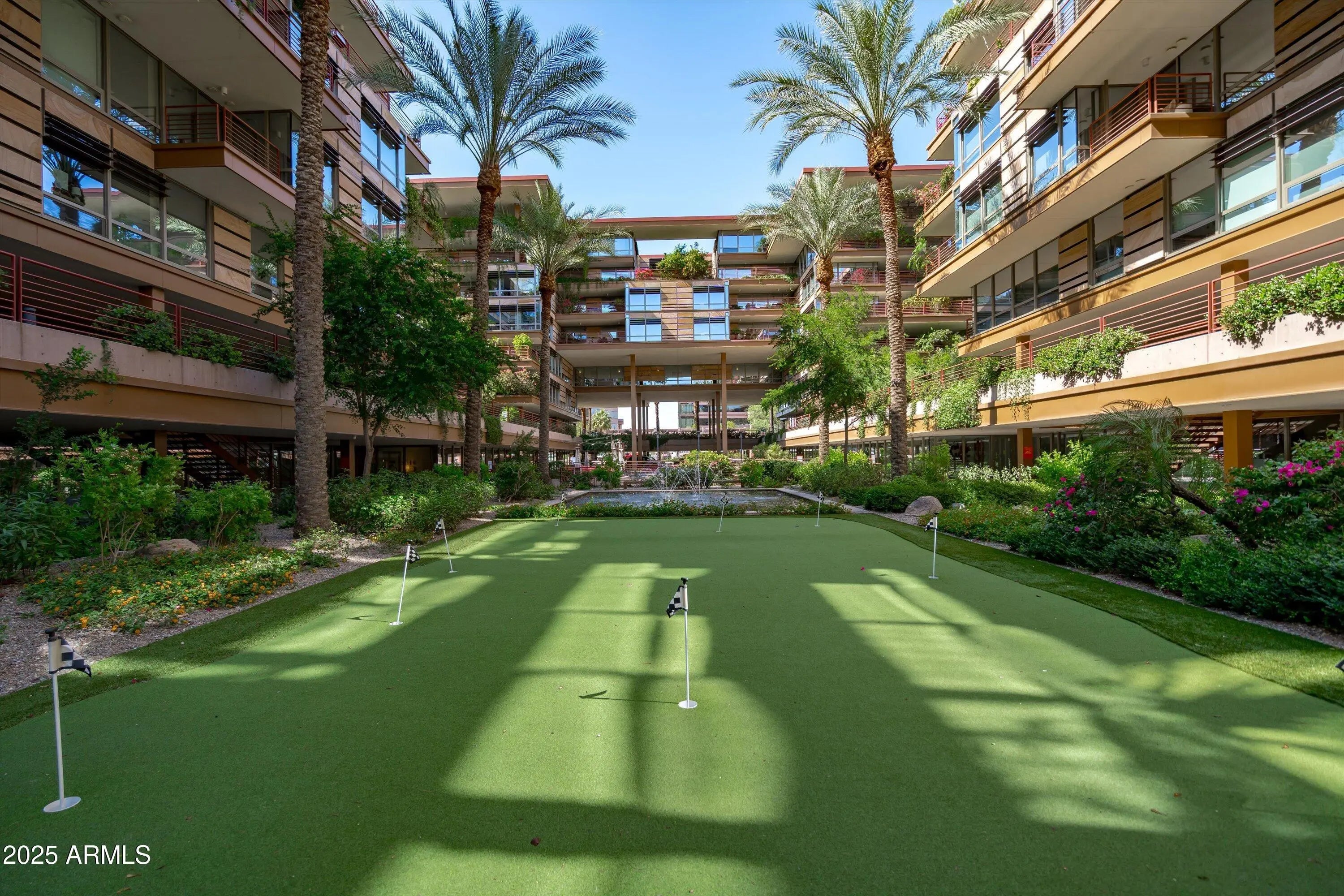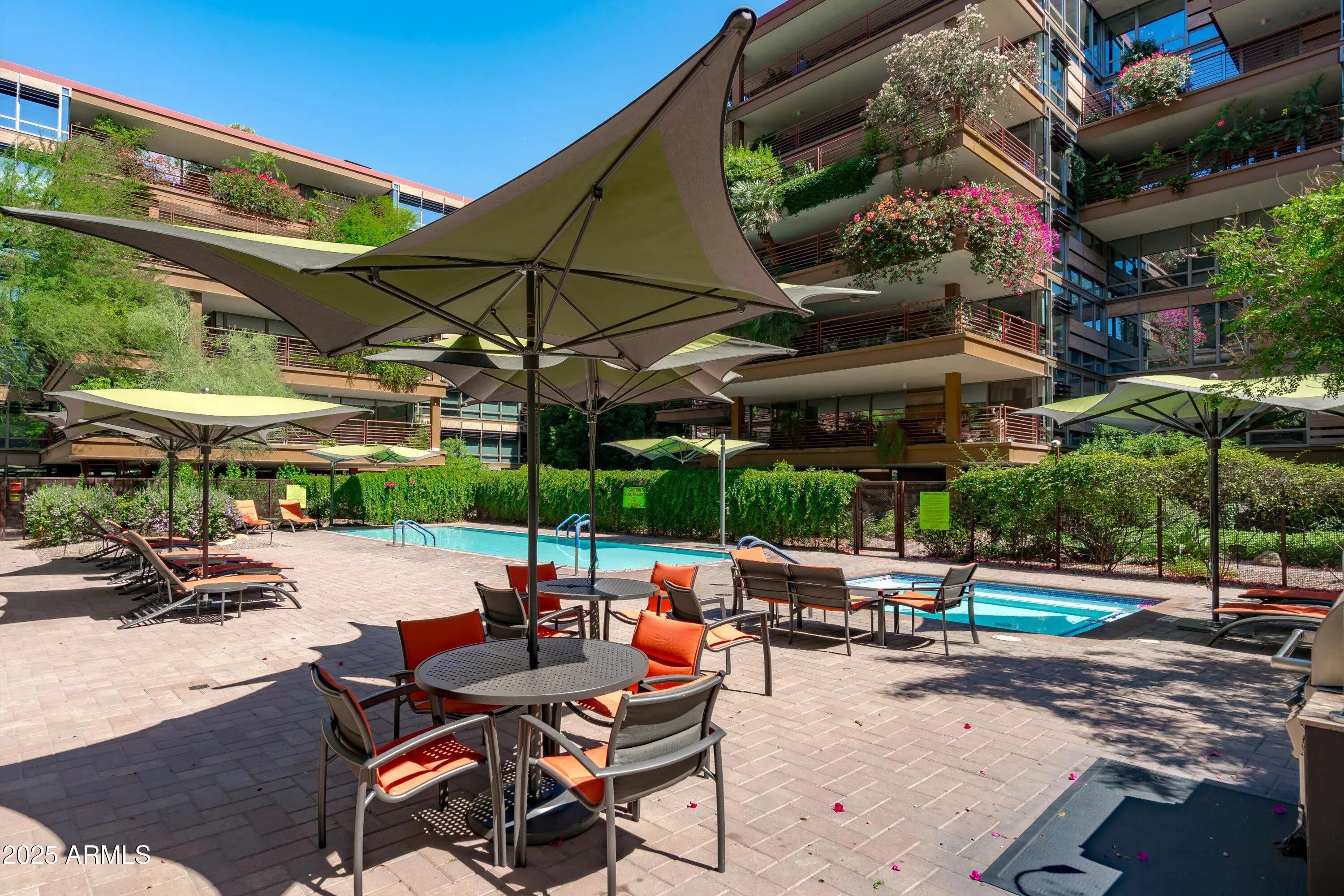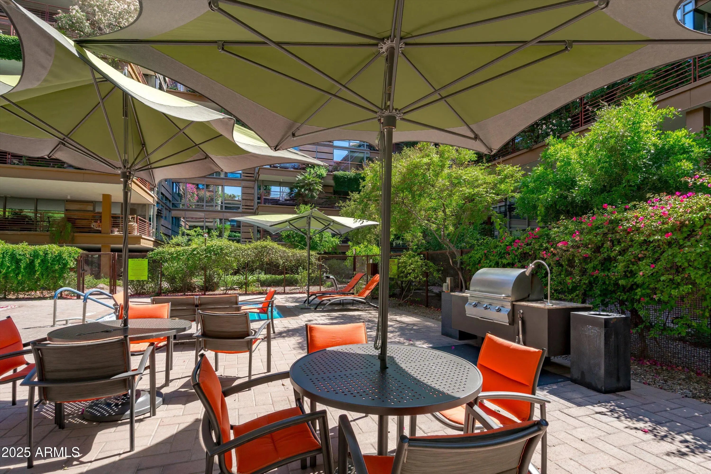 Ground-Level Corner Unit with Private Yard - A Rare Gem at Optima Camelview! Step into one of Optima Camelview's most desirable residences—an upscale ground-level corner unit featuring a spacious, private yard that's perfect for seamless indoor-outdoor living. Whether you're enjoying quiet mornings on the patio or hosting under the stars, this outdoor space sets the home apart from anything else in the community. Thoughtfully remodeled with premium designer finishes, this one-bedroom layout also includes a rare guest powder room, adding convenience and flexibility for everyday living and entertaining. The chef's kitchen features leather-finished granite countertops, upgraded cabinetry, a Viking 5-burner cooktop, French door refrigerator, and elegant glass tile backsplash. Inside, the open living area is enhanced by a floor-to-ceiling stainless steel fireplace, offering modern warmth and a stunning design focal point. Natural light fills the space, and the private patio doors extend your living experience into the serene outdoor garden. Located just steps from Scottsdale Fashion Square, the Waterfront, and the best of Old Town's dining, shopping, and cultural destinations, you'll enjoy a truly walkable lifestyle in one of the city's most iconic locations. Residents of Optima Camelview benefit from resort-style amenities including multiple indoor and outdoor pools, a top-tier fitness center, putting green, concierge services, indoor basketball and racquetball courts, and a lush, award-winning landscape design that creates a tranquil urban oasis. This home offers the perfect blend of comfort, elegance, and location an exceptional opportunity in the heart of Scottsdale.