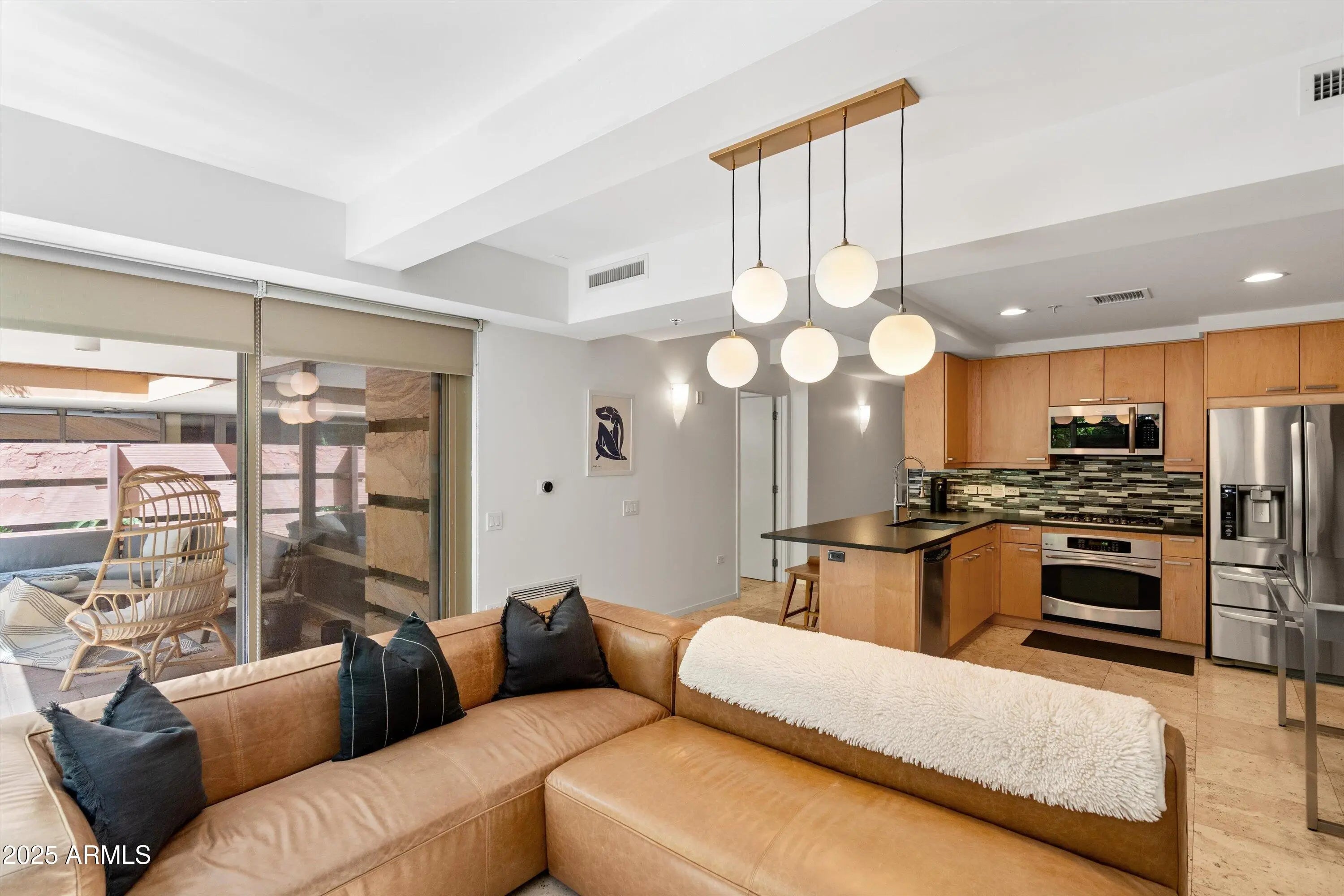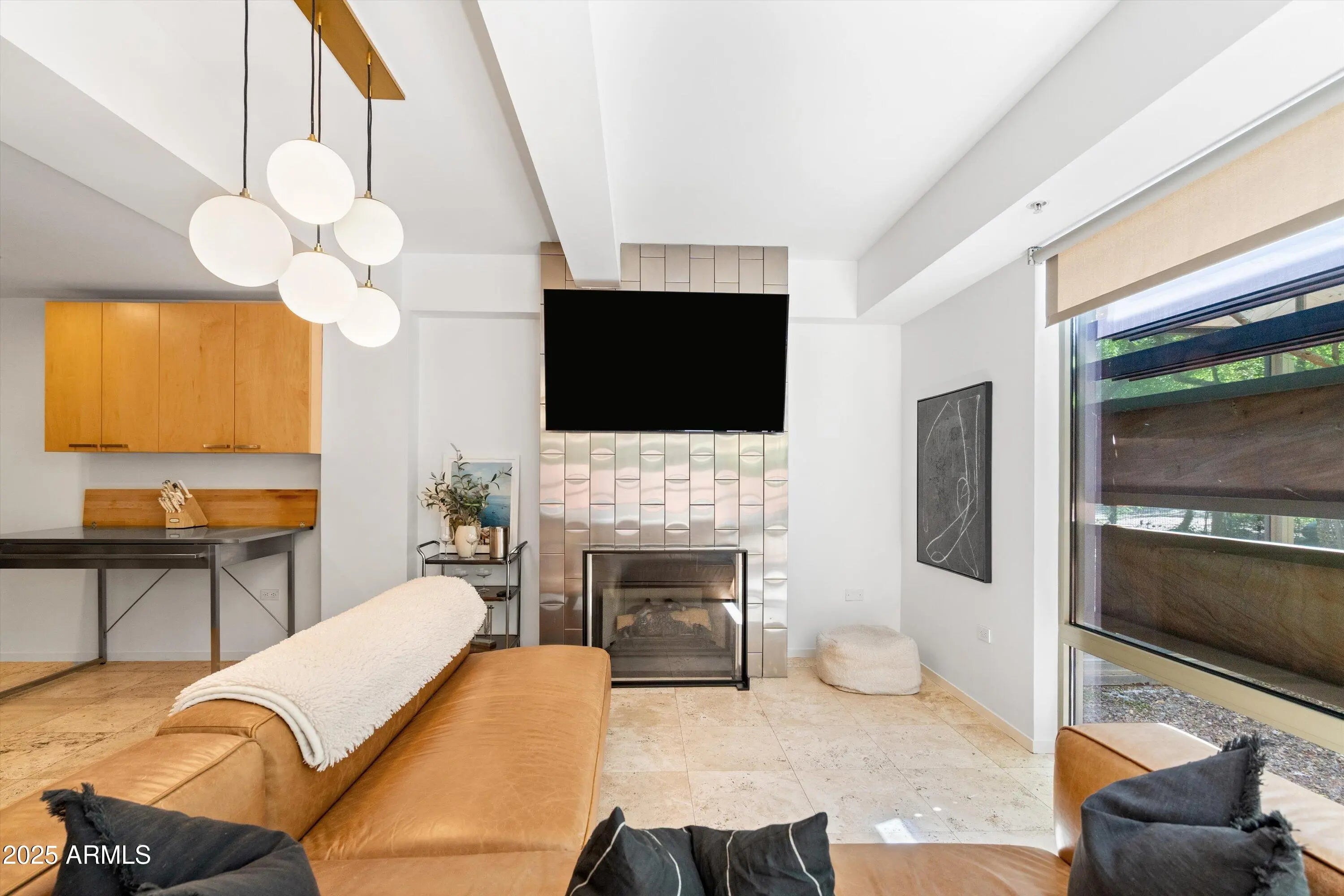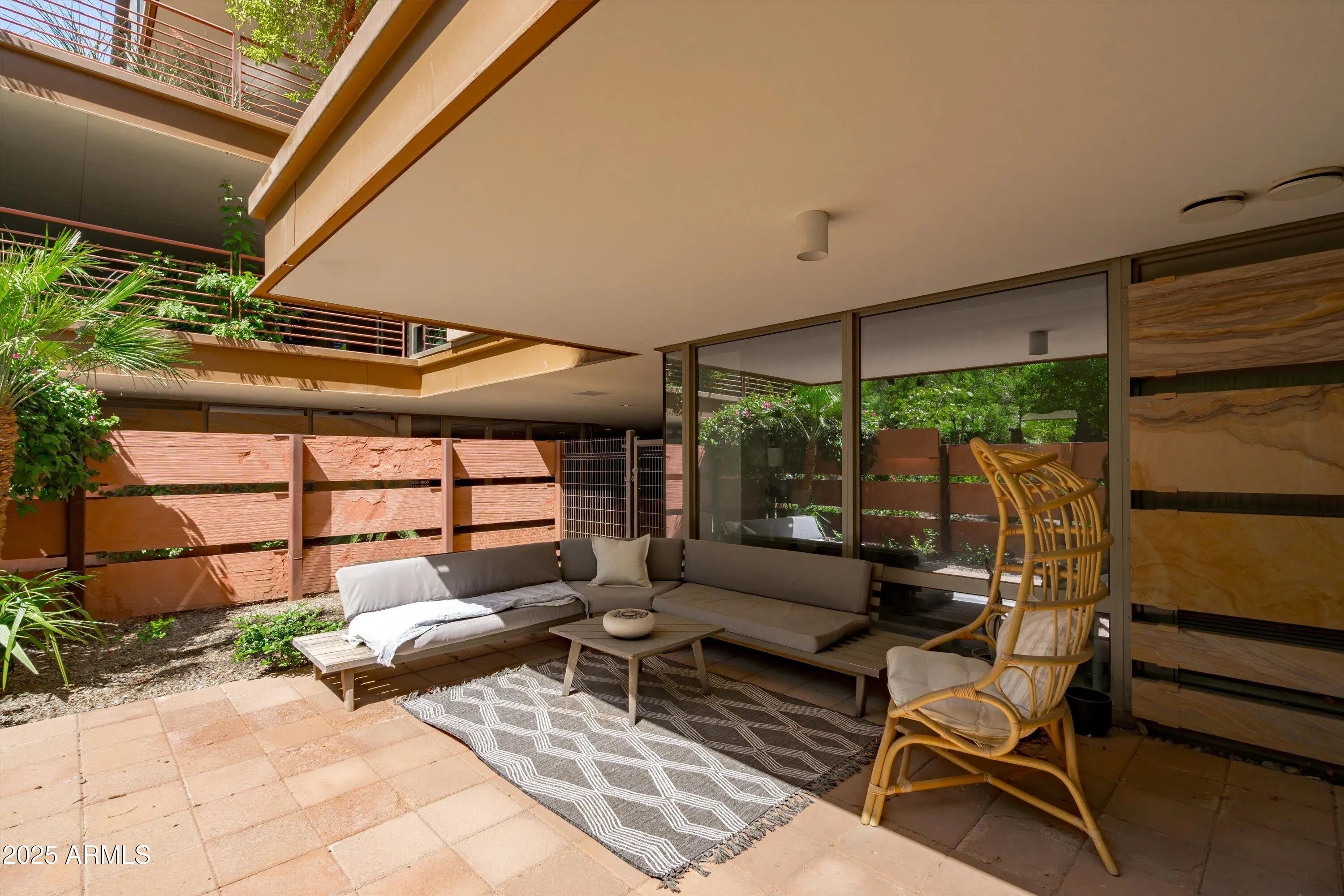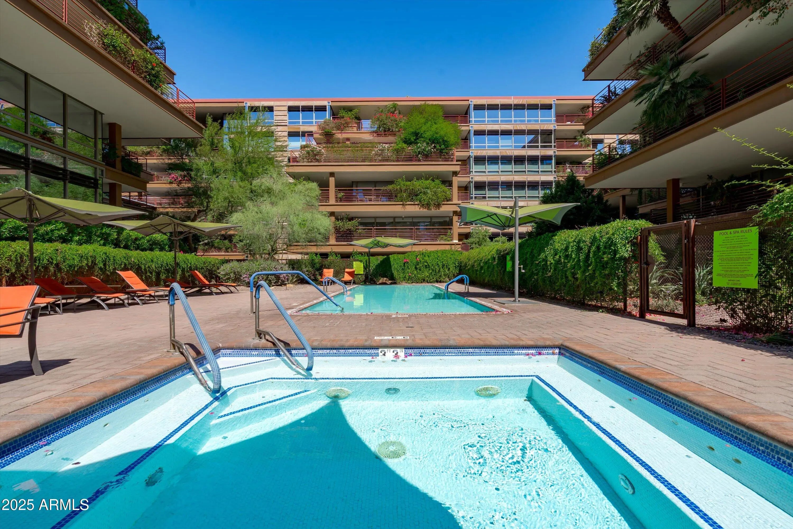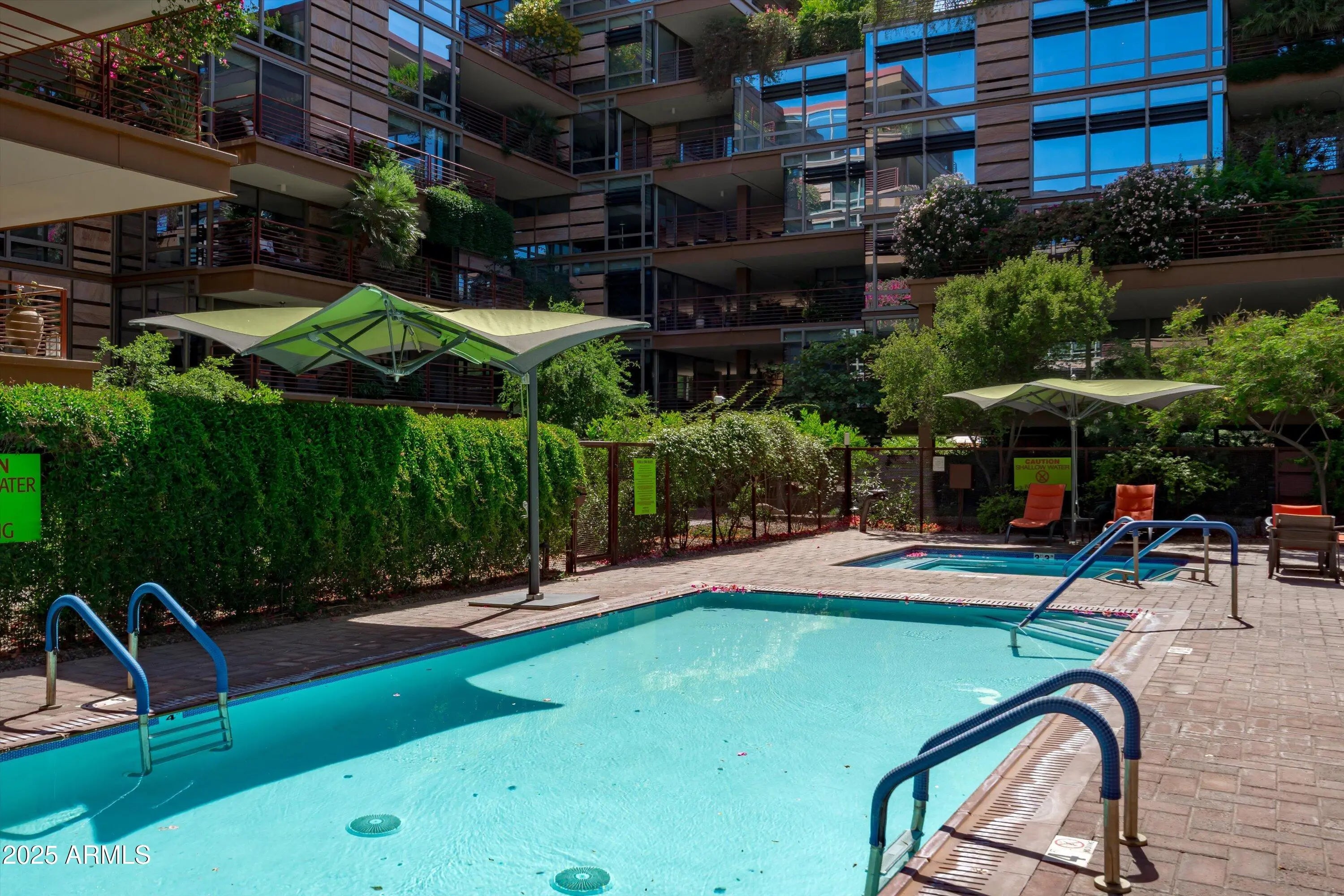 Ground-Level Corner Unit with Private Yard - A Rare Gem at Optima Camelview! Step into one of Optima Camelview's most desirable residences—an upscale ground-level corner unit featuring a spacious, private yard that's perfect for seamless indoor-outdoor living. Whether you're enjoying quiet mornings on the patio or hosting under the stars, this outdoor space sets the home apart from anything else in the community. Thoughtfully remodeled with premium designer finishes, this one-bedroom layout also includes a rare guest powder room, adding convenience and flexibility for everyday living and entertaining. The chef's kitchen features leather-finished granite countertops, upgraded cabinetry, a Viking 5-burner cooktop, French door refrigerator, and elegant glass tile backsplash. Inside, the open living area is enhanced by a floor-to-ceiling stainless steel fireplace, offering modern warmth and a stunning design focal point. Natural light fills the space, and the private patio doors extend your living experience into the serene outdoor garden. Located just steps from Scottsdale Fashion Square, the Waterfront, and the best of Old Town's dining, shopping, and cultural destinations, you'll enjoy a truly walkable lifestyle in one of the city's most iconic locations. Residents of Optima Camelview benefit from resort-style amenities including multiple indoor and outdoor pools, a top-tier fitness center, putting green, concierge services, indoor basketball and racquetball courts, and a lush, award-winning landscape design that creates a tranquil urban oasis. This home offers the perfect blend of comfort, elegance, and location an exceptional opportunity in the heart of Scottsdale.